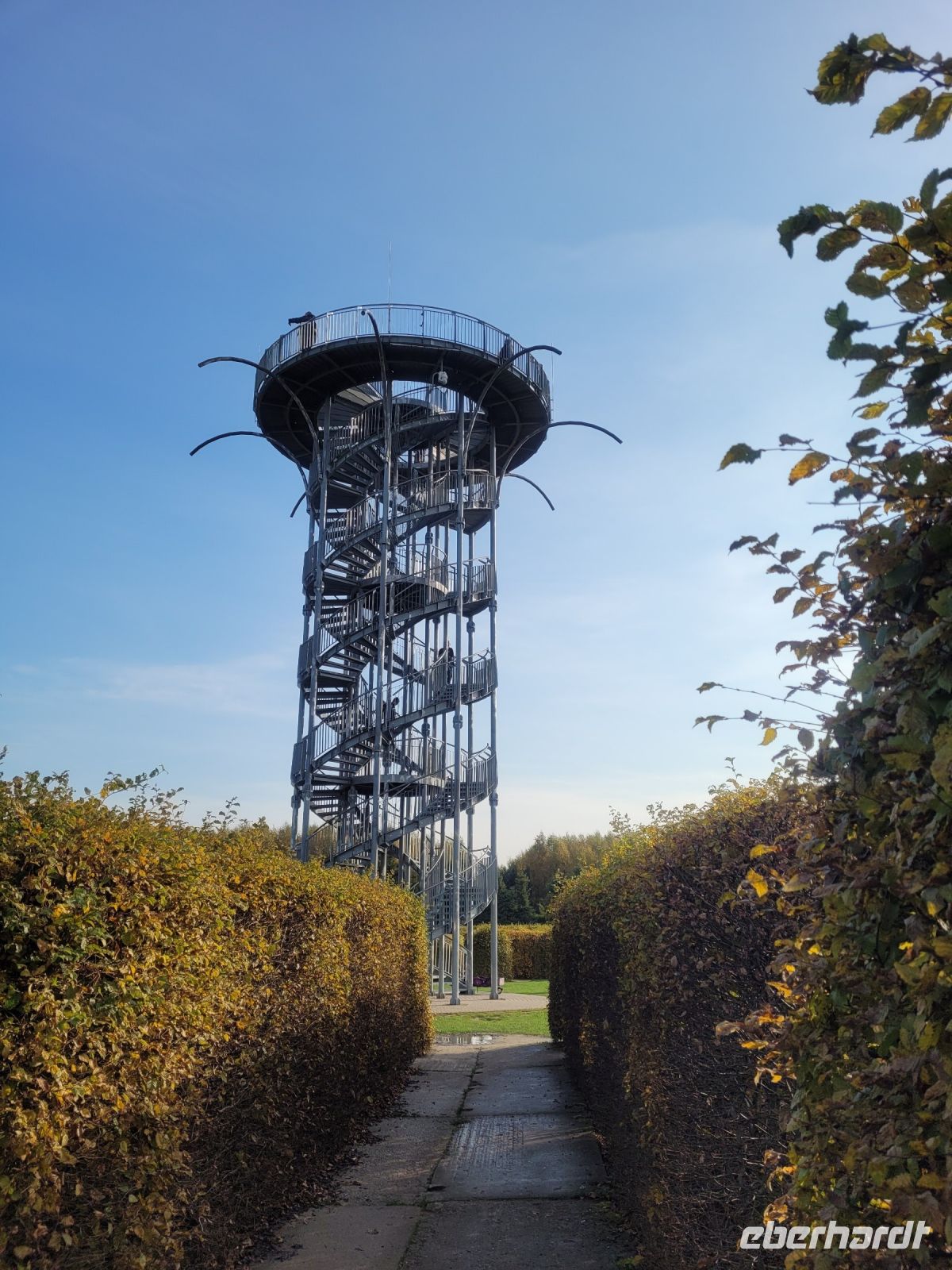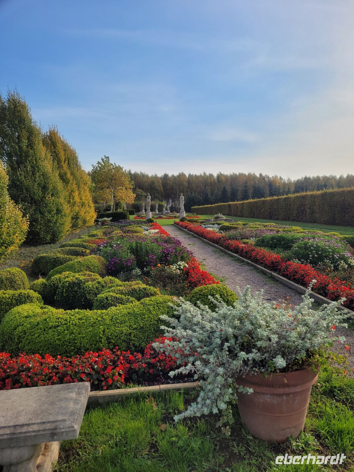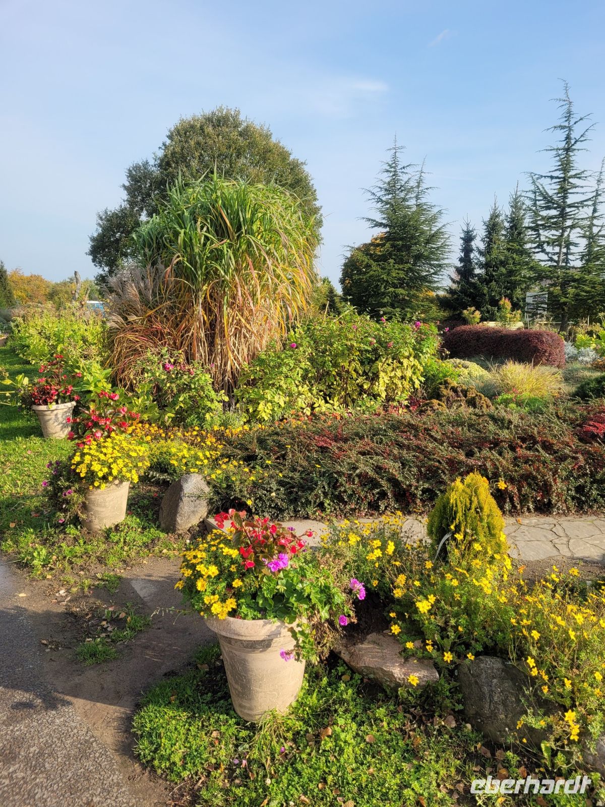 zu den Hortulusgärten. Er erklärte, dass es zwei Gartenkomplexe gibt. Wir besuchten den Garten Hortulus Spectabilis, weil der andere Bereich mit den Themengärten für Rollis nicht begehbar war. Wir spazierten im Sonnenschein durch die herbstlich blühenden Anlagen, besichtigten u.a. den Garten der vier Jahreszeiten, den Keltischen Garten und einige Gäste stiegen die 114 Stufen auf den Aussichtsturm. Im Windesbrausen sah man auch den Irrgarten, gepflanzt aus 18000 Hainbuchen. An einer kleinen Bar konnte ein Imbiss eingenommen werden. Hendrik schlug eine Rundfahrt vor. Wir waren sogleich einverstanden. Der Bus rollte nach Ustronie Morskie (Henkenhagen), streifte Koszalin (Köslin) und umrundete abschließend den J.Jamno (Jamunder See). Um 15:00 Uhr waren wir wieder im Hotel. Es blieb Zeit für einen Bummel zum Strand , für Einkäufe und zum Ausruhen.