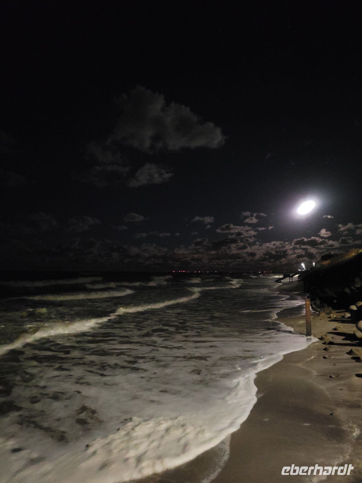 Abends wütete der Sturm weiter. Welle auf Welle brandete gegen das Ufer, der Wind ließ den Sand aufwirbeln. Neptun schwang sein Zepter. Dennoch konnte man auf der Promenade, gegen das Unwetter kämpfend, liebliche Meerjungfrauen entdecken.