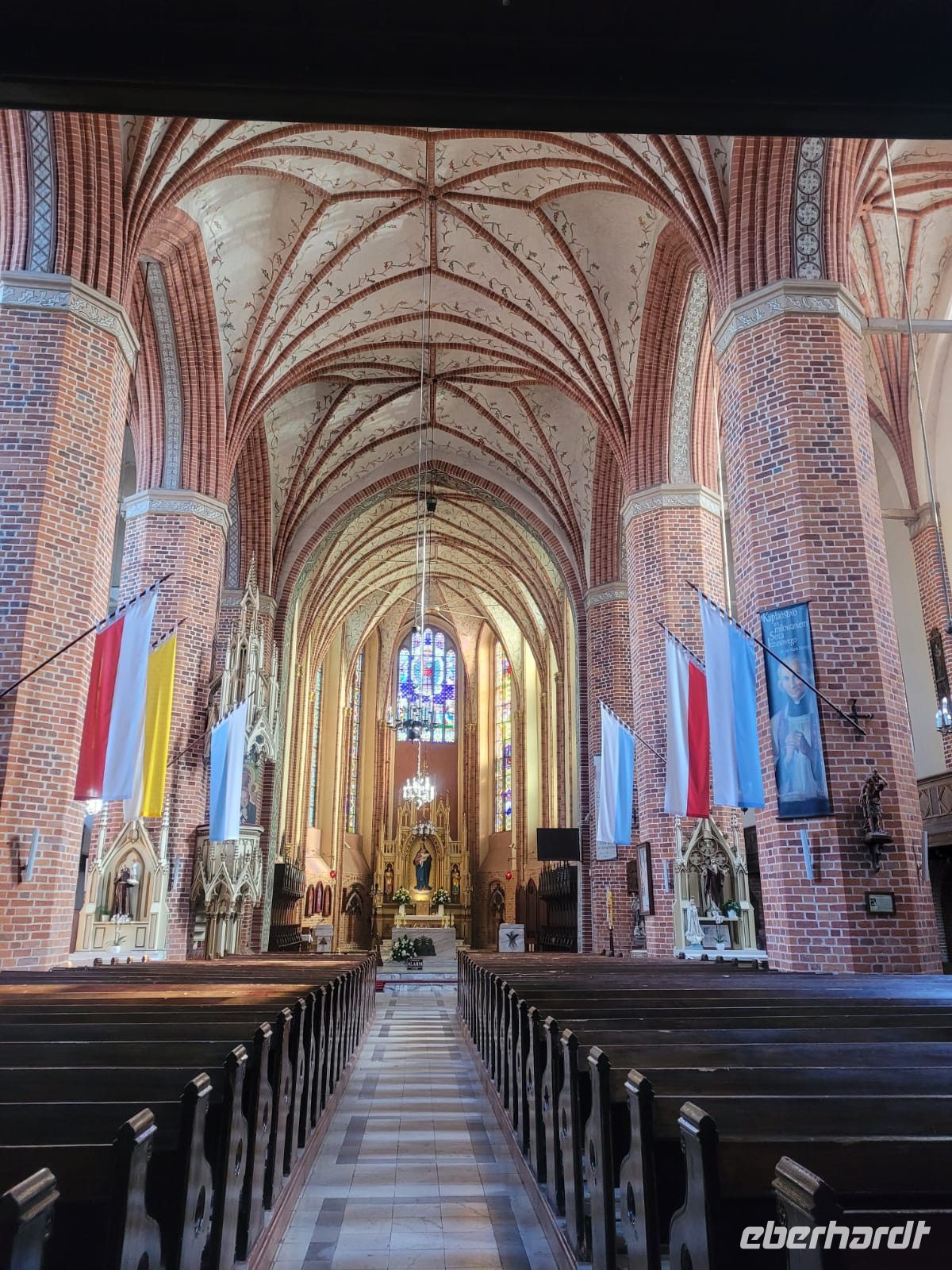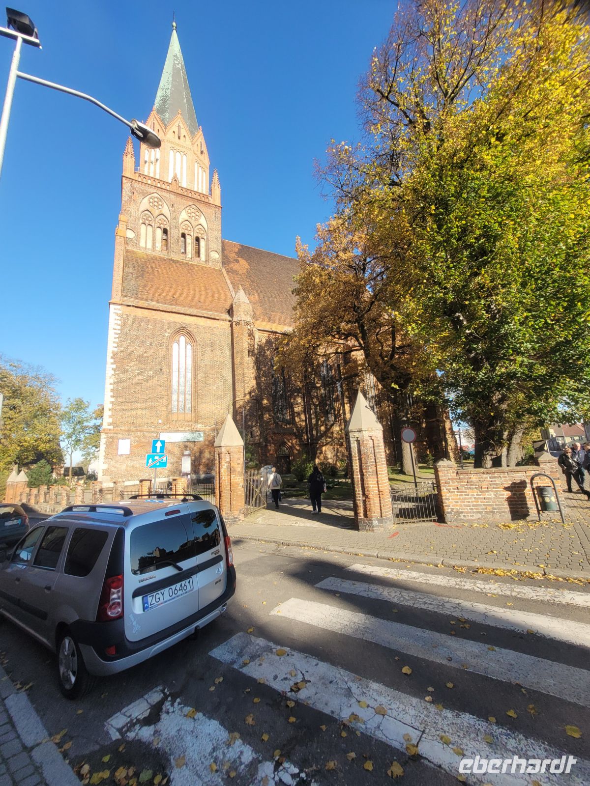 Nun ging es weiter nach Kamien Pomorski (Cammin). Im Ort wurde die Straße gebaut und und so rumpelten wir mehr schlecht als recht zum Cafe` am Markt. Oh Schreck: war unseren Augen zu trauen? Zwei steile Stufen führten hoch ins Lokal. Die Stimmung sank auf den Tiefpunkt. Einige Gäste wollten umkehren. Doch was wäre aus unserem Ausflug geworden? Nein, wir mussten es schaffen. Jan fand eine alte Palette, welche wir anlegten. Mit vereinten Kräften, viel Mühe und etwas Risiko waren dann alle im Cafe.` Nein, nicht alle. Unser Fahrer trank seinen Kaffee im Freien und passte auf die Rollstühle auf. Etwas in Eile verzehrten wir den leckeren Kuchen, tranken Kaffee und verließen alsbald das Lokal. Auf besseren Wegen fuhren wir zur Kathedrale. Ein extra für uns organisiertes Orgelkonzert mit sehr schönen Stücken erfreute. Von der Empore sang eine Sopranistin das Halleluja. Es war ein versöhnlicher Abschluss. Zurück ging die Fahrt durch den Abendsonnenschein, durch die herbstliche Laubfärbung und 18.15 Uhr war Ankunft im Hotel. (Ein etwas längerer Halbtagesausflug)