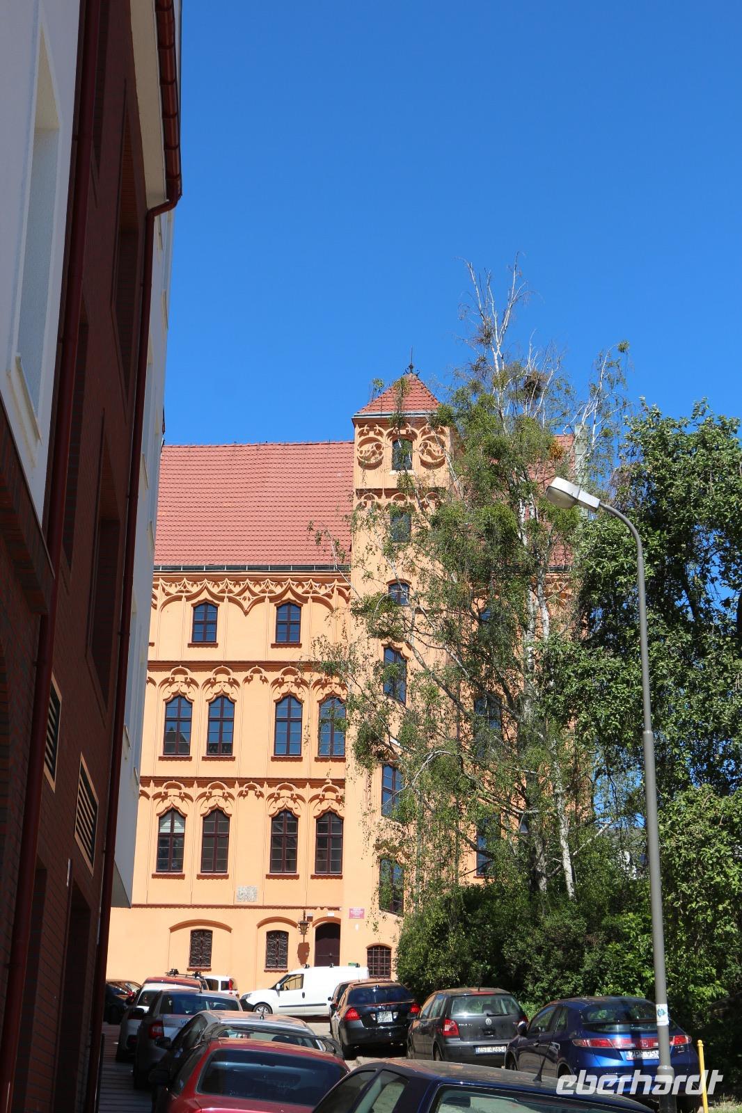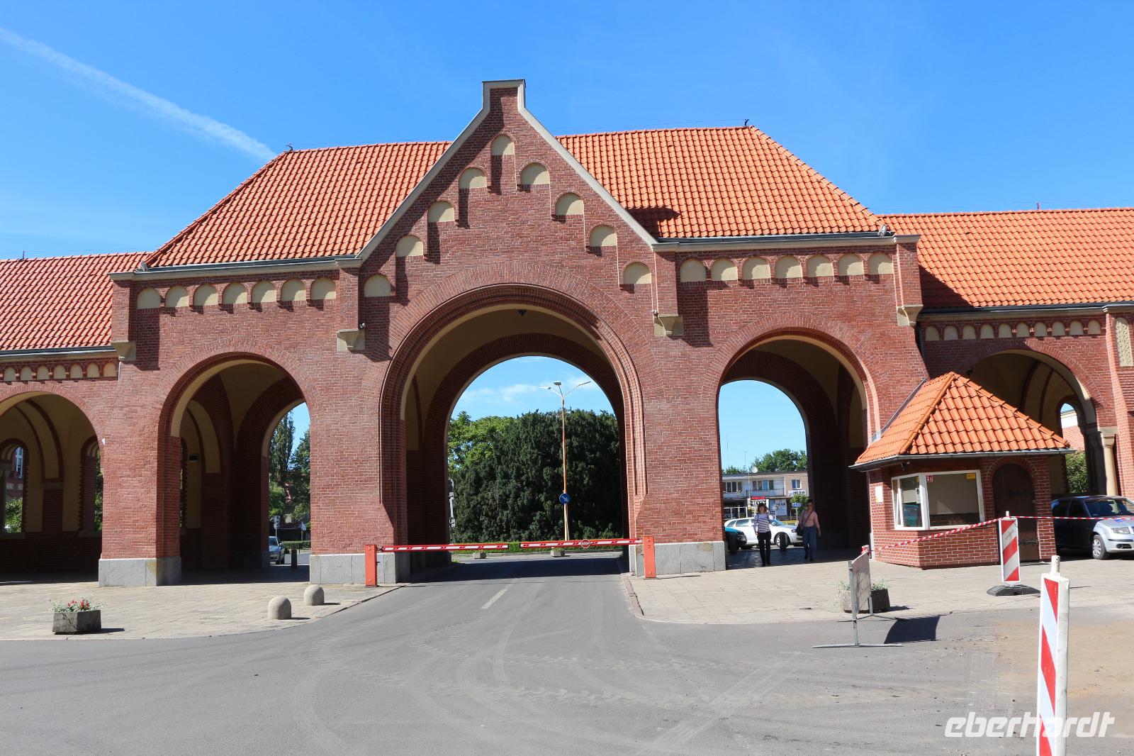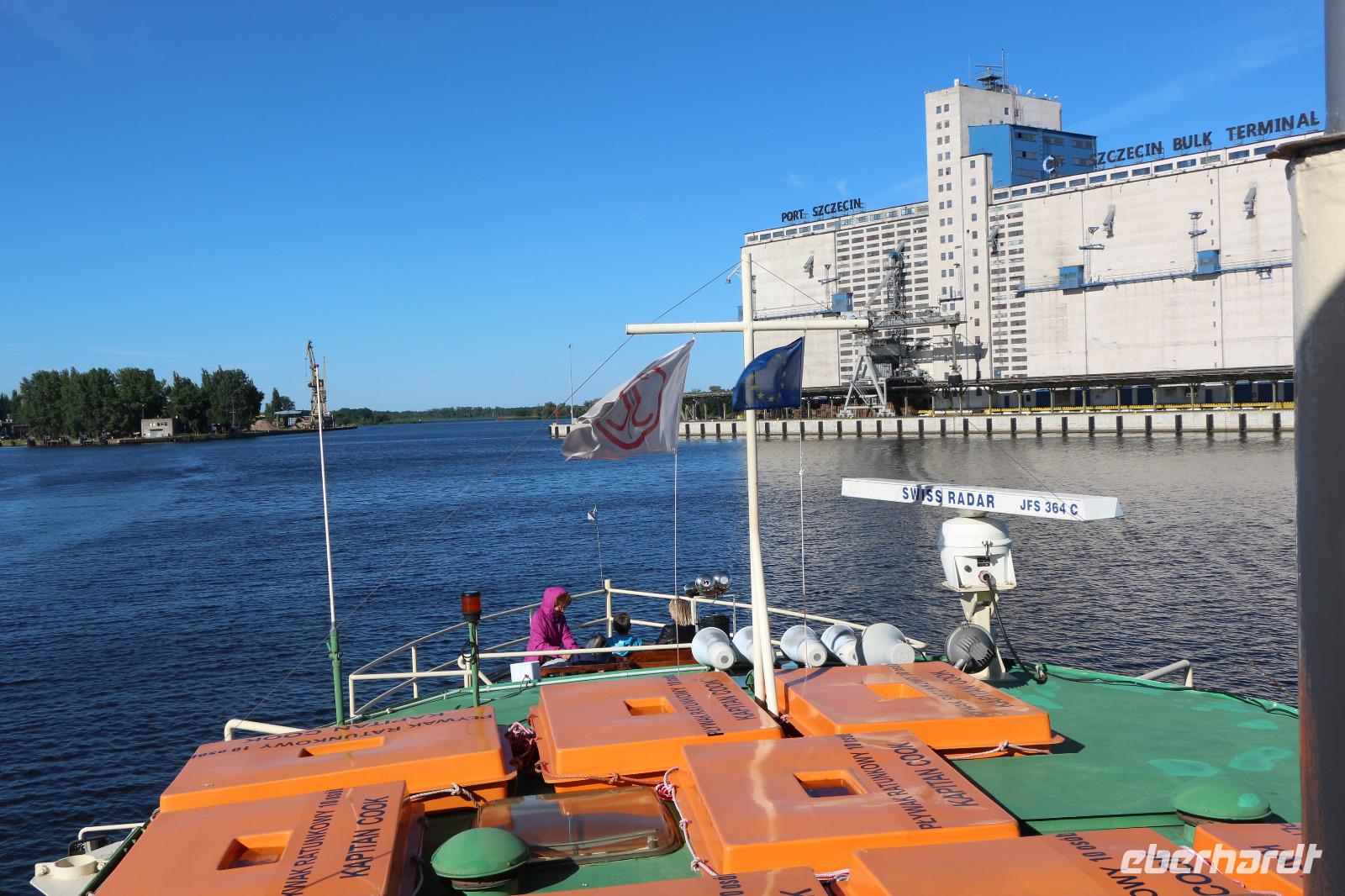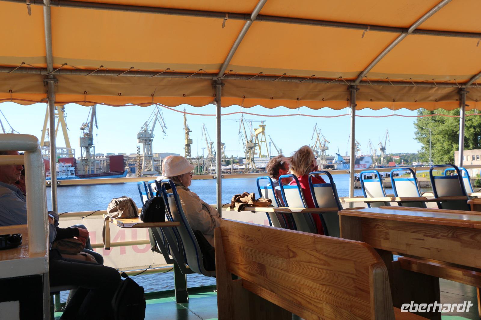 Mit unserem komfortablen 5-Sterne-Reisebus reisten wir mit Bus-Chauffeur Dirk und Reisebegleiterin Kristin von Chemnitz, Dresden oder Berlin in den Norden Polens, nach Westpommern. Dabei durchquerten wir das Zweistromland zwischen Elbe und Oder mit seinen eiszeitlich geprägten Landschaften vom Baruther Urstromtal über die Oder-Havel-Region bis in die Uckermark. Am Nachmittag erreichten wir Stettin, welches nur 20 Kilometer von der Deutsch-Polnischen Grenze entfernt liegt. An einem Rasthof an der Grenze gab es gleich die Möglichkeit, ein wenig Geld zu tauschen. Vorbei am Universitätsviertel und am Friedhof von Stettin fuhren wir in die Altstadt. Hier unternahmen wir mit Kristin einen kleinen Spaziergang an der Hakenterrasse, dem bekanntesten Bauensemble der Stadt und einem Wahrzeichen Stettins. Bei herrlichem Sonnenschein genossen wir den Ausblick von der Hakenterasse auf die Oder und den Hafen. Wir flanierten entlang der Marine-Akademie, dem Nationalmuseum und dem hübschen Amtsgebäude der Woiwodschaft Westpommern zu einem der beiden Biergärten, die sich links und rechts der Hakenterrasse befinden. Bei einem Kaffee, Bier oder Eis ließen wir das fast maritime Flair der Stadt auf uns wirken.