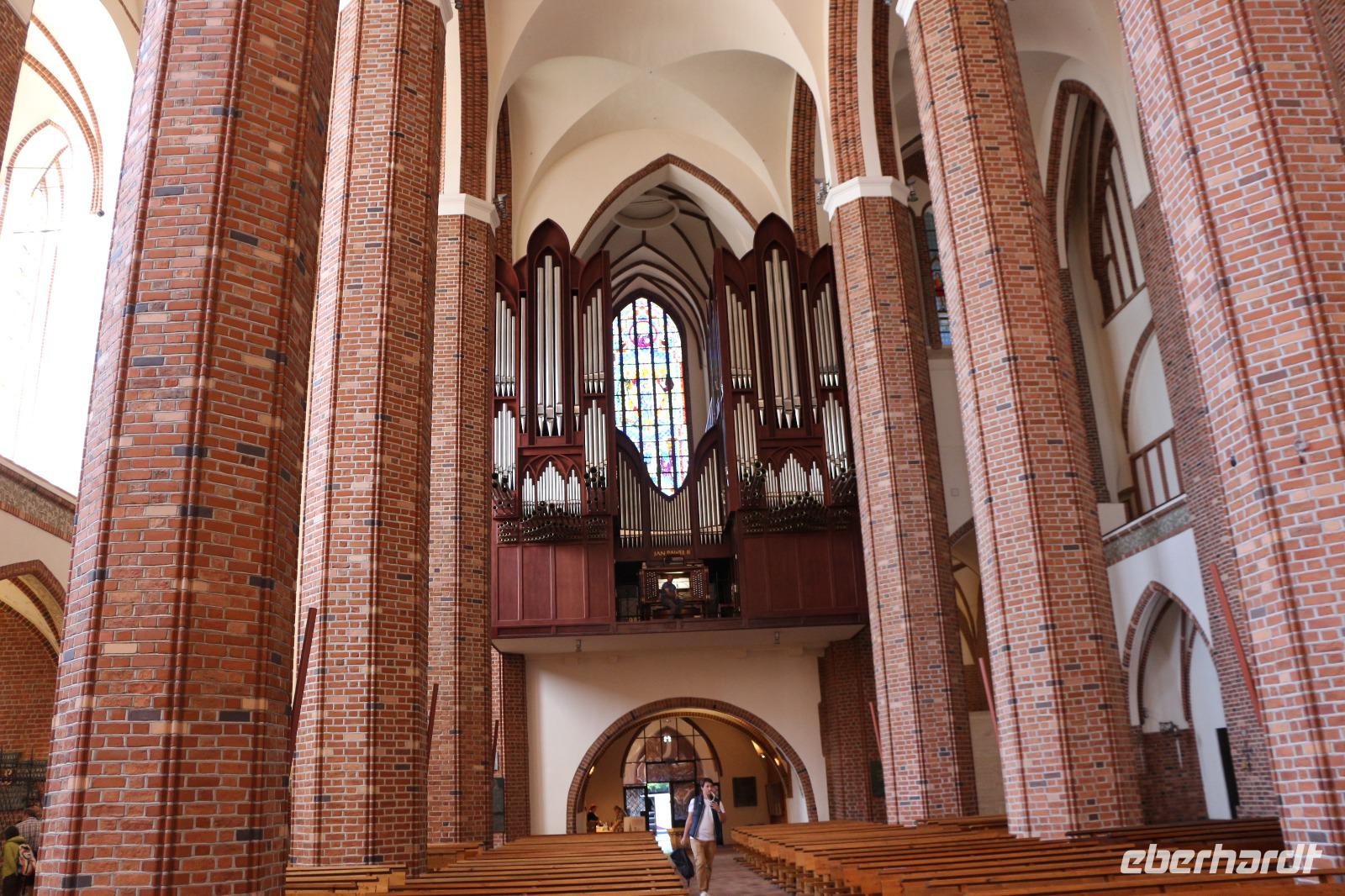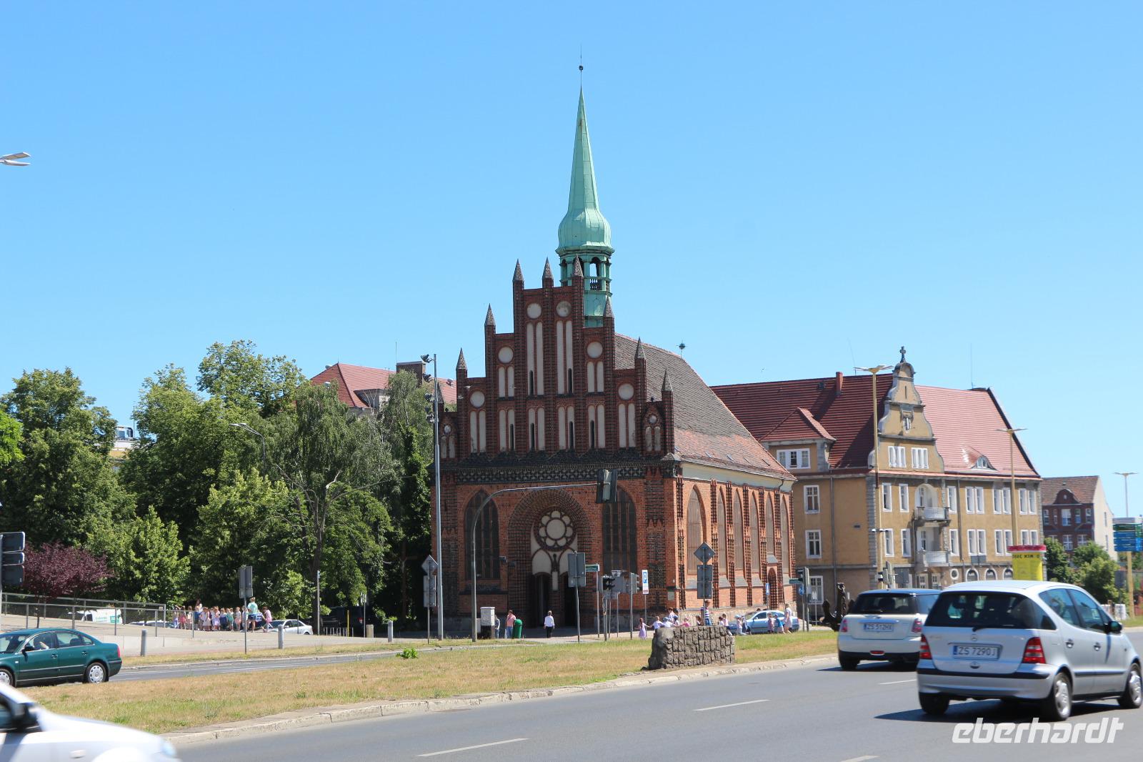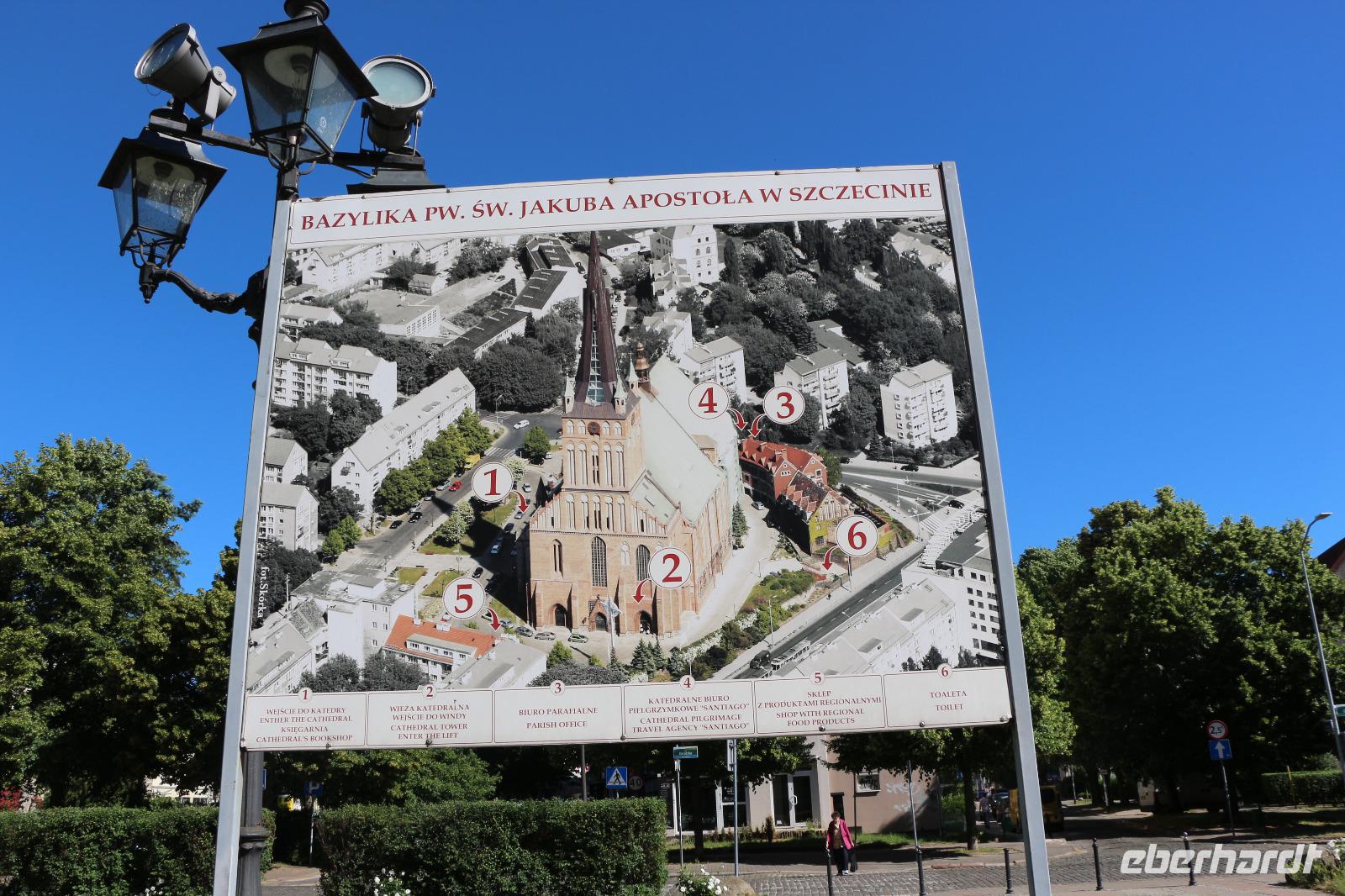 Am zweiten Tag unserer Singlereise erwartete uns Stettin zu einer ausführlichen Stadtbesichtigung per Bus, zu Fuß und per Boot. Nach dem gemütlichen Frühstück im Hotel fuhren wir bei schönstem Wetter in die Innensadt von Stettin. Am modernen Pazim-Hochhaus, dem zweithöchsten Gebäude der Stadt, trafen wir unsere örtliche Reiseleiterin Anna, die uns am heutigen Tag die Stadt zeigte. Das Besichtigungsprogramm begann mit dem Besuch der katholischen Jakobskathedrale in Stettin, eine der größten Kirchen Pommerns und dem höchsten Gebäude der Stadt. Anna zeigte uns die Besonderheiten der Architektur und Geschichte dieser mächtigen Backstein-Kathedrale und wir lauschten bei einem etwa dreißigminütigem Konzert den Klängen der beeindruckenden Orgel.