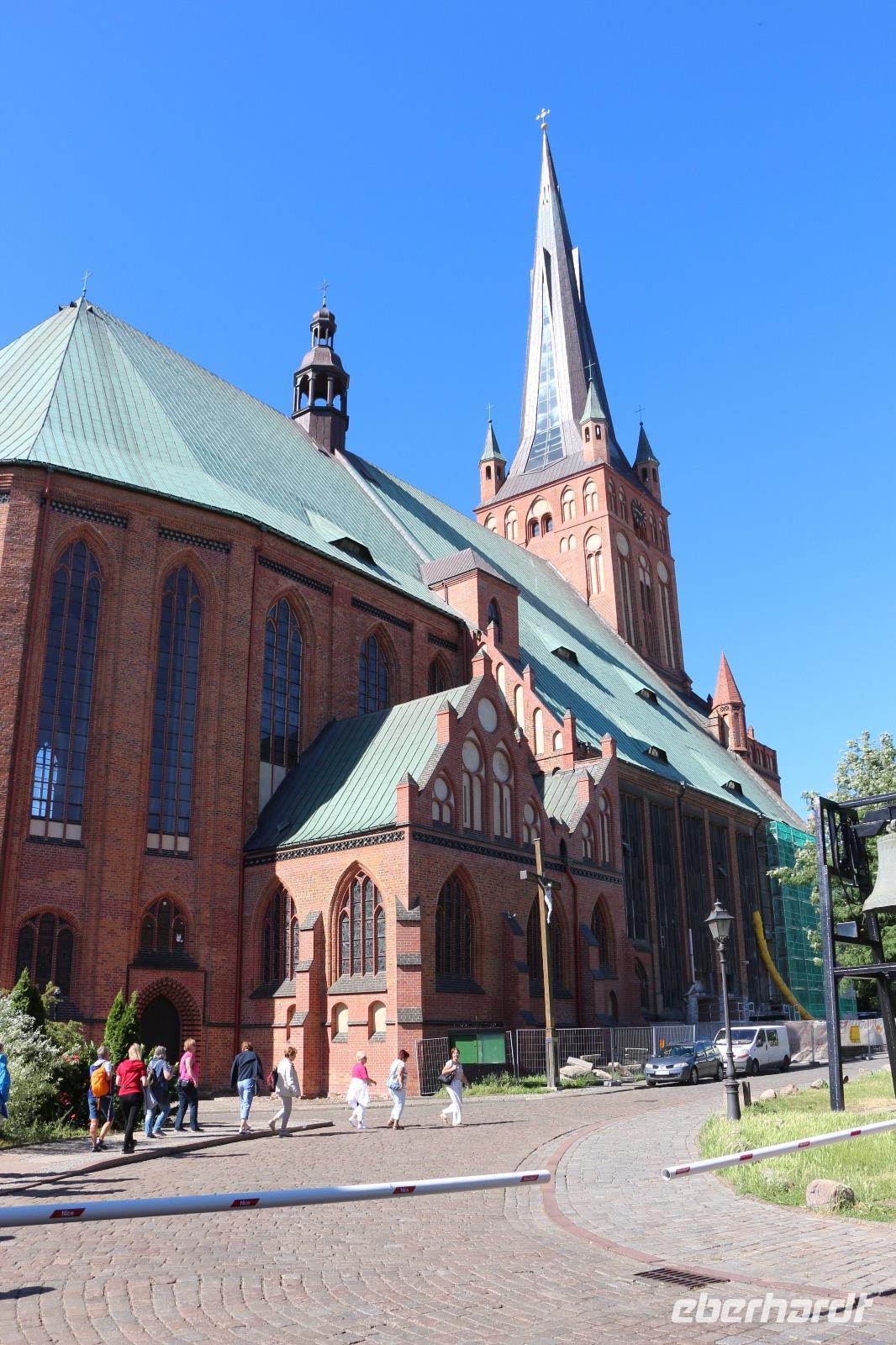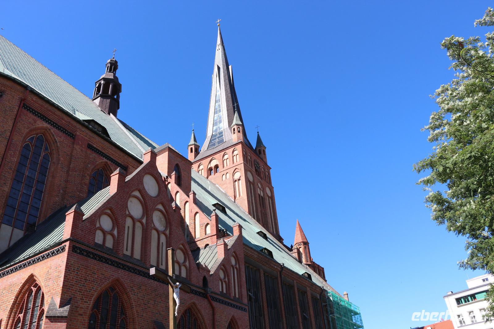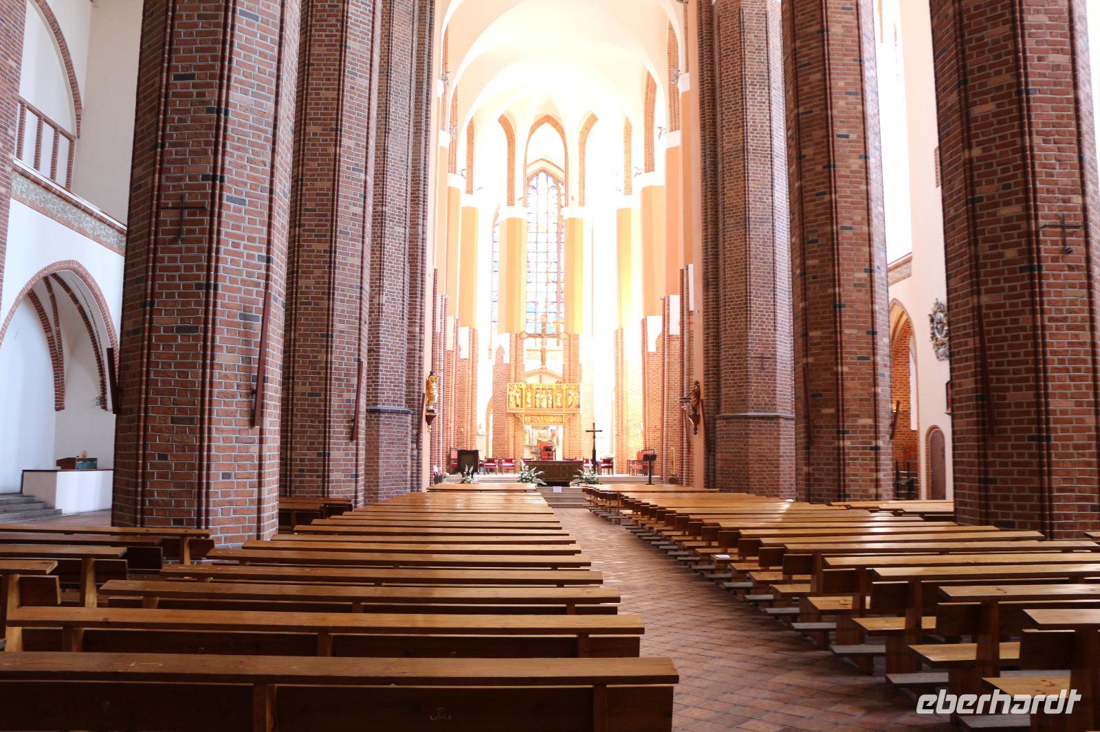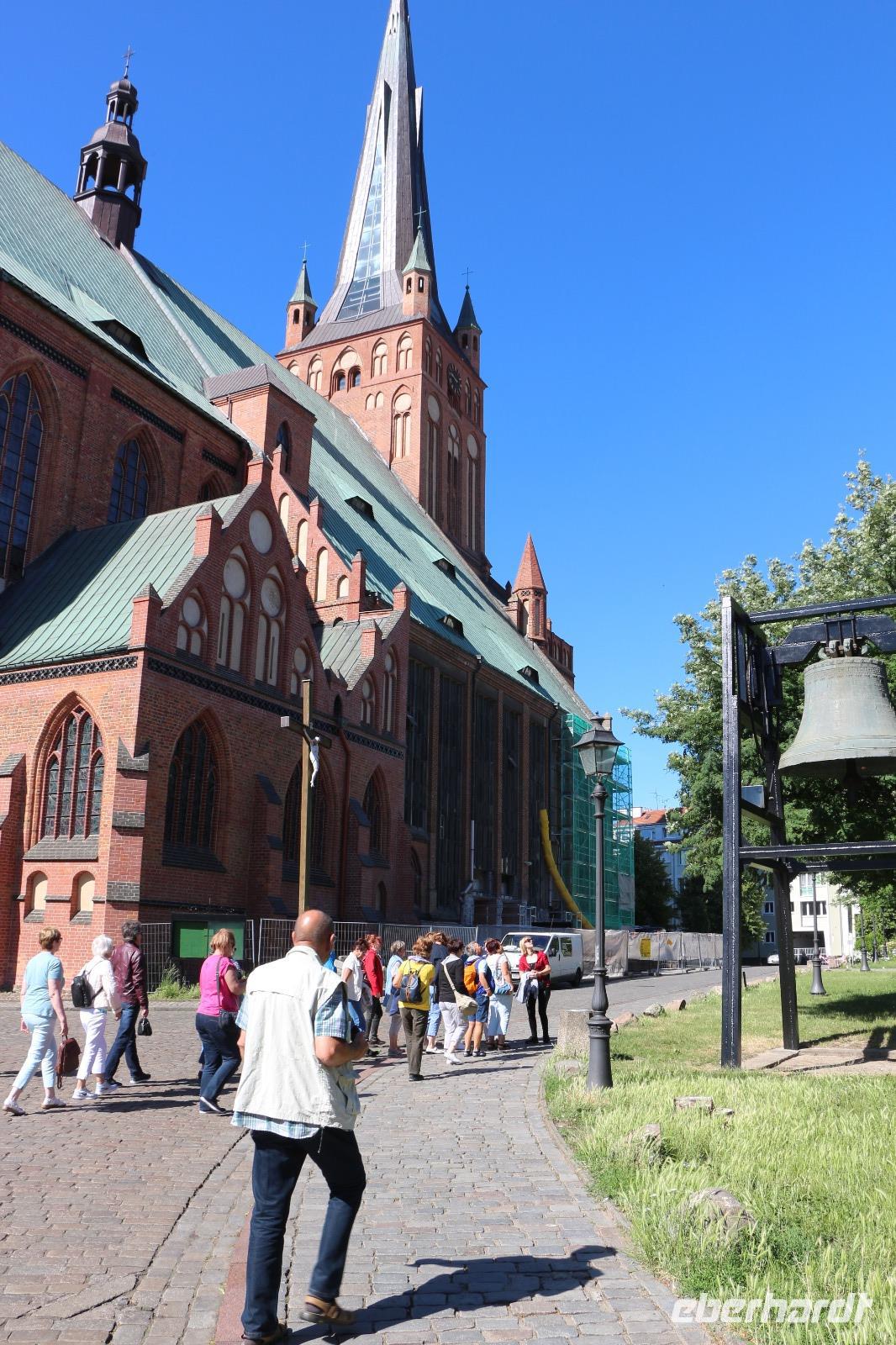 Am zweiten Tag unserer Singlereise erwartete uns Stettin zu einer ausführlichen Stadtbesichtigung per Bus, zu Fuß und per Boot. Nach dem gemütlichen Frühstück im Hotel fuhren wir bei schönstem Wetter in die Innensadt von Stettin. Am modernen Pazim-Hochhaus, dem zweithöchsten Gebäude der Stadt, trafen wir unsere örtliche Reiseleiterin Anna, die uns am heutigen Tag die Stadt zeigte. Das Besichtigungsprogramm begann mit dem Besuch der katholischen Jakobskathedrale in Stettin, eine der größten Kirchen Pommerns und dem höchsten Gebäude der Stadt. Anna zeigte uns die Besonderheiten der Architektur und Geschichte dieser mächtigen Backstein-Kathedrale und wir lauschten bei einem etwa dreißigminütigem Konzert den Klängen der beeindruckenden Orgel.