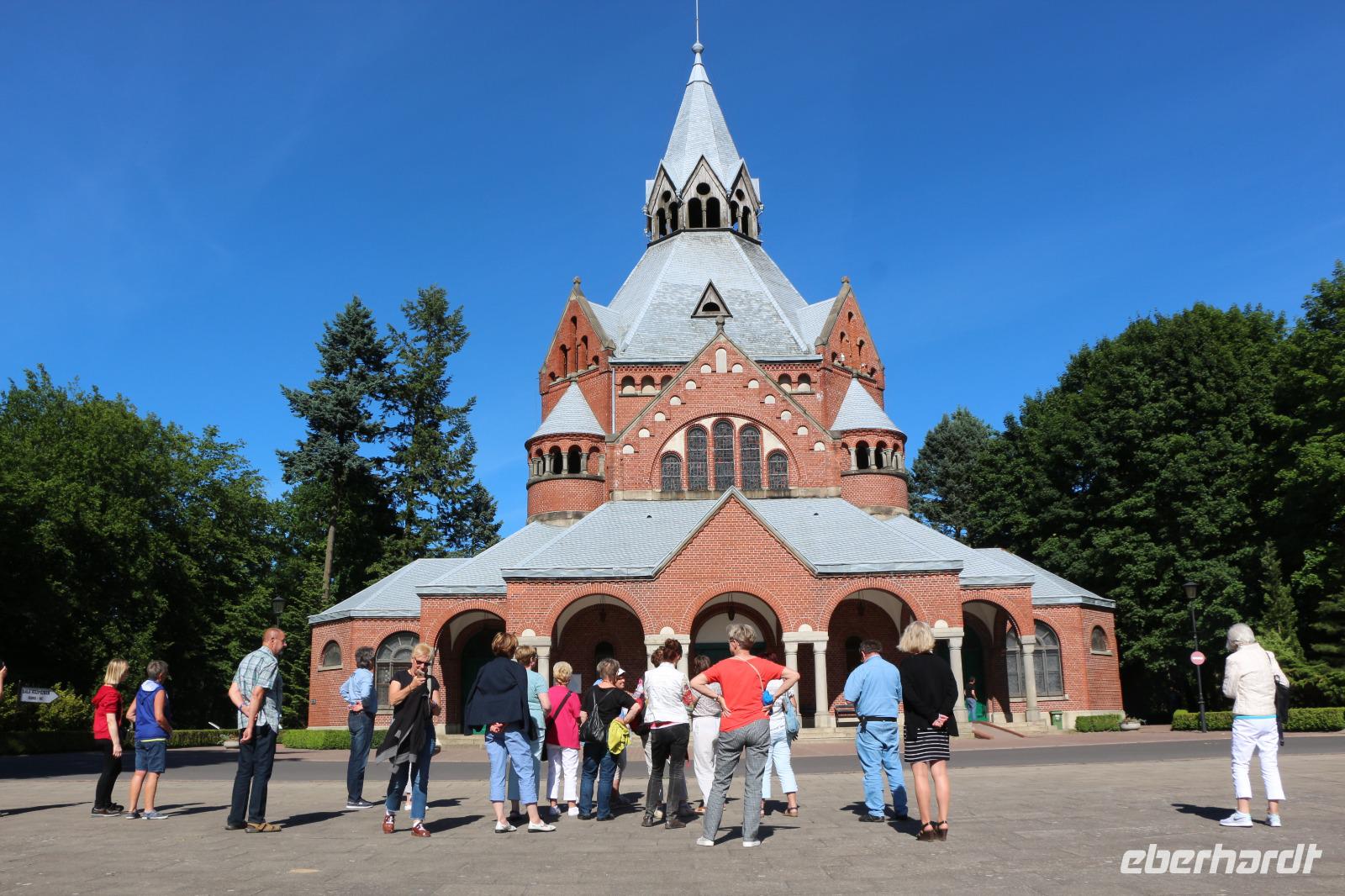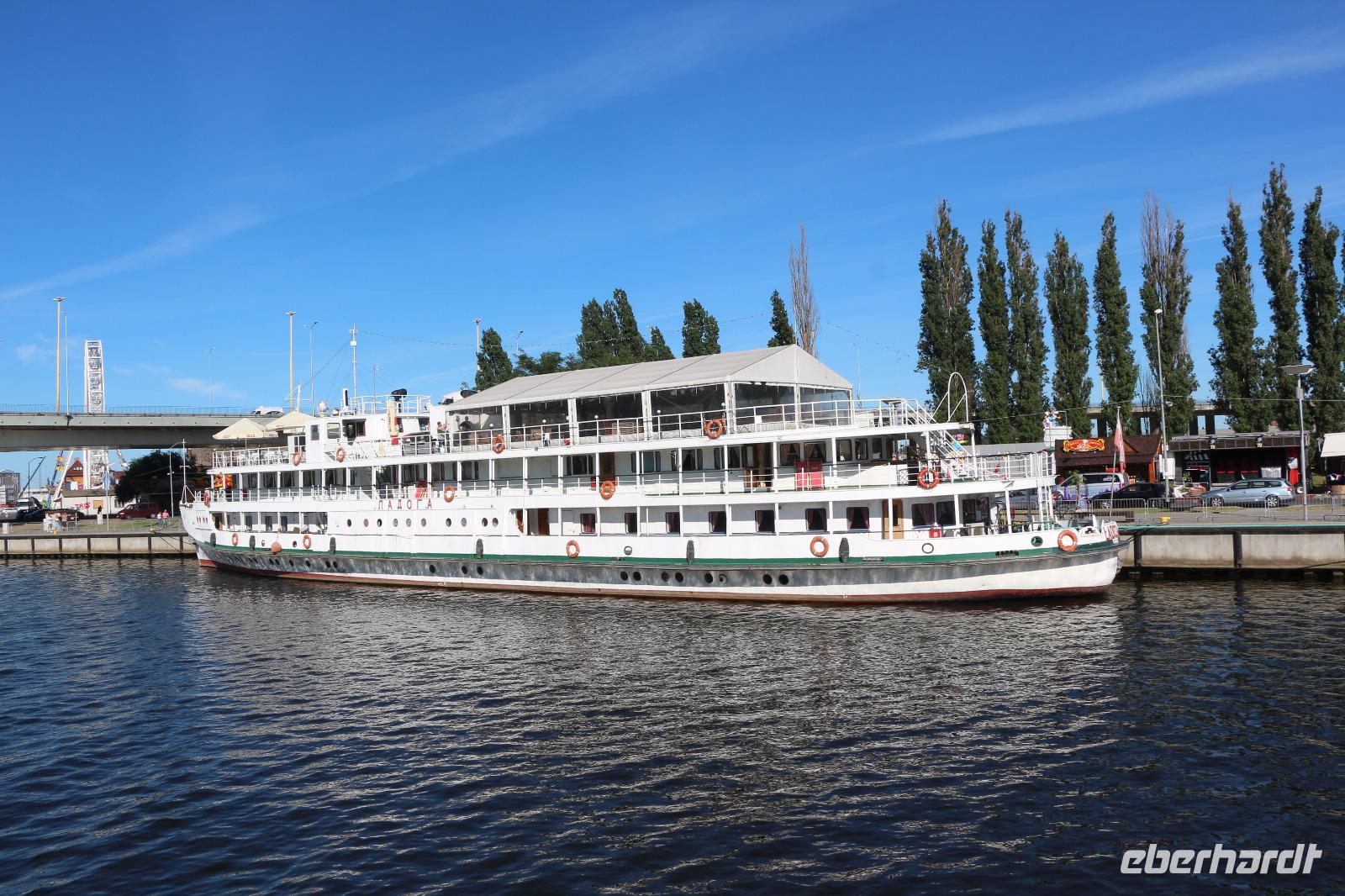 Nach der Erholungspause führte uns Anna als kleinen zusätzlichen Programmpunkt noch zum Zentralfriedhof von Stettin. Der drittgrößte Friedhof Europas beherbergt 60.000 Gräber und ist wie ein großzügiger Landschaftspark angelegt mit Springbrunnen, alten Bäumen, Backstein-Kapellen und Denkmälern. Unter Botanikern gilt er fast als botanischer Garten. Nach diesem Abstecher in die Ruhe und Beschaulichkeit fuhren wir schließlich zur Schiffsanlegestelle unterhalb der Hakenterrasse, wo unser Ausflugsschiff für eine gesellige Schiffspartie wartete. Mit dem Ausflugsschiff "Kapitan Cook" starteten wir zu einer 2,5-stündigen Rundfahrt auf der Oder vorbei an der Hakenterrasse und den Hafenanlagen bis in die idyllische Wasserlandschaft des Dammschen Sees (Dabie). An Bord gab es ein Abendessen mit Grillfleisch und Salaten. Bei kühlen Getränken und Musik genossen wir anschließend die Seeluft an Bord und einige schwangen sogar das Tanzbein. Nach unserer geselligen Schiffspartie fuhren wir mit unserem Bus zum Hotel Panorama und ließen den Abend bei einem im Hotelrestaurant gemeinsam ausklingen.
