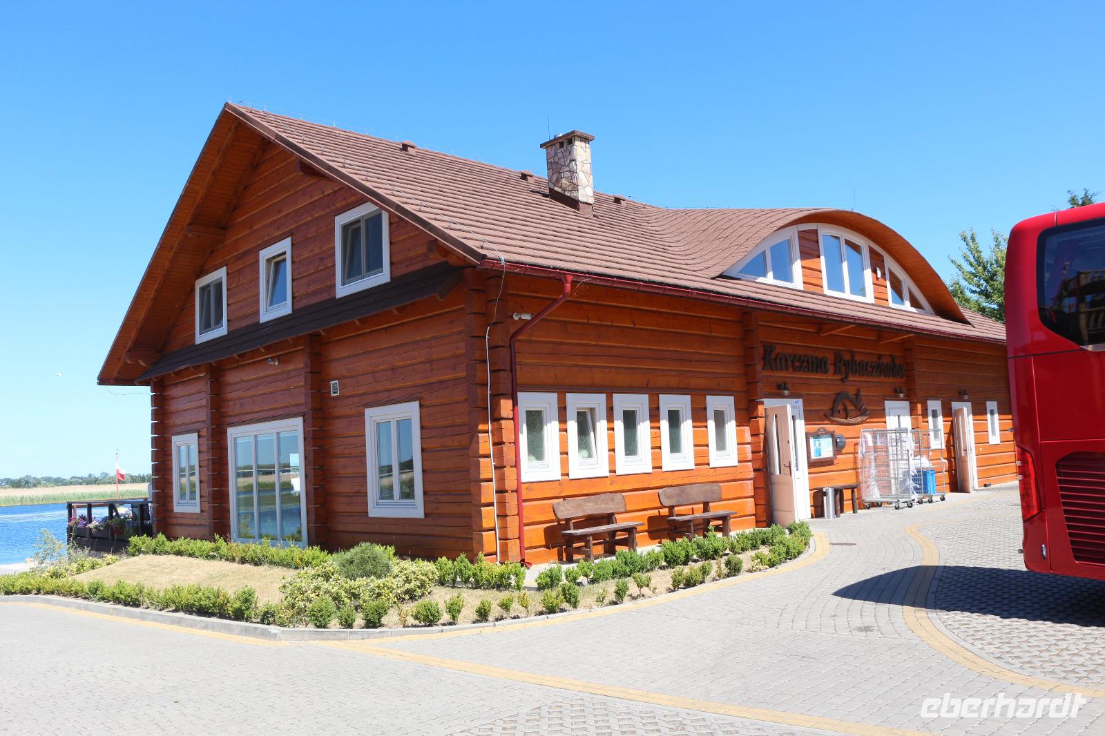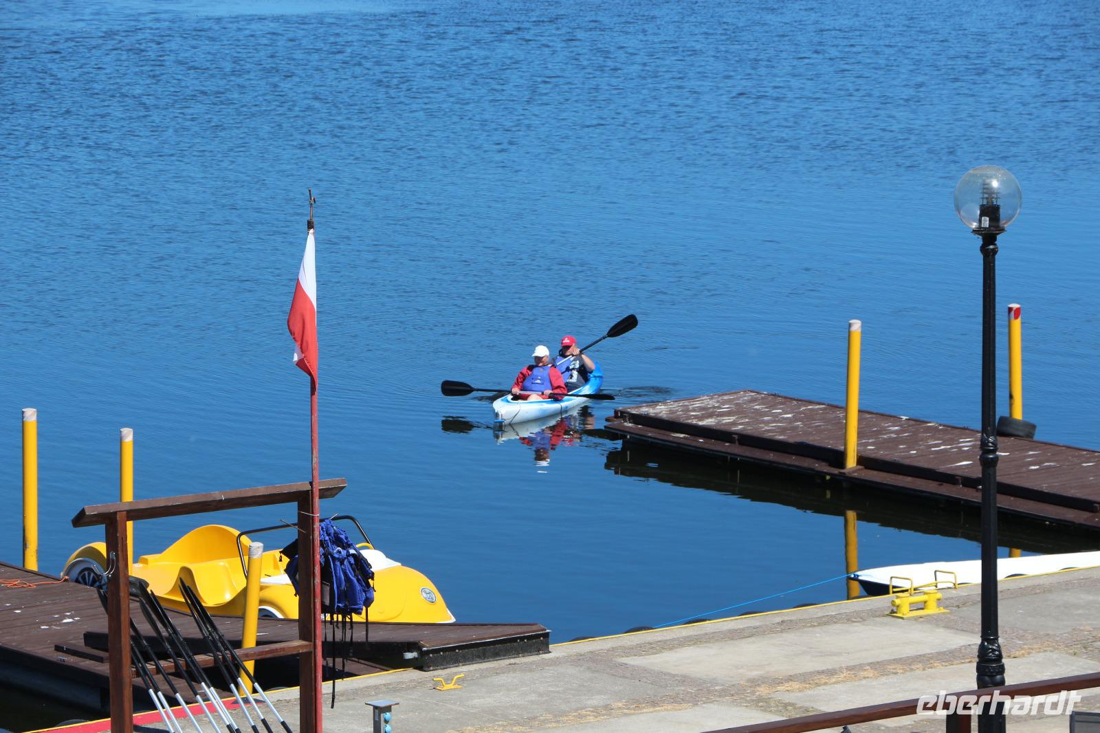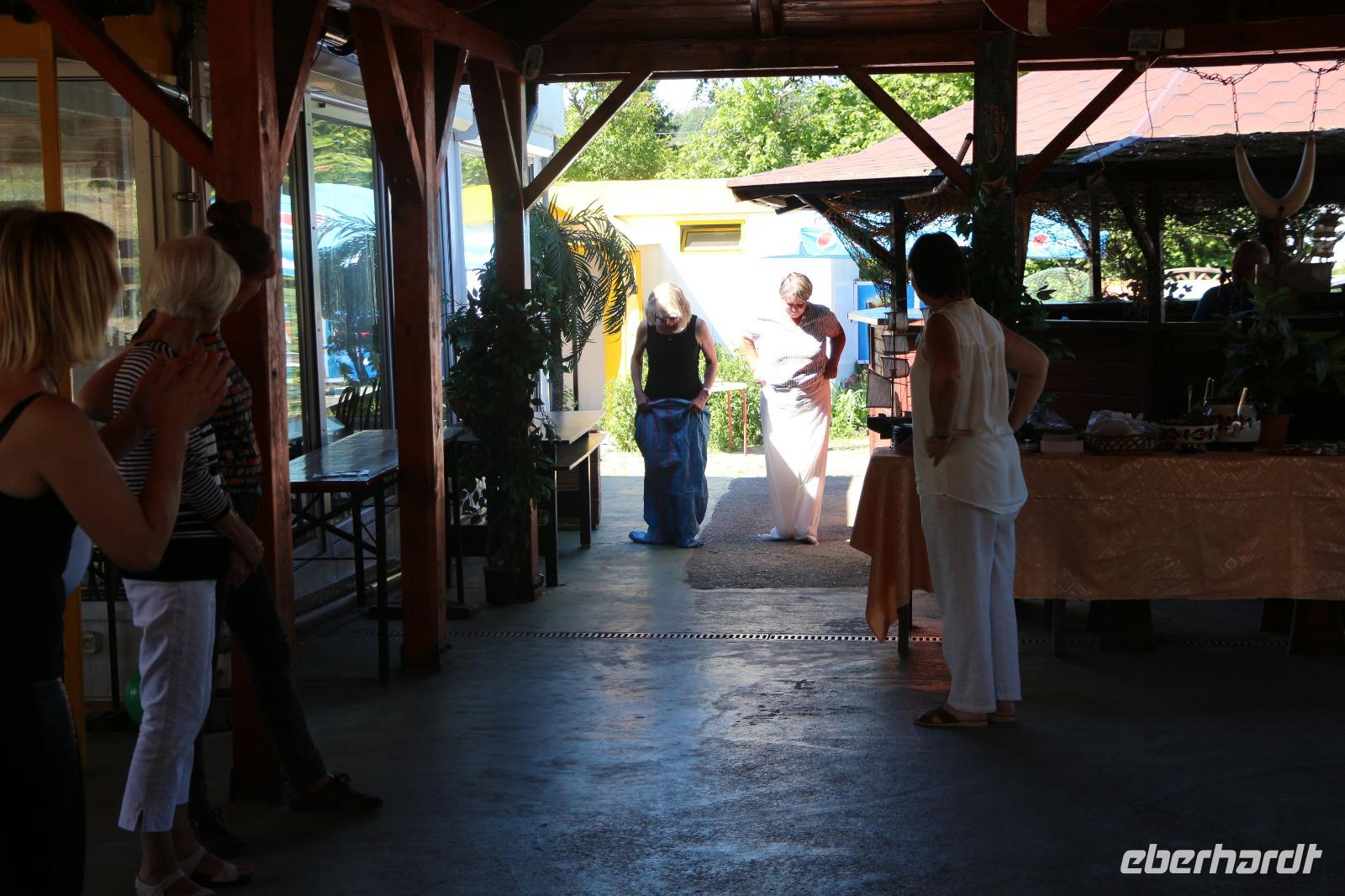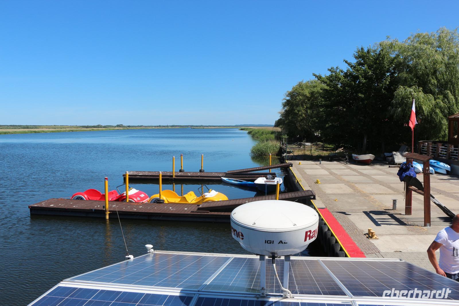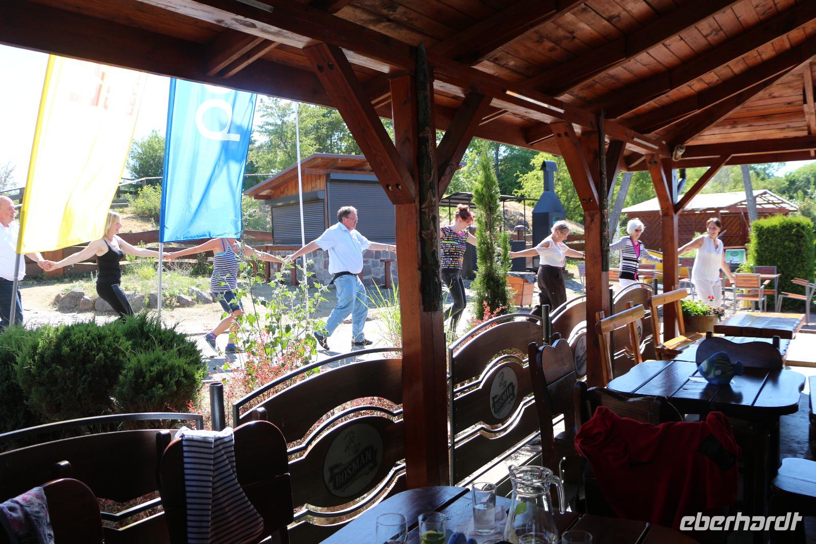 Wir fuhren mit dem Bus zurück auf die Insel Wolin, wo wir zu einem Country Picknick im Dorf Lubin verabredet waren. Im überdachten Biergarten des Landrestaurants waren wir zunächst zum Mittagessen eingeladen. Bei frischem Dorsch und polnischem Bier ließen wir die Seele baumeln. Dann hatte Reiseleiterin Anna einige Spiele und Tänze für uns vorbereitet und wir verbrachten den warmen und sonnigen Nachmittag hier am Ufer des Türkissees nördlich des Stettiner Haffs. Zum Abschluss gab es noch Grillwürstchen vom Lagerfeuer und leckere Salate.
