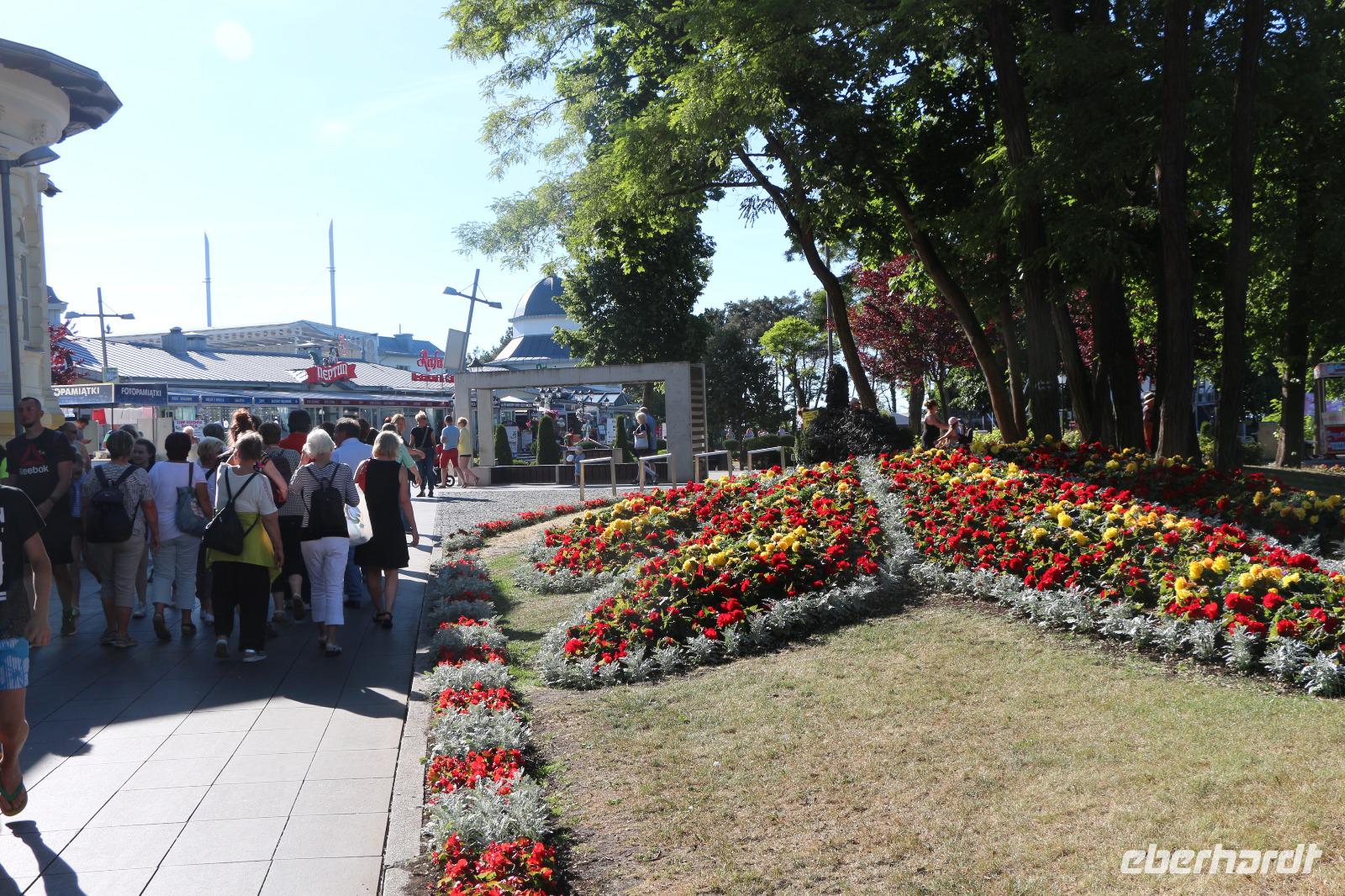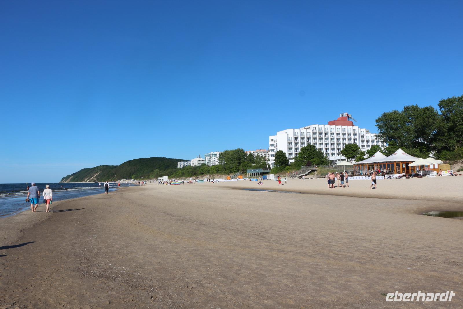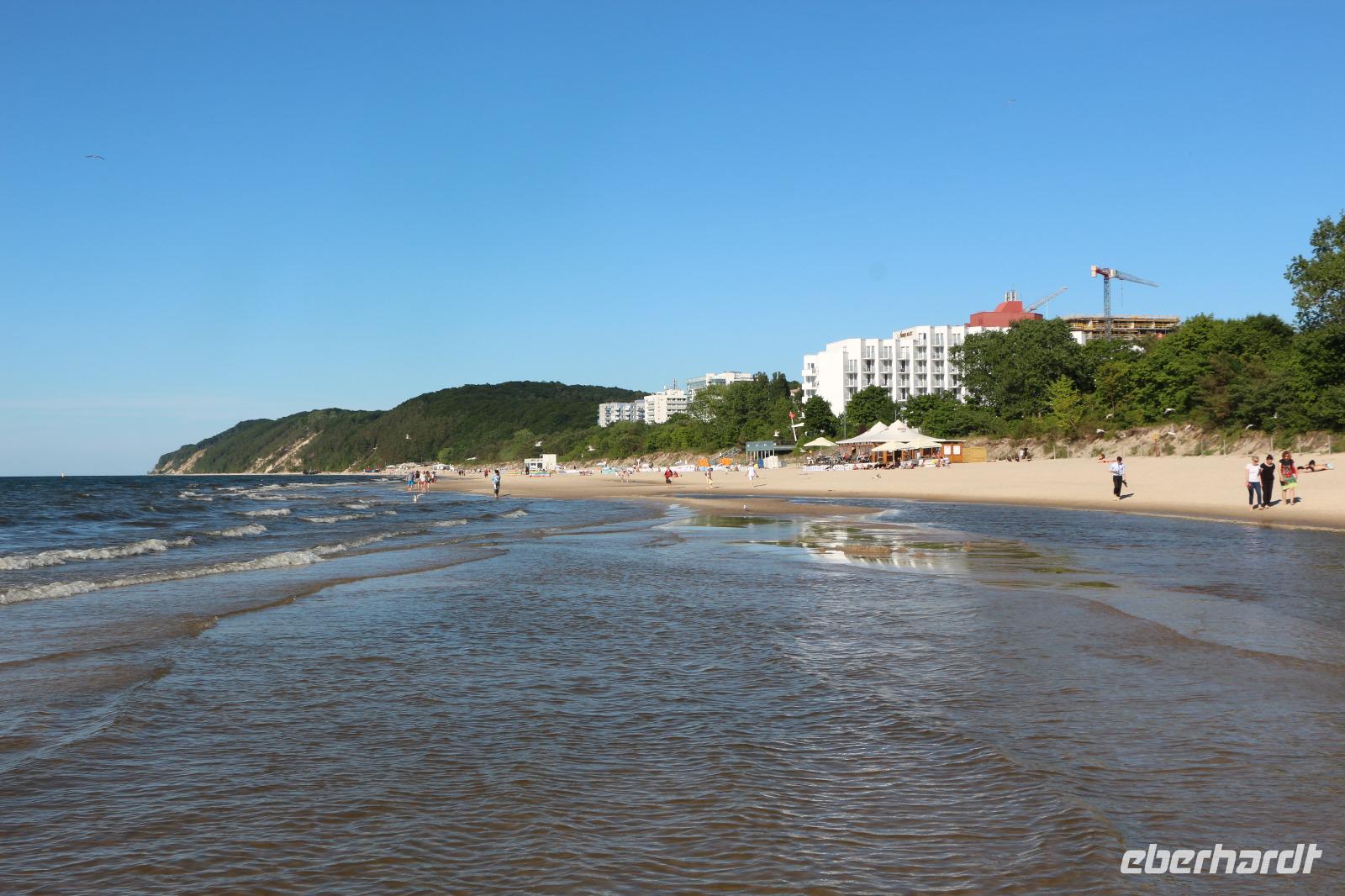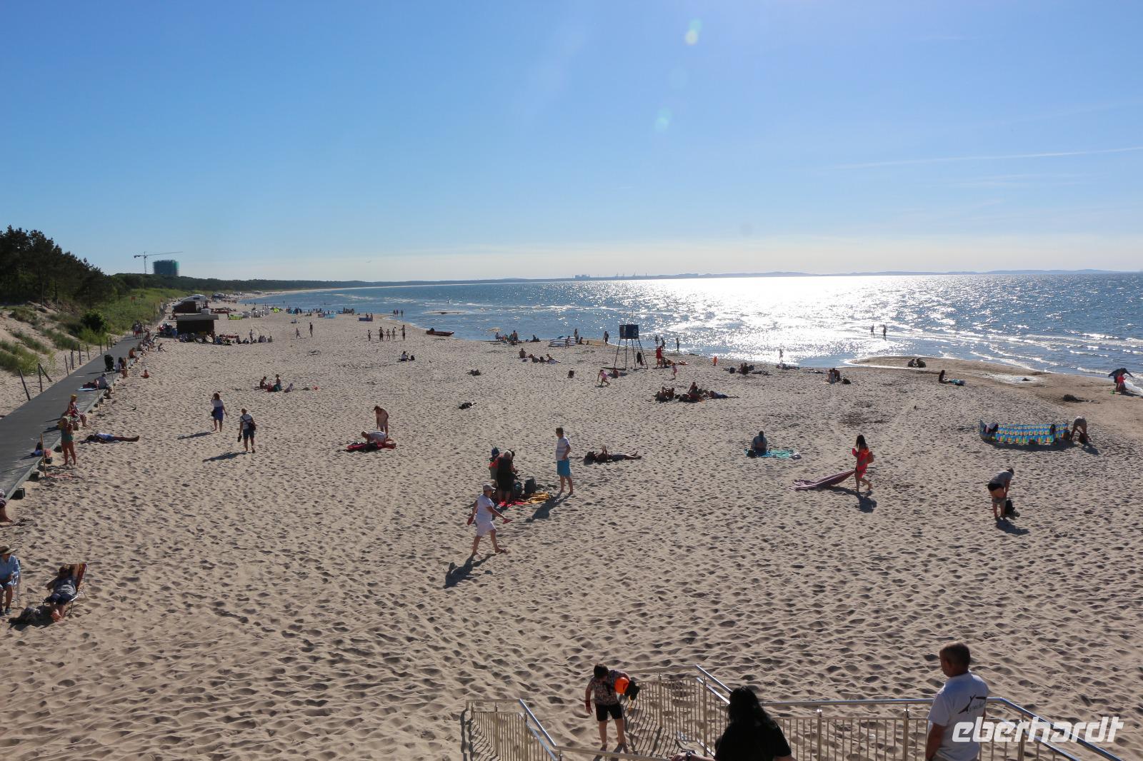 Auf Wunsch unserer Reisegruppe wollten wir schließlich noch einen Ausflug an die Ostsee anschließen. Wir fuhren mit unserem Bus nach Misdroy, ein zwischen Swinemünde und Mielno gelegenes Seebad an der polnischen Ostseeküste. Wir bummelten gemeinsam entlang der Strandpromenade und nutzten die Gelegenheit für einen Strandspaziergang an der Ostsee. Das Wetter war herrlich und es war eine Menge los hier in Misdroy.Nach dieser Stippvisite an der Ostsee reisten wir im Bus zurück nach Stettin. Wir verabschiedeten uns von Anna und erreichten unser Hotel. Nach dem dreigängigen Abendessen ießen wir den schönen und erlebnisreichen Ausflugstag bei einem gemeinsamen Drink noch einmal Revue passieren.
