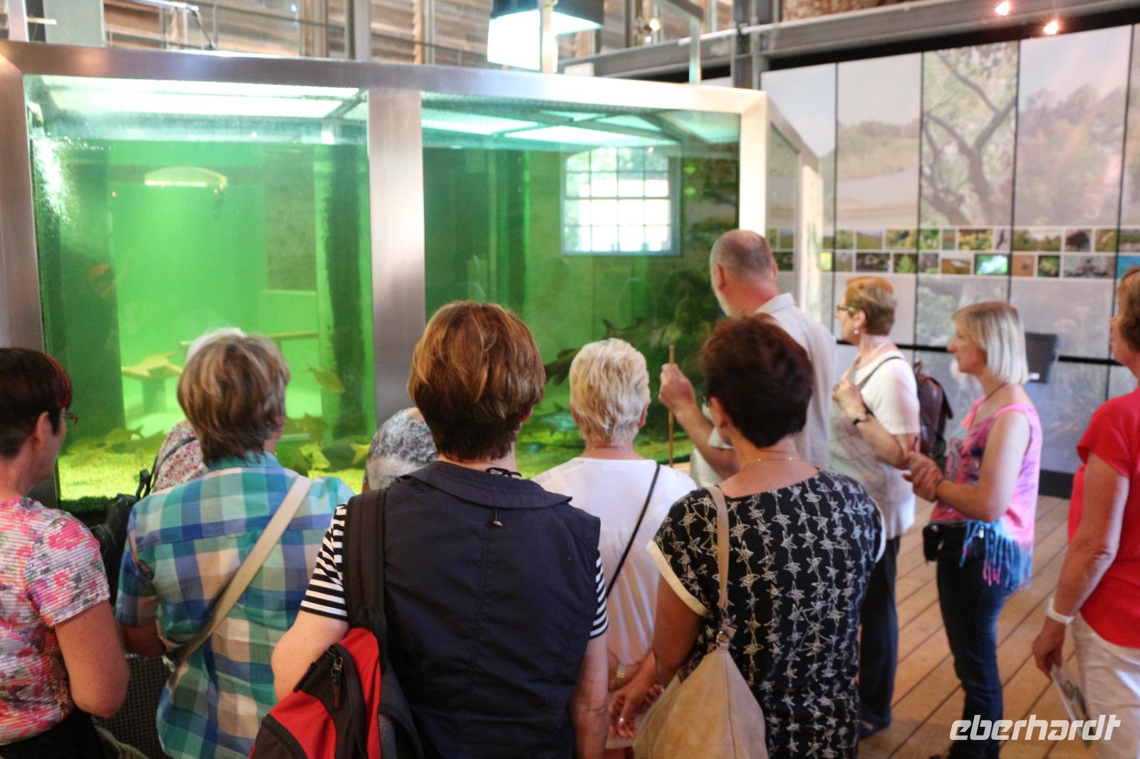 Nach dem Frühstück nahmen wir Abschied von Stettin und reisten im Bus zurück auf die deutsche Seite der Oder. Südlich von Stettin schließt sich das Untere Odertal an, welches auf polnischer Seite ein Natrschutzgebiet ist und auf deutscher Seite sogar ein Nationalpark. Übrigens ist das Untere Odertal der einzige Nationalpark Brandenburgs! Durch die Städte Gartz an der Oder und Schwedt an der Oder erreichten wir das Nationalparkzentrum im Dorf Criewen. Wir spazierten durch den herrlich-grünen Lenné-Park am Schloss Criewen zum Besucherzentrum des Nationalparks, das sich im einstigen Stallgebäude des hübschen Herrenhauses befindet. Hier erwartete uns ein Nationalpark-Ranger und stellte uns die Besonderheiten der Oderauen, der Polderlandschaft und der hiesigen Tier- und Pflanzenwelt vor. Im Besucherzentrum gibt es Aquarien mit heimischen Fischen, ein Modell des Poldersystems, mit dem die Oderauen geflutet werden können, sowie eine Multimedia-Show zur Entwicklung des Nationalparks. Danach wanderten wir mit einem Ranger gemeinsam in die idyllische Polderlandschaft der Oder und erfuhren Wissenswertes zu den Pflanzen und Bäumen. Nach einer Mittagspause im Eiscafe und aus unserer Bordküche traten wir nach diesem Ausflug in die Natur die weitere Heimreise an. Wir durchquerten zum Abschluss die Choriner Schorfheide mit ihren Moor- und Seenlandschaften und kammen auch am mittelalterlichen Kloster Chorin vorbei. Über Berlin, Dresden und Chemnitz fuhren wir schließlich zurück in die Heimat.