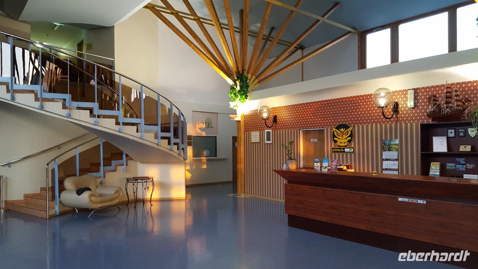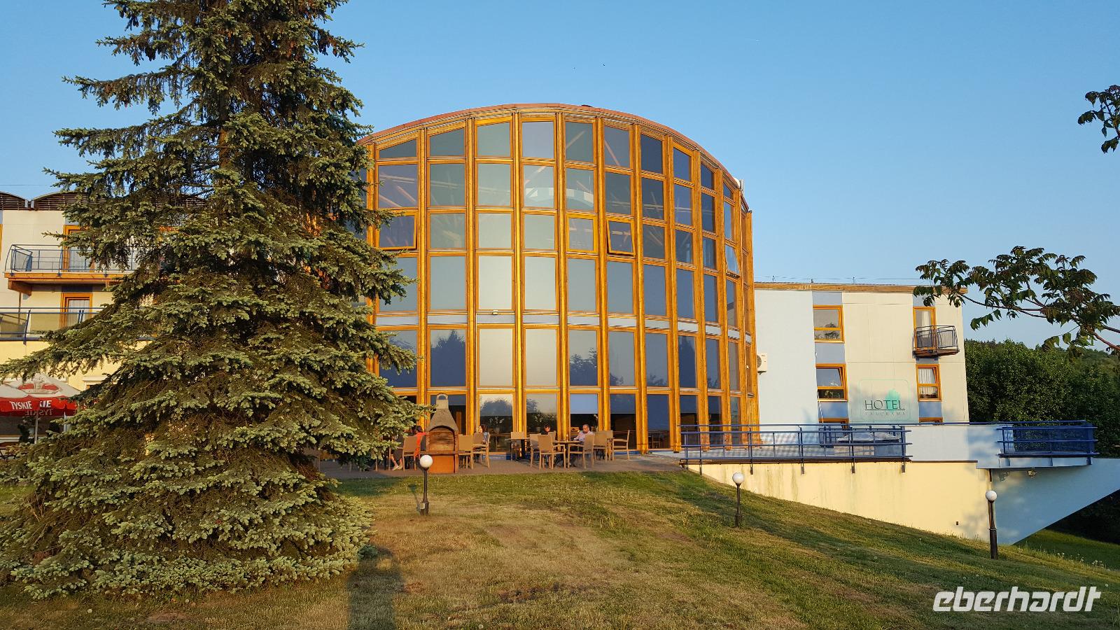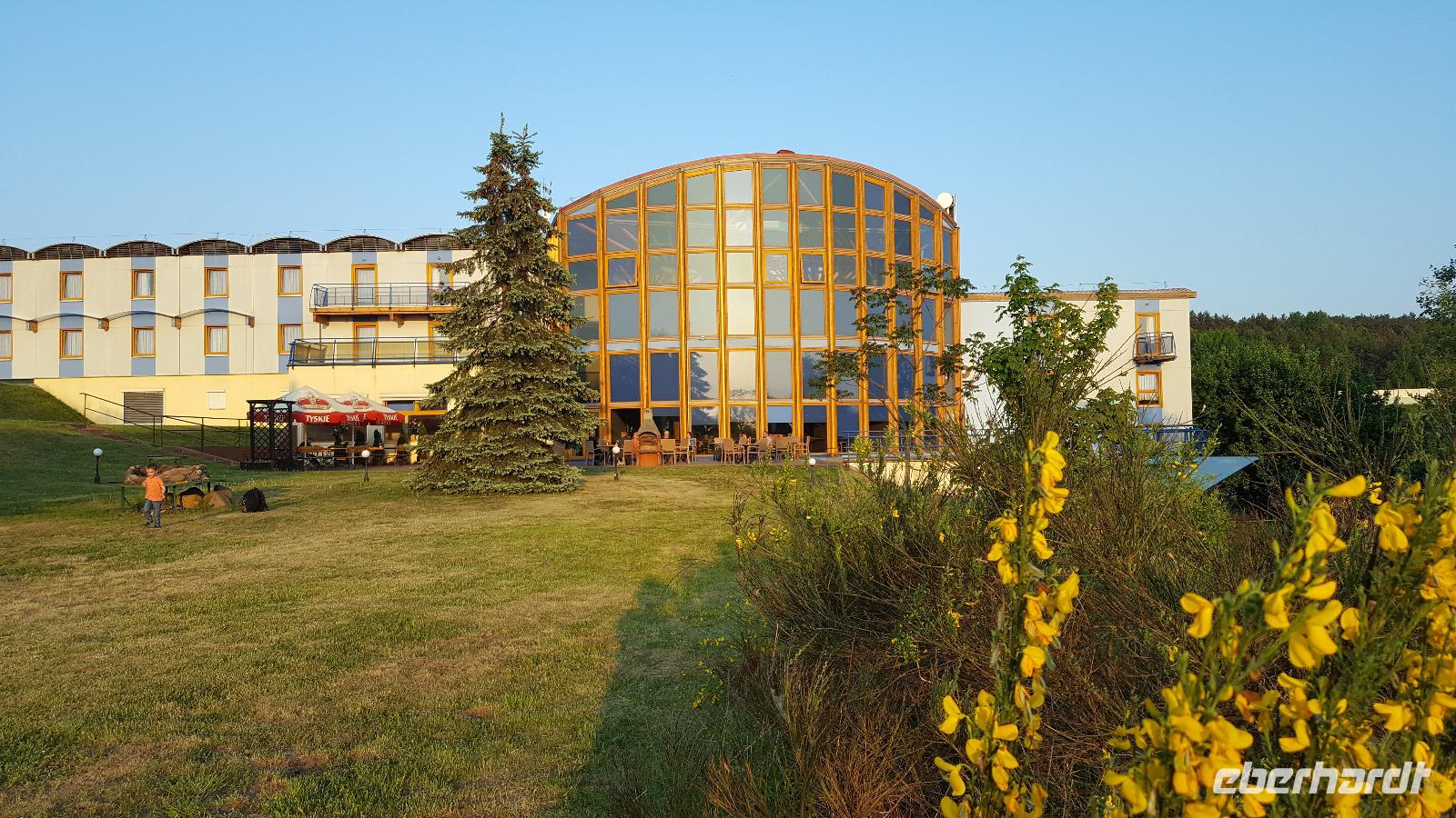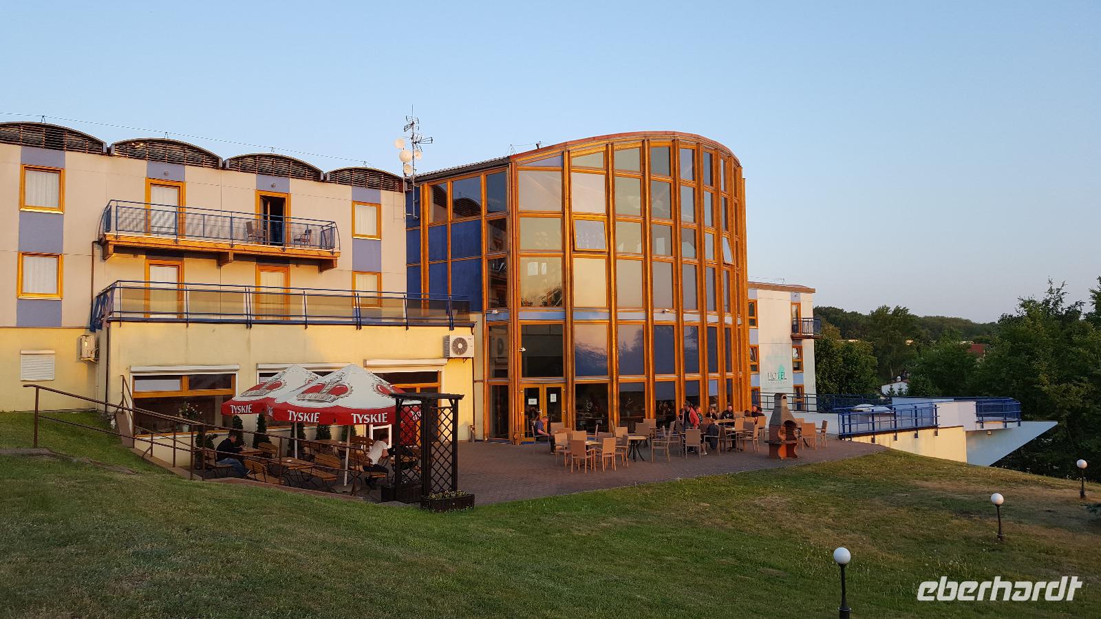 Nach unserem Aufenthalt an der Hakenterrasse, die übrigens nach dem einstigen deutschen Oberbürgermeister Hermann Haken benannt ist, fuhren wir schließlich zu unserem Hotel Panorama am südlichen Stadtrand von Stettin. Das 3-Sterne-Hotel liegt direkt am Landschaftsschutzgebiet Buchheide. Nach dem Bezug unserer Zimmer trafen wir uns zum gemeinsamen Abendessen im Hotelrestaurant. Nach dem 4-Gänge-Menü ließen wir den Abend bei netten Gesprächen, Wein, Bier und Cocktails gemütlich ausklingen.