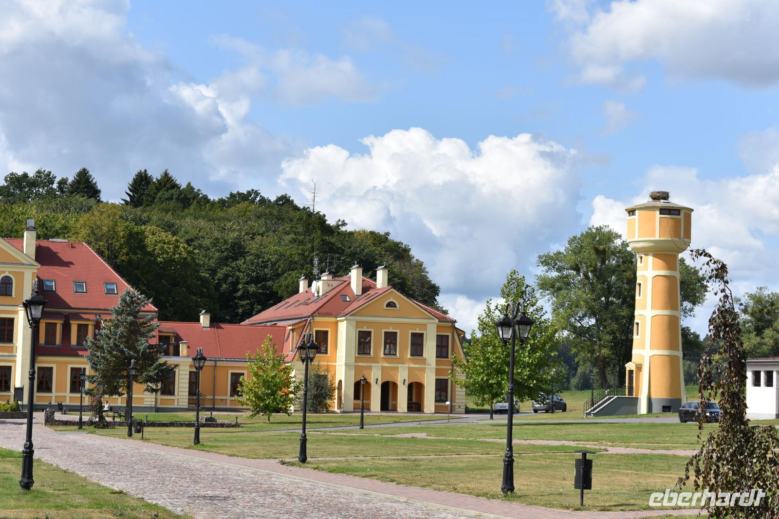 Heute stand eine längere Busfahrt auf dem Programm. Von Kolberg aus ging es in die pommersche Schweiz. Fast 100 Kilometer liegt der Park Drawsko von der Kolberger Küste entfernt. Auf dem Weg in den Landschaftsschutzpark durchquerten wir ländliche Dörfer und Kleinstädte. Zuerst ging es mit dem Bus durch den 414 Quadratkilometer großen Park und an zahlreichen, idyllischen Seen vorbei, die im Wald eingewachsen waren. Später durchfuhren wir das Gebiet mit dem Rad. Aber bevor wir unsere Radtour starteten, hielten wir an der alten Festungsanlage aus dem Mittelalter in der Ortschaft Stare Drawsko an. Von dort war es nicht mehr weit bis zu unserem Startpunkt. Von Zlocieniec aus radelten wir mit unseren Fahrrädern in nördliche Richtung. Durch den Regen war die Fahrbahn sehr nass und es waren auch schon wieder dunkle Wolken am Himmel, aber wir hatten Glück. Wir sind super durch den Park gekommen - ohne nass zu werden - und konnten auch die tolle Landschaft und ein paar Vögel beobachten. Die Strecke war sehr flach, sodass wir mit unseren E-Bikes förmlich dahinflogen. Wir kamen durch einige Ortschaften machten auch einen Stopp am See Siecino bei Cieszyno, wo wir auch eine Fachwerkkirche aus dem 19. Jahrhundert sahen. Am Rastplatz Miejsceobslugi hatte Robert schon den Grill für uns angeheizt. Wir stärkten uns mit pommerschen und schlesischen Würsten. Dann setzte kurzzeitig ein starker Regen ein. Glücklicherweise hatten wir die Gelegenheit uns unterzustellen und den Schauer abzuwarten. Die letzte Etappe nach Bad Polzin machten wir im nu komplett. In dem Kurort angekommen radelten wir durch ein Dach aus Regenschirmen und kamen über den Marktplatz an den Kurpark. Sylwester erklärte uns etwas zur Geschichte des Bad Polziner Kurparks und deren Sprichwörter, die man sich in Polen erzählt. Dann war es aber Zeit für etwas Süßes - denn schon am Tag zuvor hatten wir dies ausgelassen. Im naheliegenden Café kehrten wir ein.