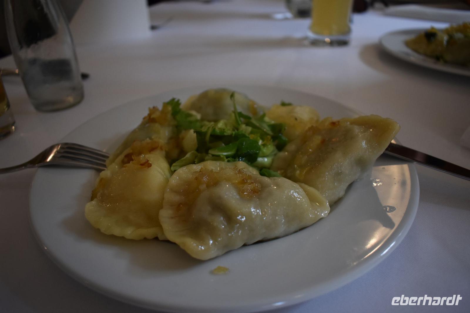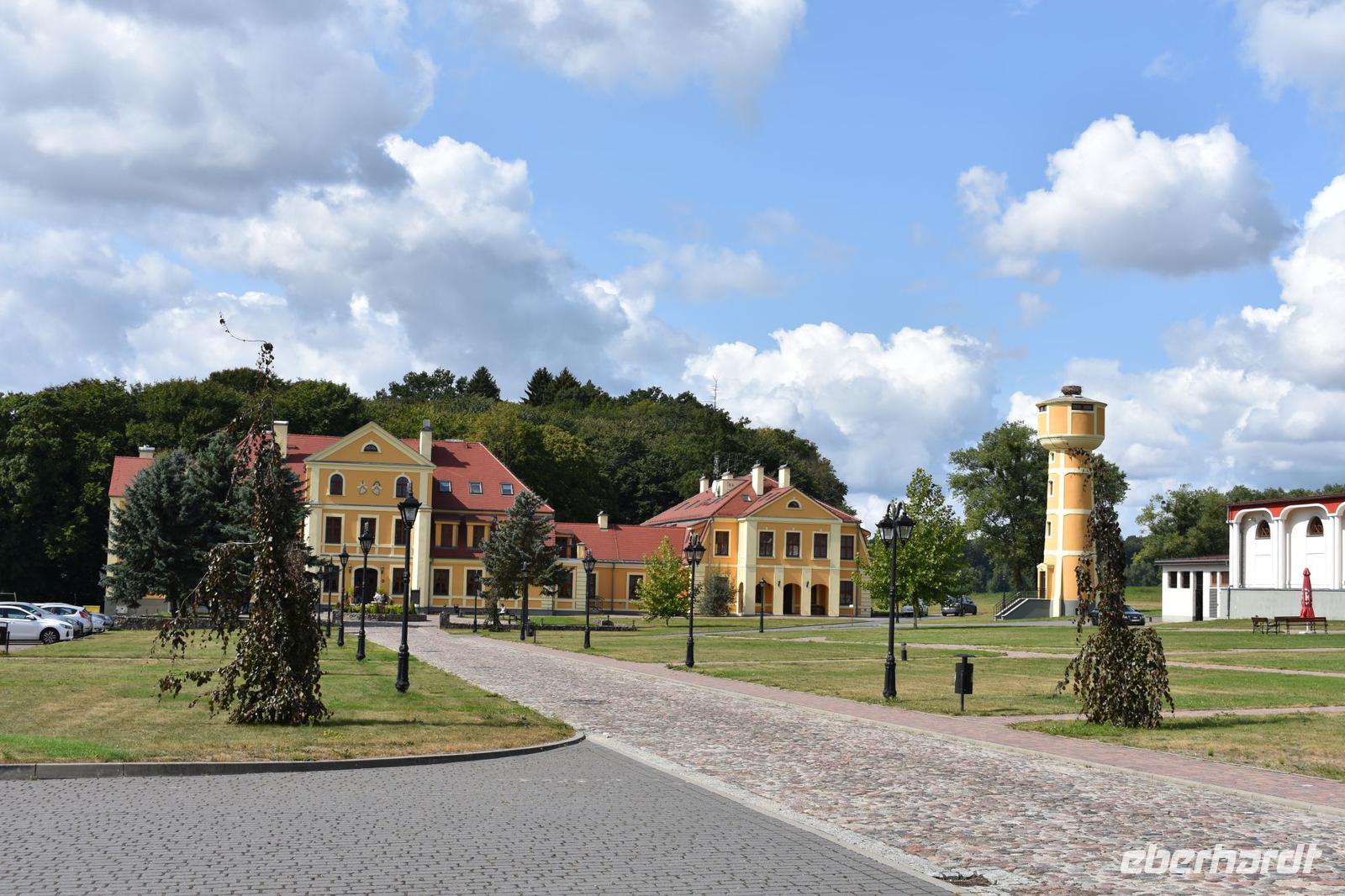 Wir starteten mit unseren E-Bikes vom Ikar Plaza. Erst ging es an der Promenade in Richtung Kolberg entlang. Etwas außerhalb von Kolberg gelegen kamen wir zum alten Friedhof, an dem der Gefallenen gedacht wird, die in der Schlacht im März 1945 ums Leben gekommen sind. Wir radelten durch die flache, ländliche Gegend und kamen dabei durch Dörfer wie Bezpraw, Charzyno und Goscino, wo wir an einer Tankstelle rast machten. Leckeres Eis und erfrischende Getränke stärkten uns für die nächsten Kilometer. Wälder und Felder lagen an unsrem Weg. Manchmal auch Kuh- und Rinderweiden. Zum Mittagessen hielten wir im Gutshaus Ryman an. Ein schwedischer Unternehmer restaurierte das Haus und machte ein wunderschönes Hotel daraus. Wir durften dort eine polnische Sauerteigsuppe und Pierogi essen. Nach dieser deftigen Mahlzeit war uns eher nach Mittagsschlaf, aber es war nicht mehr weit zum Tagesziel. Noch gute 10 Kilometer radelten wir zum See Studnica. Es schien zwar die Sonne, aber dennoch traute sich nicht jeder ins Wasser. Eigentlich hatten wir nur einen mutigen Schwimmer dabei. Es war doch schon etwas frisch geworden. Nach diesem tollen Naturerlebnis ging es mit dem Bus zurück ins Hotel. Am Abend gab es wieder Gutes vom Buffet.
