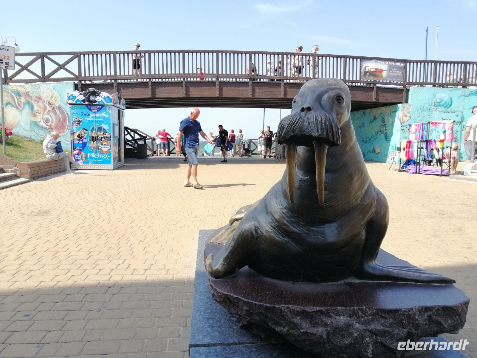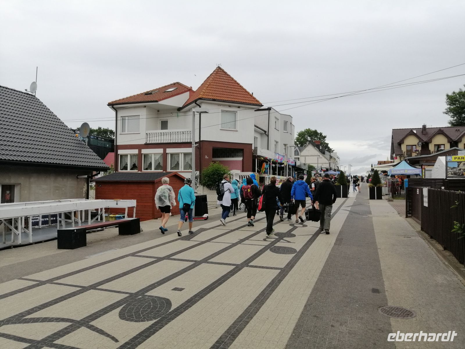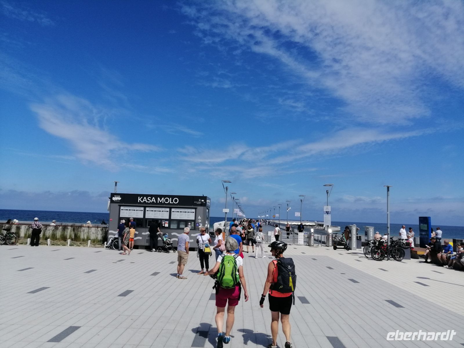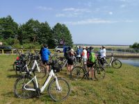 Nach dem leckeren Frühstück trafen wir und gegen 9 Uhr bei Sylwester im Fahrradverleih, gleich am Hotel. Nach kurzen Anpassungen starteten wir unsere erste Fahrradtour. Wir fuhren entlang der Ostseeküste Richtung Osten und machten gleich im Ökopark "Ost" (Ekopark Wschodni) eine kurze Pause. Sylwester erzählte uns über dieses Naturschutzgebiet und über die viele heimische Vogelarten, die hier nisten. Dieses Sumpfgebiet (ca. 380 Hektar) bietet den Lebensraum für etwa 80 unterschiedliche Vogelarten. Es wurden die ersten Fotos geschossen:-) Sylwester erzählte uns aber auch über die Geschichte der Region und zwar über die Belagerung durch Napoleons Armee (1807) und zeigte uns den Damm aus der damaligen Zeit. Wir fuhren dann weiter an der ehemaligen deutschen Militäranlage aus dem Jahr 1938 (Flugplatz) und hatten dabei fast immer die Ostsee im Blick! Da es gerade in Polen ein verlängertes Wochenende gab, sind die Fahrradwege und die Erholungsanlagen gut besetzt und es sind sehr viele Menschen unterwegs. Schon bald machten wir eine kurze Kaffeepause in einem gemütlichen Café an der Seebrücke Molo Busola. Wir nutzten diese Pause für eine kleine Vorstellungsrunde. An dem Tag ist es sehr windig und Sylwester schlug vor die Mittagspause nicht direkt am Strand (wegen dem Sand im Essen), sondern in einem kleinen Wald zu machen. Robert, der sehr nette Kollege von Sylwester, wartete schon auf uns und servierte ein hervorragendes Picknick: alles frisch und selbst gemacht von Robert seiner Frau. Mit einigen Zwischenstopps am Leuchtturm Funkenhagen (Latarnia Morska Gaski) und am Denkmal 16. Meridian, erreichten die die Hafenpromenade von Mielno. Hier machten wir eine längere Pause, um ein Eis zu essen oder einen Kaffee zu trinken. Sylwester erzälte uns über das jährliche Treffen der Walrösser (Menschen, die gerne Eisbaden praktizieren) in Februar und zeigt uns die Walross-Statue - das Zeichen von Mielno. Weiter ging es Richtung Jamundsee. Dort machten wir eine kurze Pause mit Blick Richtung Stadt Koszalin und Gollenberg. Sylwester erzählte uns über die Geschichte der früheren Hafenstadt, die später dann als deutsches und danach als polnisches Militärgebiet diente. Gegen 17 Uhr erreichten wir unser Endziel in Lazy und wurden dort von einem Kleinbus abgeholt. Ein leckeres Abendessen rundete den ersten aktiven Urlaubstag ab.