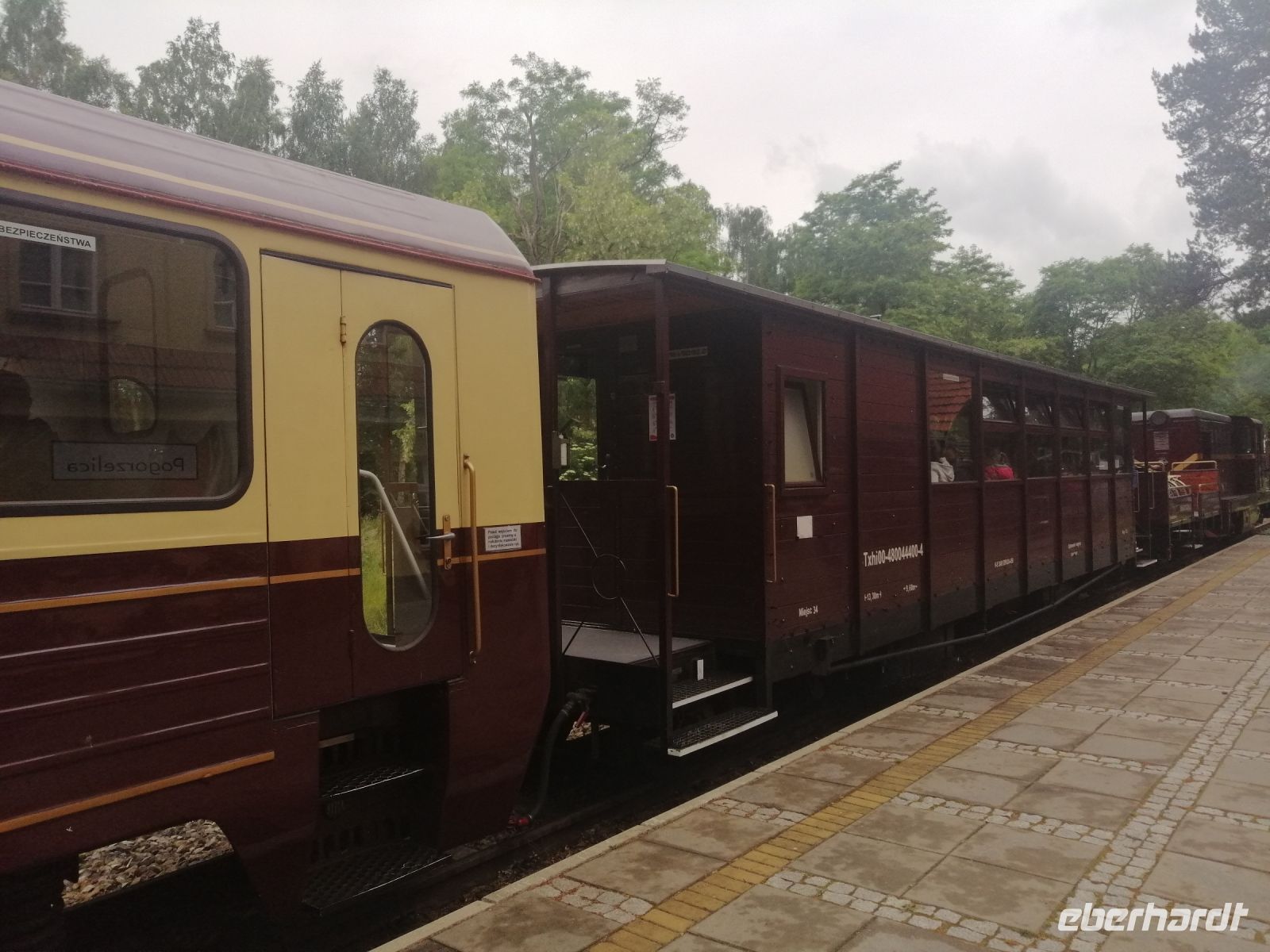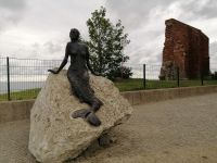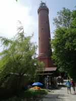 Heute hatte Sylwester in der Berufsschule zu tun und wir wurden von seiner netten Kollegin Claudia gleich nach unserem Frühstück in Empfang genommen und fuhren mit einem Kleinbus nach Trzesacz (Hoff), einen kleinen Ort westlich von Kolberg. Die Fahrt war sehr unterhaltsam, denn Claudia erzählte uns unterwegs nicht nur über Störche und über die Ortschaften, an denen wir vorbei fuhren, sondern auch einige Legenden, die typisch für diese Region sind. Eine davon war die Geschichte über die "Grützenberger Frau und Wache" - in einem Ort sahen wir sogar eine Wandmalerei mit Darstellungen aus dieser Legende. In Trzesacz angekommen, besuchten wir das multimediale Museum. Im Museum wurde anhand einer Erzählung mit einer Meerjungfrau die Geschichte der berühmten Kirche von Hoff (entstanden um 1250 bzw. 1270) dargestellt. Anschließend gingen wir zur Ostseepromenade und schauten uns die Kirchruine in echt an und besuchten auch die Aussichtsplattform. Danach ging es zum Bahnhof, wo uns eine Überraschung erwartete: eine Fahrt mit der Schmalspurbahn! Mit der Schmalspurbahn fuhren wir bis zur Haltestelle Pogorzelica. Dort erwartete uns schon Robert mit unseren Fahrrädern. Die Fahrradtour verlief durch den Wald, auf einem breiten Waldweg, am Militärgelände vorbei durch das Naturschutzgebiet. Mit kurzen Pausen und vielen Erzählungen erreichten wir gegen Mittag den Hafen von Mrzezyno, wo auf uns schon Robert mit einem Picknick wartete. Nach der Stärkung mit frisch vorbereiteten polnischen Spezialitäten, mit ein bisschen Bier und Wein, fuhren wir entlang der Ostseeküste durch eine wunderschöne Dünnenlandschaft Richtung Osten weiter. Am See Przystan Rogowo machten wir eine kurze Pause und Claudia erzählte uns über die abgeschossenen Flugzeuge mit Kindern während des zweiten Weltkrieges. Spät Nachmittag erreichten wir Kolberg und besichtigten dort zuerst eine Gedenkstätte an die deutschen Einwohner von Kolberg, die auf den damaligen Friedhöfen der Stadt beerdigt wurden und danach den Hafen mit dem Leuchtturm. Viele Erlebnisse eines anstrengenden Tages besprachen wir beim reichlichen Abendessen im Hotel.