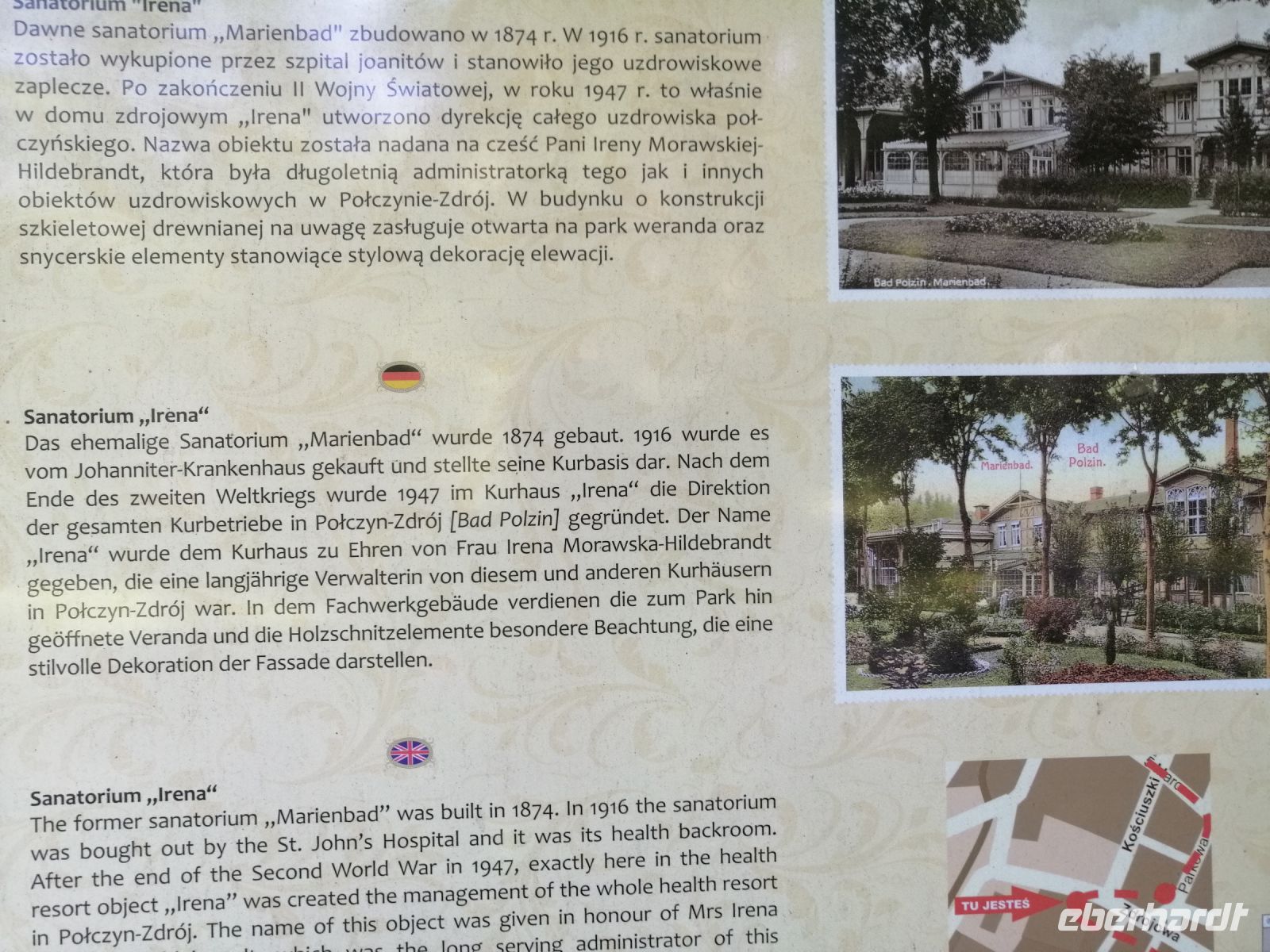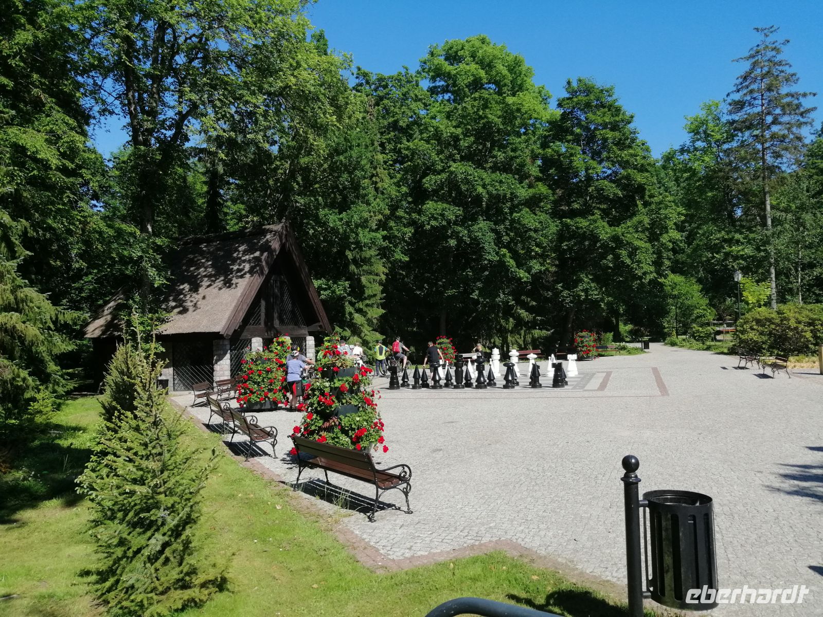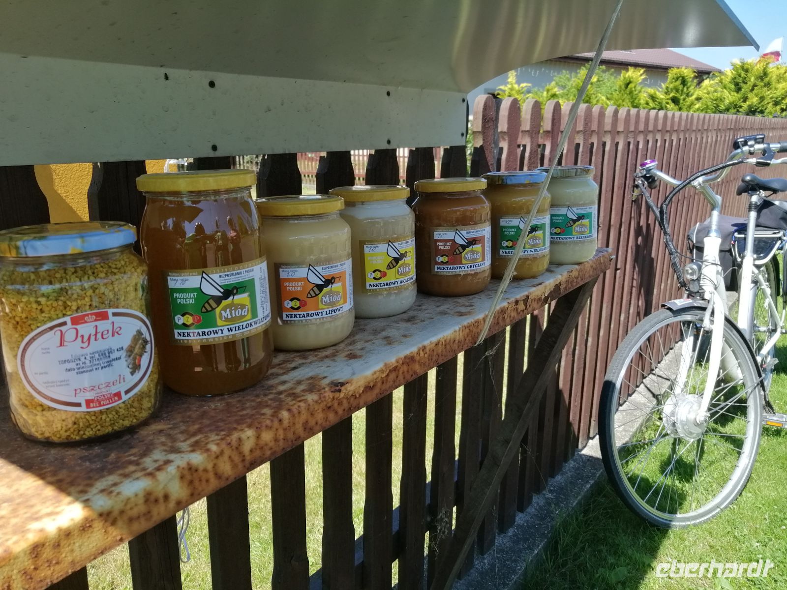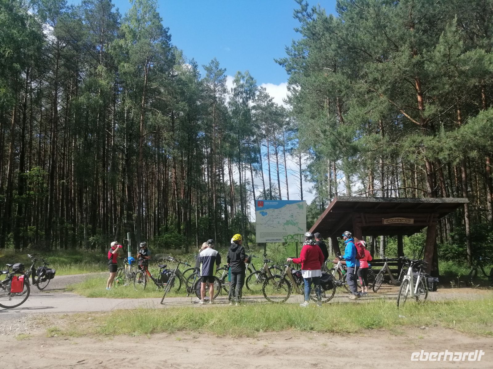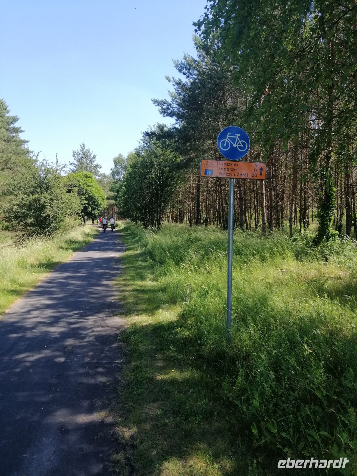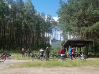 Gleich nach dem Frühstück fuhren wir mit einem Kleinbus nach Zlocieniec in die Pommersche Schweiz. Unterwegs erzählte uns Sylwester über die Windkraftanlagen in der Region Kolberg (150 Stück) und erwähnte dabei, dass es fast 350 Windtage im Jahr gibt. Außerdem zeigte uns Sylwester sein Haus und das Haus von seinem Nachbar (Robert) :-) und erzählte über die Entwicklung der Immobilienpreise in seiner Heimat in den letzten 8 Jahren. Als wir ankamen, wartete Robert schon auf uns an einer Tankstelle. Wir nahmen unsere Räder und starteten unsere letzte Radtour dieser Reise Richtung Toporzyk. Die geplante Badepause machten wir am Jezioro Siecino (Zezinsee). Das Wasser ist sehr angenehm und erfrischend. Viele Info-Tafeln am See aber auch unterwegs beschreiben entweder die Entstehung der Landschaften oder die heimische Fauna und Flora. Der Radweg verlief durch eine sehr abwechslungsreiche Endmoränenlandschaft mit schönen Wäldern und vorbei an naturbelassenen Seen. An einem Rastplatz in Toporzyk erwartete uns wieder ein kleiner Grillimbiss mit polnischen Spezialitäten, mit Bier und Wein. Anschließend besuchten wir gleich um die Ecke einen Imker und kauften bei ihm Honig (zum Beispiel Buchweizenhonig) als Mitbringsel nach Hause. Gegen halb vier sind wie schon in Bad Polzin angekommen und machten eine Pause in einem Eis-Café in einer Fußgängerzone. Nach der Besichtigung der Mineralwasserquelle im Kurpark von Bad Polzin hatten wir ein wenig Freizeit um sich im Kurpark umzuschauen. Danach ging es mit dem Kleinbus wieder zurück zum Hotel. Nach dem Abendbrot trafen wir uns kurz bei Sylwester und verabschiedenten uns vom ihm. Danach war die Ostsee dran: wir gingen zum Strand und die besten von allen Radfahrern wurden mit einer Urkunde ausgezeichnet! Wir stoßen mit Prosecco auf die wunderbare gemeinsame Tage an der Ostsee an und verabschiedeten uns von ihr. Bis zum nächsten mal!