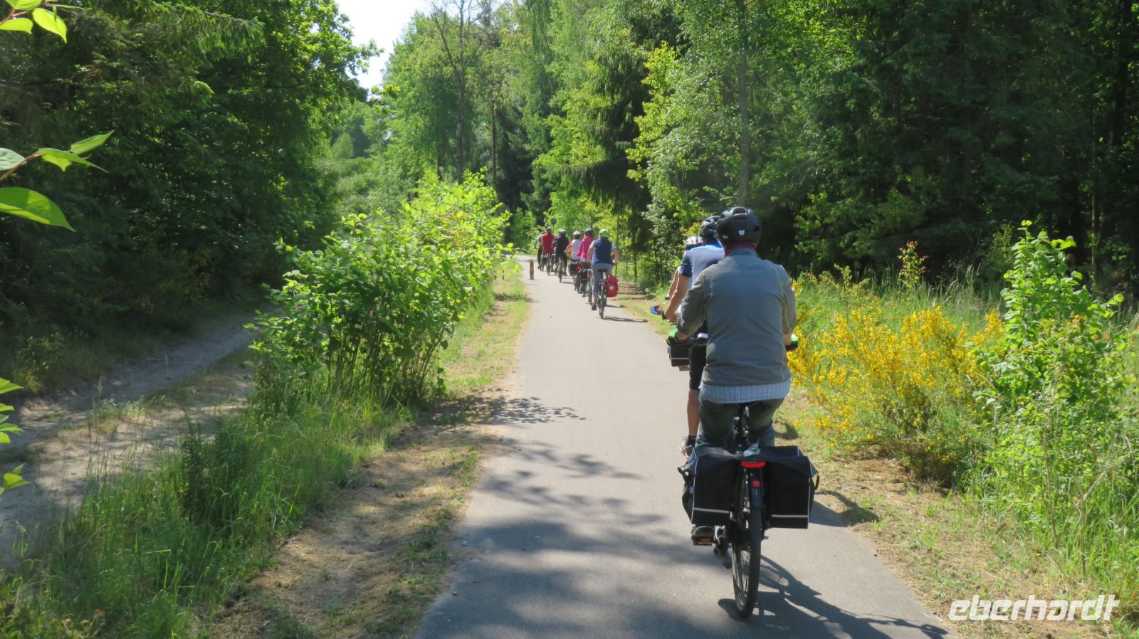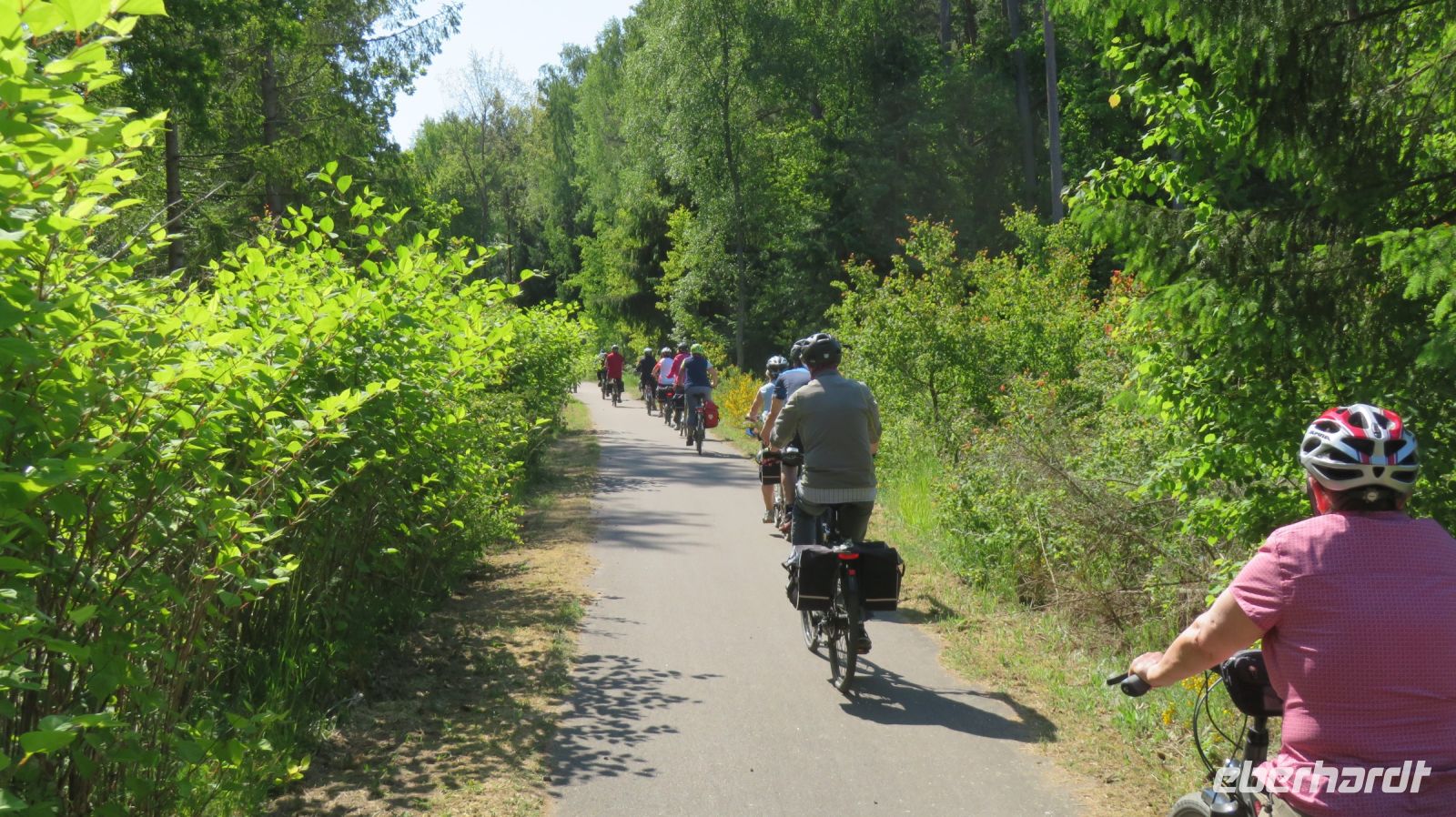 Auch wenn heute keine Gleise mehr zu sehen sind, so konnte man doch erkennen, dass hier einmal die Eisenbahn entlang fuhr. Die Tour führte uns durch Wälder, vorbei an Feldern und blühenden Wiesen.