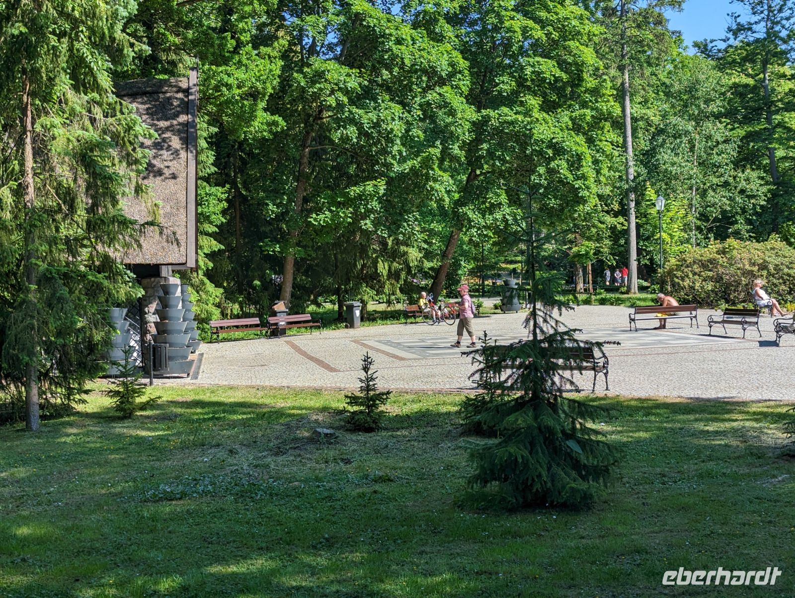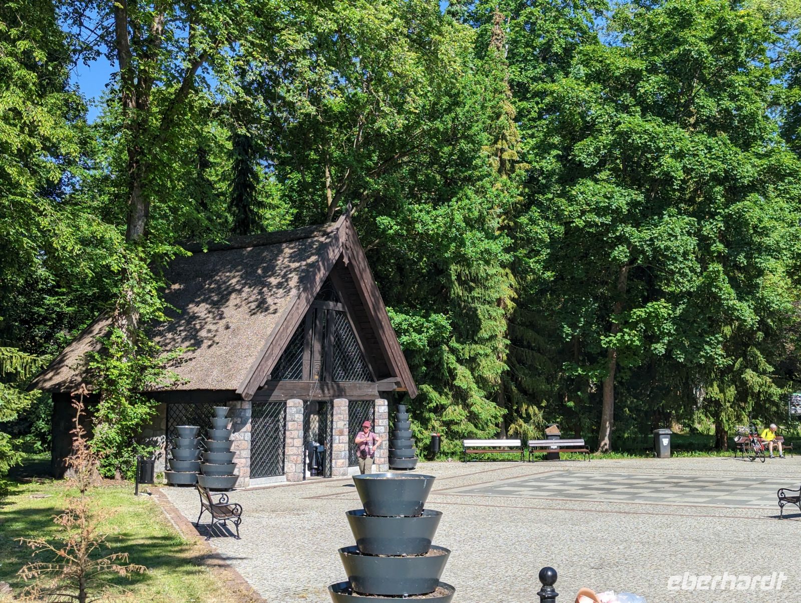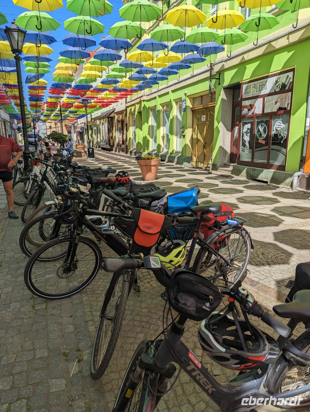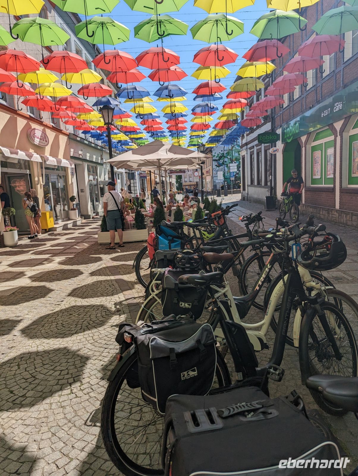 Nachdem wir uns alle gestärkt hatten, fuhren wir weiter nach Bad Polzin. In Bad Polzin aßen wir ein Eis und erfreuten uns an den bunt aufgehängten Regenschirmen.