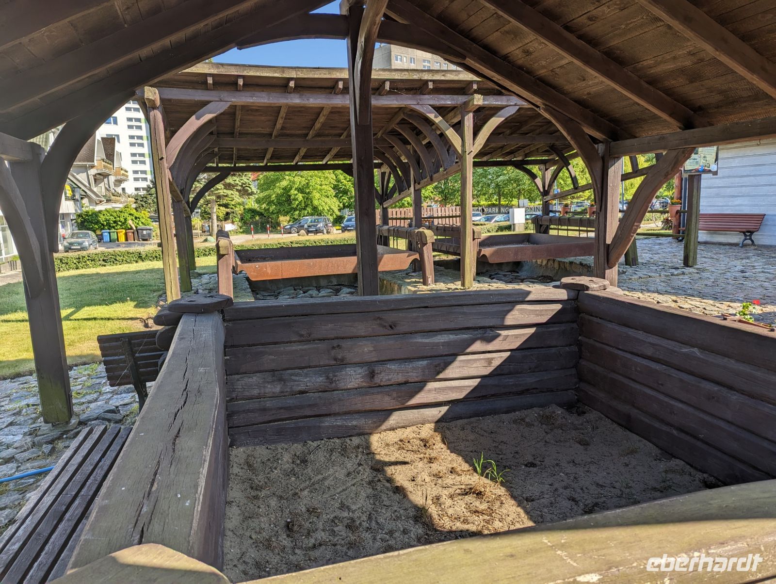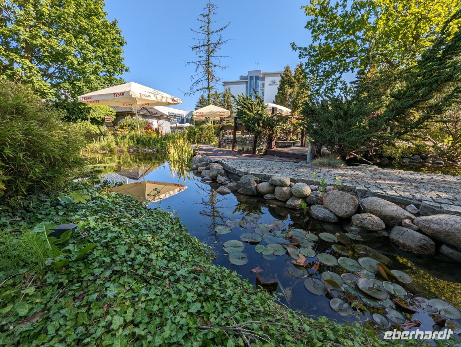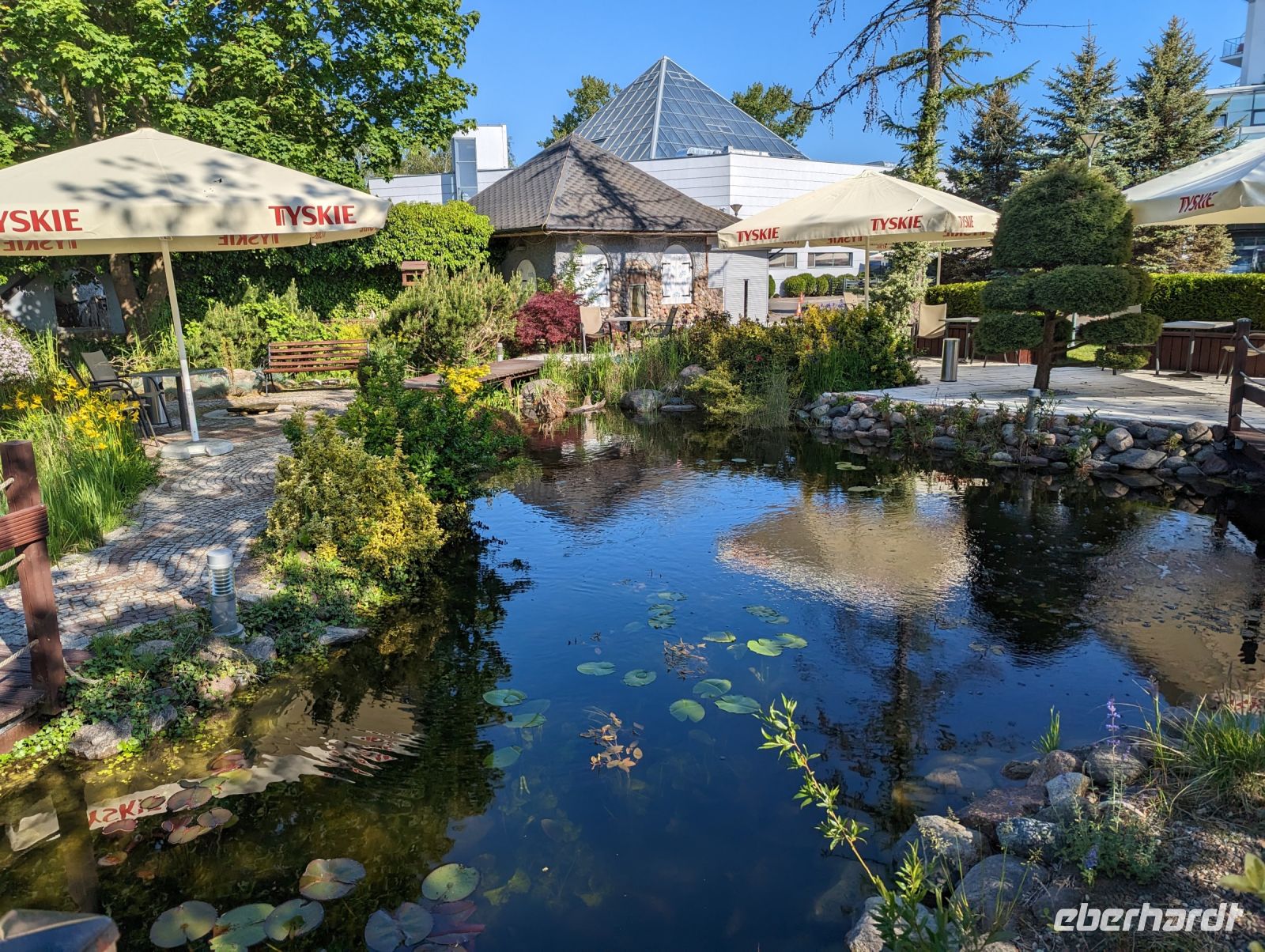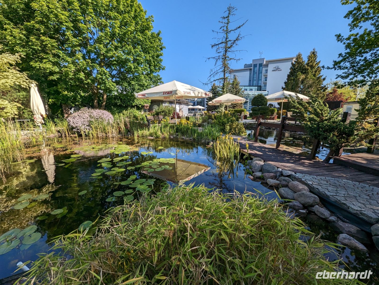 Nachdem wir uns alle gestärkt hatten, fuhren wir weiter nach Bad Polzin. In Bad Polzin aßen wir ein Eis und erfreuten uns an den bunt aufgehängten Regenschirmen.