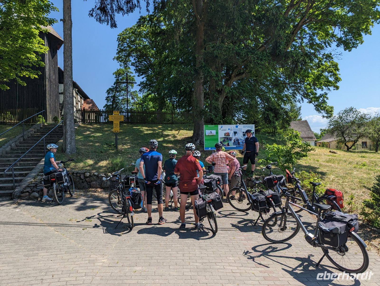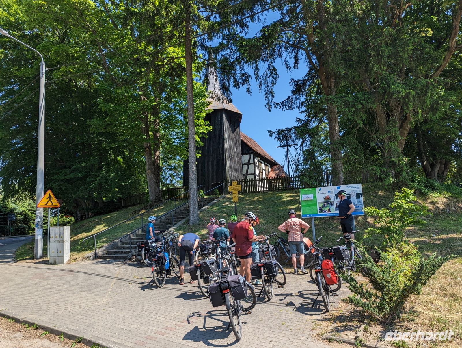 In Goscino besichtigten wir die Kirche St. Andrzeja Boboli, bevor wir zum Schloss Ryman fuhren. Im Schloss Ryman genossen wir unser Mittagessen - Piroggen. Die letzte Etappe des Tages führte uns zum See, wo wir die Fahrräder aufluden und auf den zweiten Transferbus warteten. Wer wollte, konnte im Brunnensee baden oder die Idylle genießen.