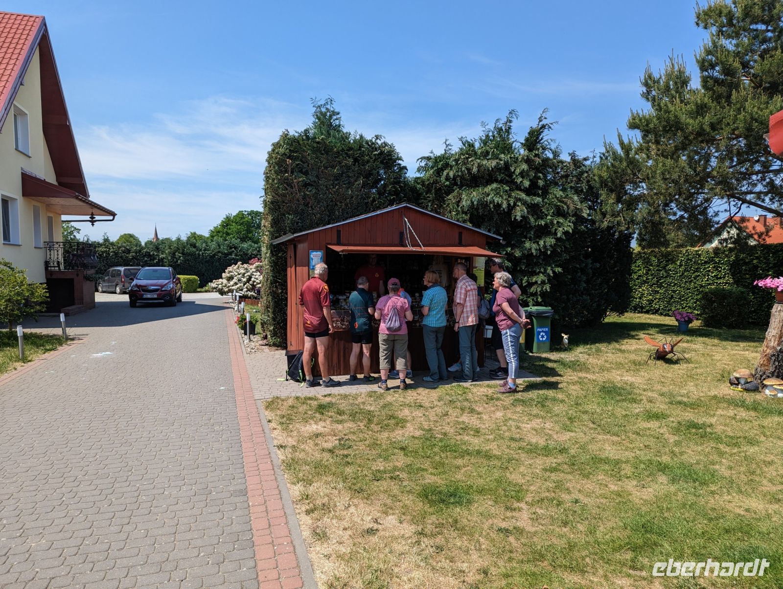 Weiter ging es durch Wälder und über Feldwege, die teilweise mit sandigem Boden bedeckt waren, in Richtung Debogard. Beim Imker in Dygowo angekommen, wurde uns bei einem Picknick einiges über Honig erklärt. Danach konnte jeder, der wollte, ein Glas Honig kaufen. Die Frau unseres Reiseleiters lud uns zu sich nach Hause ein, da sie einen Kuchen gebacken hatte, dies konnten wir nicht ablehnen und so fuhren wir zum Haus unseres örtlichen Reiseleiters. Gut gestärkt setzten alle die Radtour trotz Gegenwind in Richtung Ostseeküste zurück zum Hotel fort.
