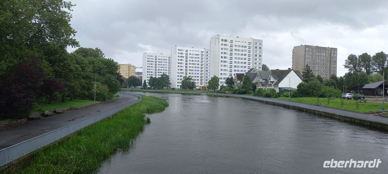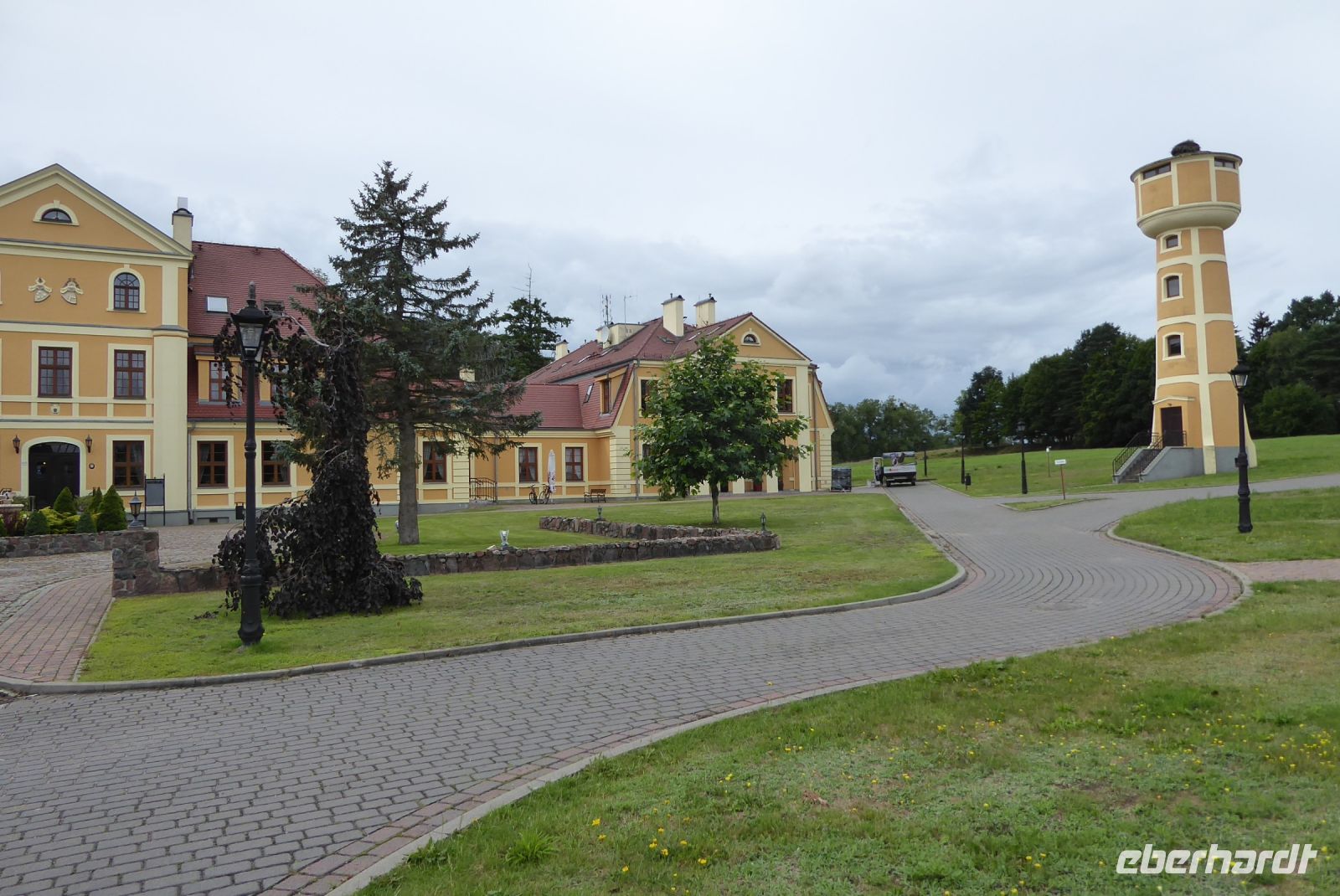 Auf dem alten Bahndamm war ein guter Fahrradweg angelegt worden, der uns vorbei an Feldern und blühenden Wiesen, Goscino, wo wir die Kirche St. Andrzeja Boboli besichtigten, bevor wir zum Schloss Ryman zum Mittagessen fuhren. Lecker, echt polnische Pirogggen mit zweierlei Füllungen. Weiter ging es dann zum Brunnensee, wo die beiden Busse mit dem Fahrradanhänger warteten. Unterwegs holte uns der Regen ein, aber wir war bald an den Bussen und dann auch zurück im Hotel.