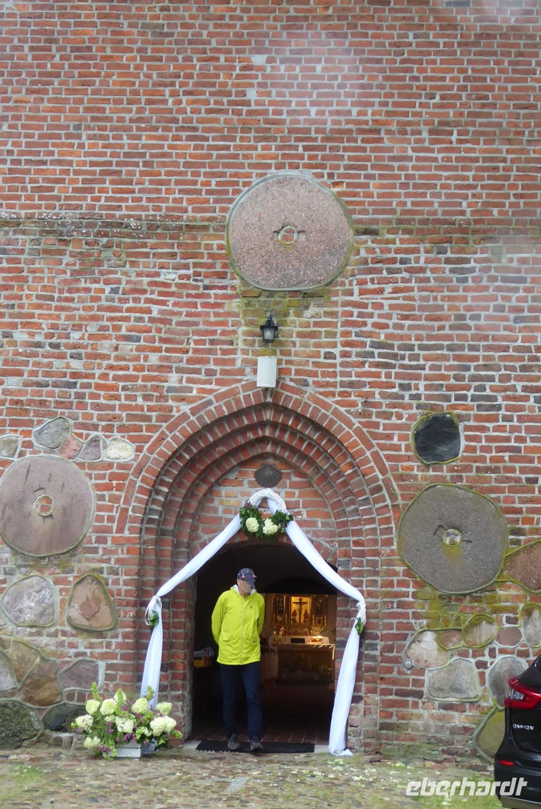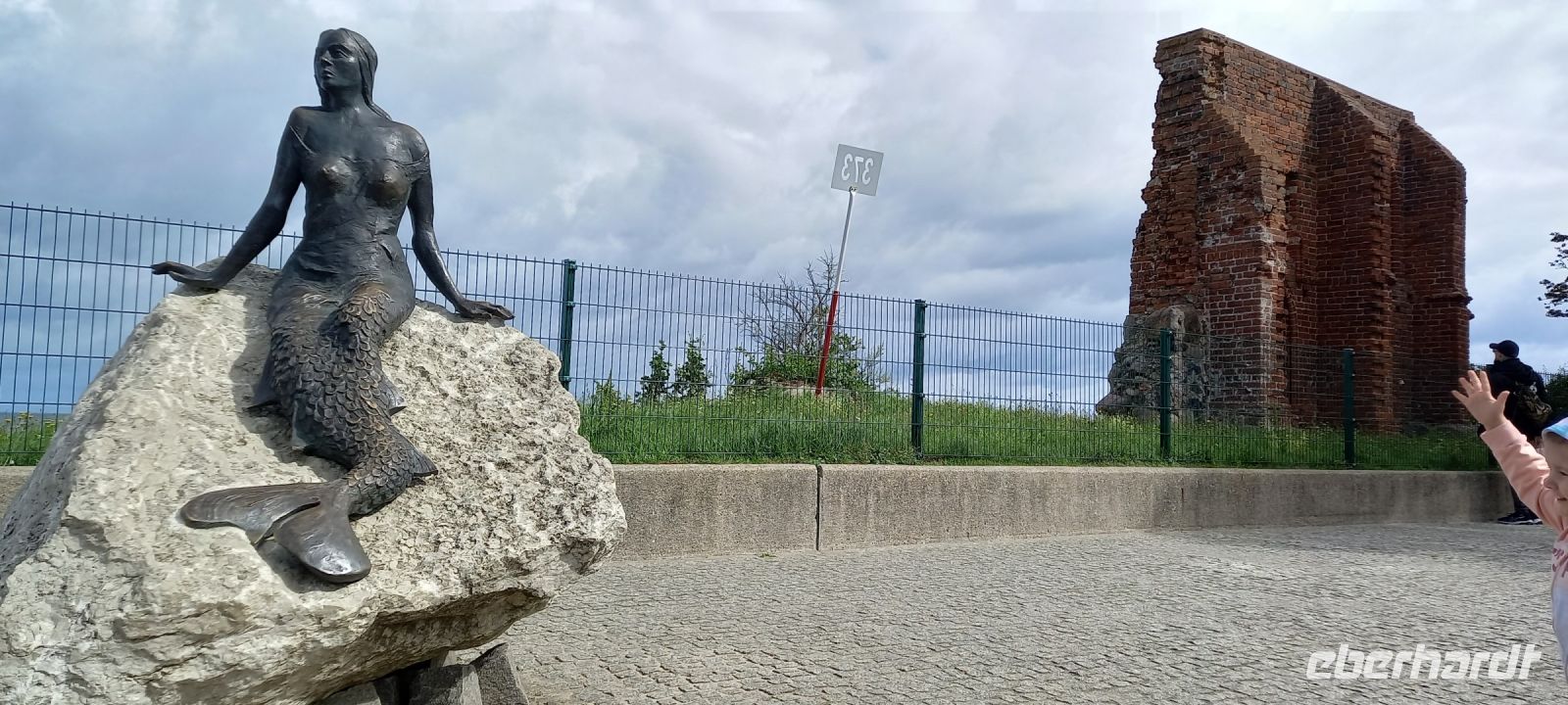 Heute war das Wetter bereits besser. Es gab trockene Phasen, besonders am Vormittag, sodass wir es wagen konnten, heute das Prgramm des 3. Tages in Angriff zu nehmen. Mit den Minibussen und Fahrrad-Anhänger ging es noch Hoff, wo die markanten Sehenswürdigkeiten, die Ruine der Kirche an der Steilküste und die Statue der magischen Meerjungfrau gleich ausgiebig besichtigt und fotografiert werden konnte. die Story dazu gab es im Museum des Städtchens, wo eine Multi-Media-Show die Geschehnisse und die dazugehörige Sage moderierte: Sehenswert! - Dazu läuft der 15. Längengrad/Meridian mitten durch das Museum. Und auch die Bedeutung des 15. Längengrades, der ja auch eine Zeitzone markiert, wurde erklärt.