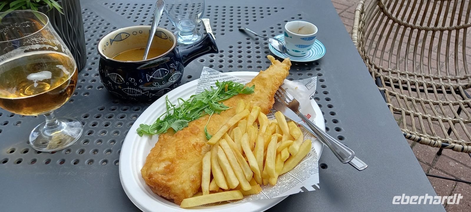 Dann gab es gegrillte Würstchen, Bauerbrot mit Griebenschmalz (Wahnsinn!) und Essiggurten, dazu Wasser und Bier....So konnten wir gut gestärkt den Weg zurück nach Kolberg antreten.