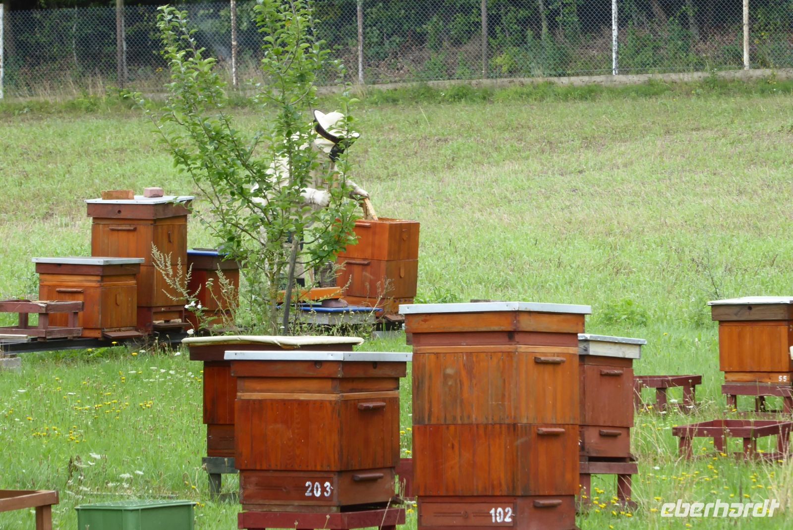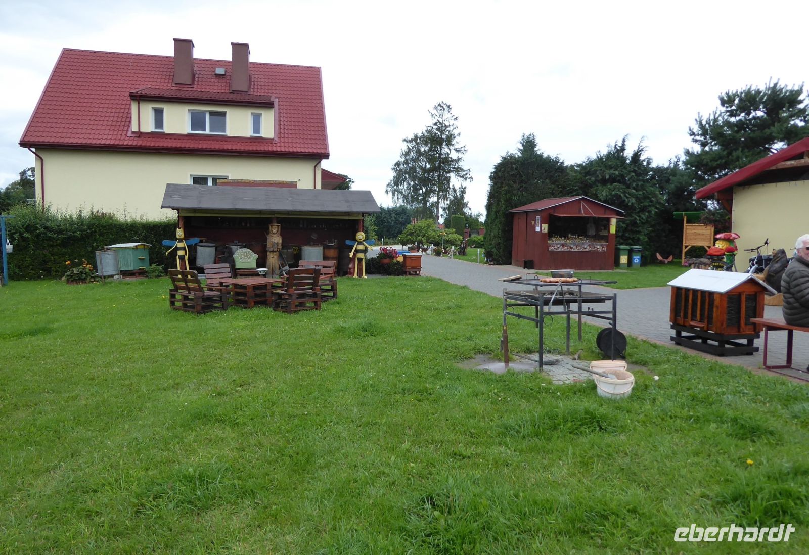 Heute führte uns Klaudia wieder, zuerst noch mal nach Kolberg, wo es ja noch einiges zu erklären gab. Wir waren an der sogenannten Altstadt, dem Militär-Museum, am Rathaus und schließlich im Dom, wo uns Klaudia kompetent und kompakt sehr viel erzählte. Dann machten wir uns auf die Strecke zur Imkerei. Beim Einfahren in den Hof sahen wir bereits Sylvester am Grill stehen.... Der Juniorchef der erklärte uns seine Arbeitweise, das "Wandern" der Bienenstöcke in der Umgebung und zuletzt die verschiedenen Honigarten, die produziert wurden. Hier hat der Buchweizen eine hervorragende Bedeutung. Der Honig aus Buchweizenblüten hilft quasi gegen alle Gebrechen der Menschen..