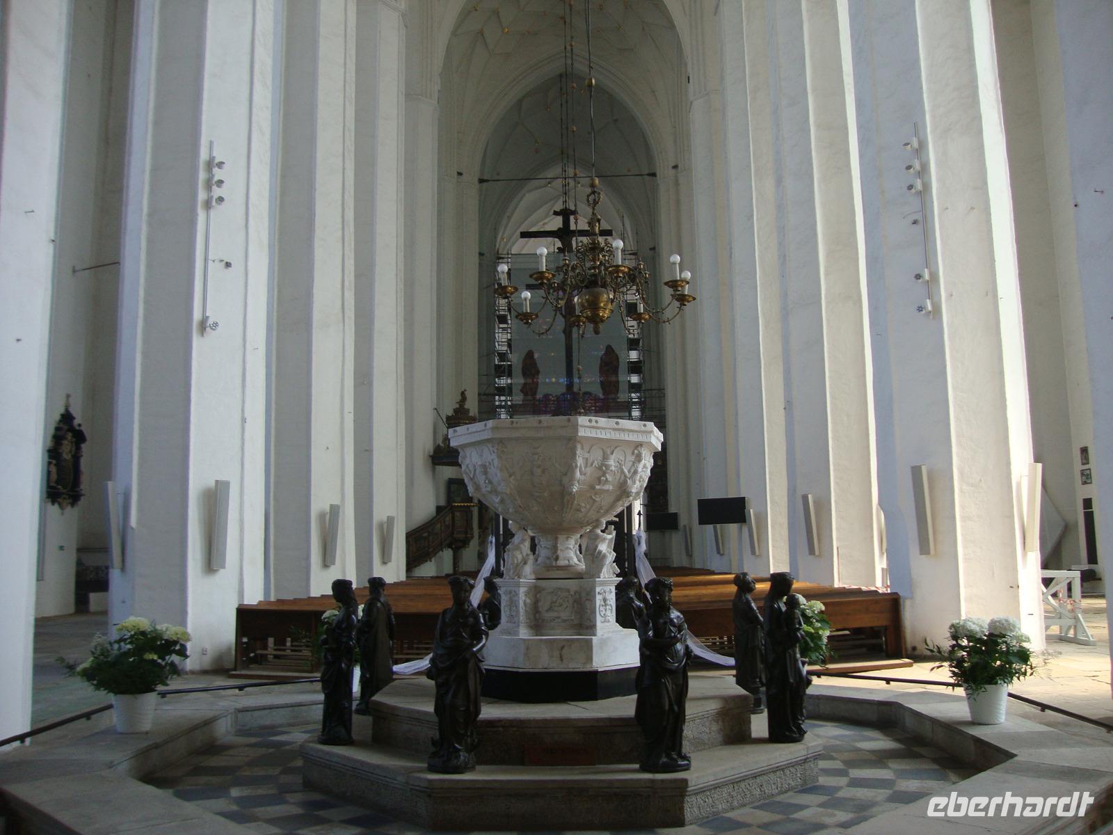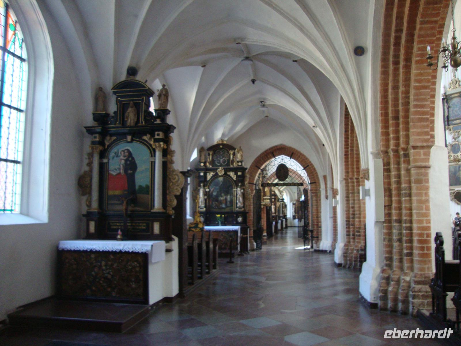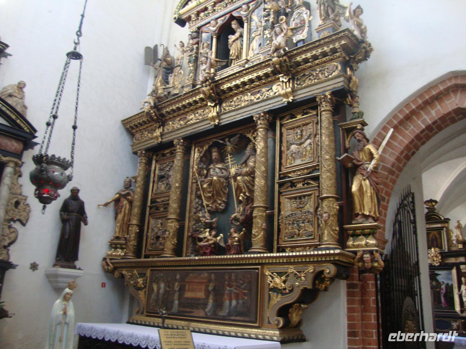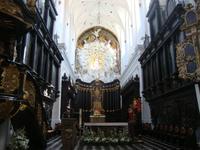 Nach dem ersten, abwechslungsreichen Frühstück, begann unser Tagesprogramm mit Piotr. Die Kathedrale im Stadtteil Oliwa (Oliva) war unser erstes Ziel. Sie entstand im 13 Jh. als Teil einer Zisterzienserabtei, zu der auch Kreuzgang und Klausurgebäude gehörten. zwei schlanke Backsteintürme mit spitzen barocken Dachhelmen überragen die Kirche. Die prächtige Orgel mit dem geschnitzten Rokokoprospekt wurde 1788 eingebaut. Bei dem wundervollen Orgelspiel erlebten wir, wie sich die Engelfiguren mit ihren Trompeten und Glocken bewegten. Während unserer Rückfahrt nach Danzig hielten wir gegenüber der Westerplatte. Eine hohe Stele mit Soldatenköpfen und Waffen erinnert daran ,das hier der Zweite Weltkrieg begann, mit heftiger gegenwehr der polnischen Soldaten. In der Altstadt von danzig waren wir dann zu Fuß unterwegs. Die Marienkirche gilt als die größte mittelalterliche Backsteinkirche Europas.Die Frauengasse wirkt wegen der Beschläge mit verzierten Geländern und Treppen sehr malerisch. Diese Terassenplätze vor den Häusern waren Privileg der Patrizier. Läden bieten Bernsteinschmuck mit Qualitätssiegel an. Das berühmteste Wahrzeichen Danzigs ist das an der Mottlau in der Mitte des 15.Jh. errichtete Krantor. Bei unserem Rundgang mit Piotr erlebten wir die pulsierende Altstadt hautnah. Am Nachmittag konnte jeder Reisegast Danzig auf eigene faust entdecken, denn bis zu unserem Hotel waren es nur wenige Gehminuten, bevor wir uns am Abend zum 3-Gang-Menü einfanden.