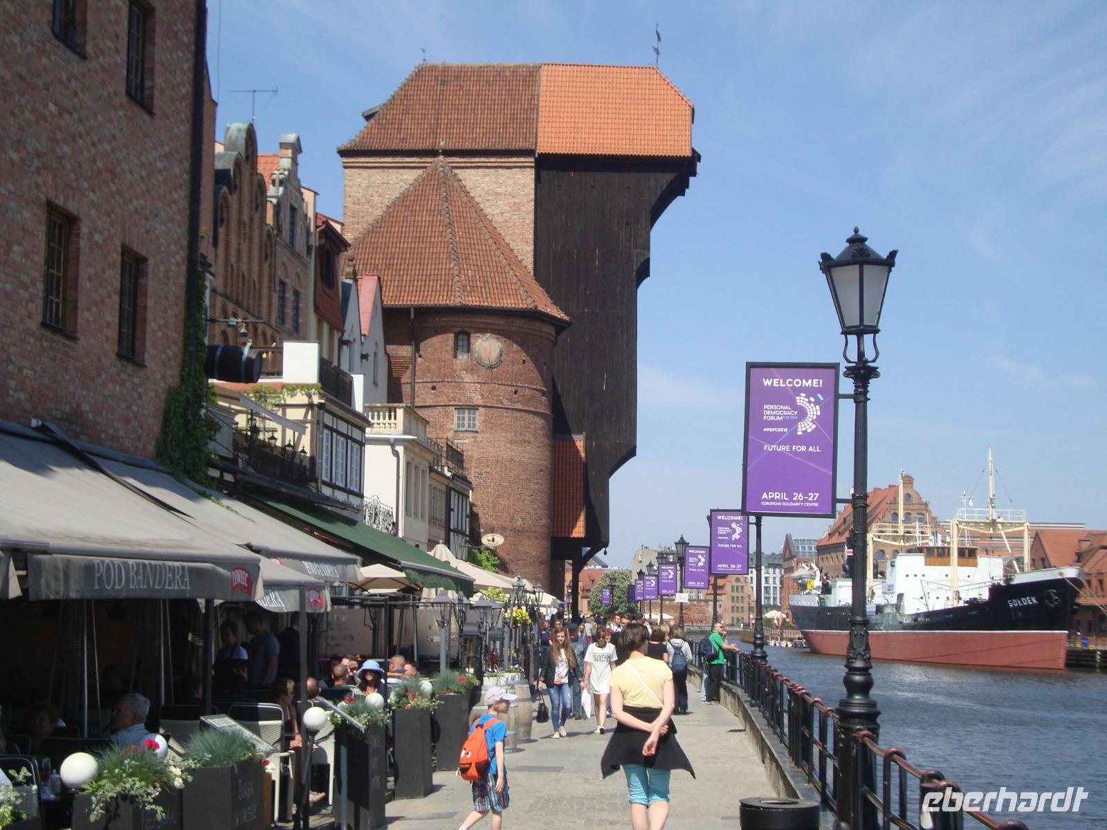 Unsere Reise begann dieses Mal frühzeitig in Chemnitz, über Dresden bis Berlin, wo die letzten Gäste zustiegen. Bis zur Grenze verlief unsere Fahrt problemlos. Aber nach Kolbaskowo begann die Fahrt nach Danzig zum Geduldsspiel zu werden. Viele Baustellen passierten wir. Es wird mit Hochdruck an den schnellen Verbindungen (Autobahnen) gearbeitet. Gegen 18.00 Uhr erreichten wir unser Hotel "Number one", nahe der Altstadt gelegen. Hier wurden wir von unserem polnischen Reiseleiter, Piotr Narewski, ganz herzlich begrüßt. Wer wollte, konnte nach dem Abendessen noch einen kleinen Spaziergang, z.B., bis zum Krantor unternehmen, die abendlichen, angenehmen Temperaturen luden dazu ein.