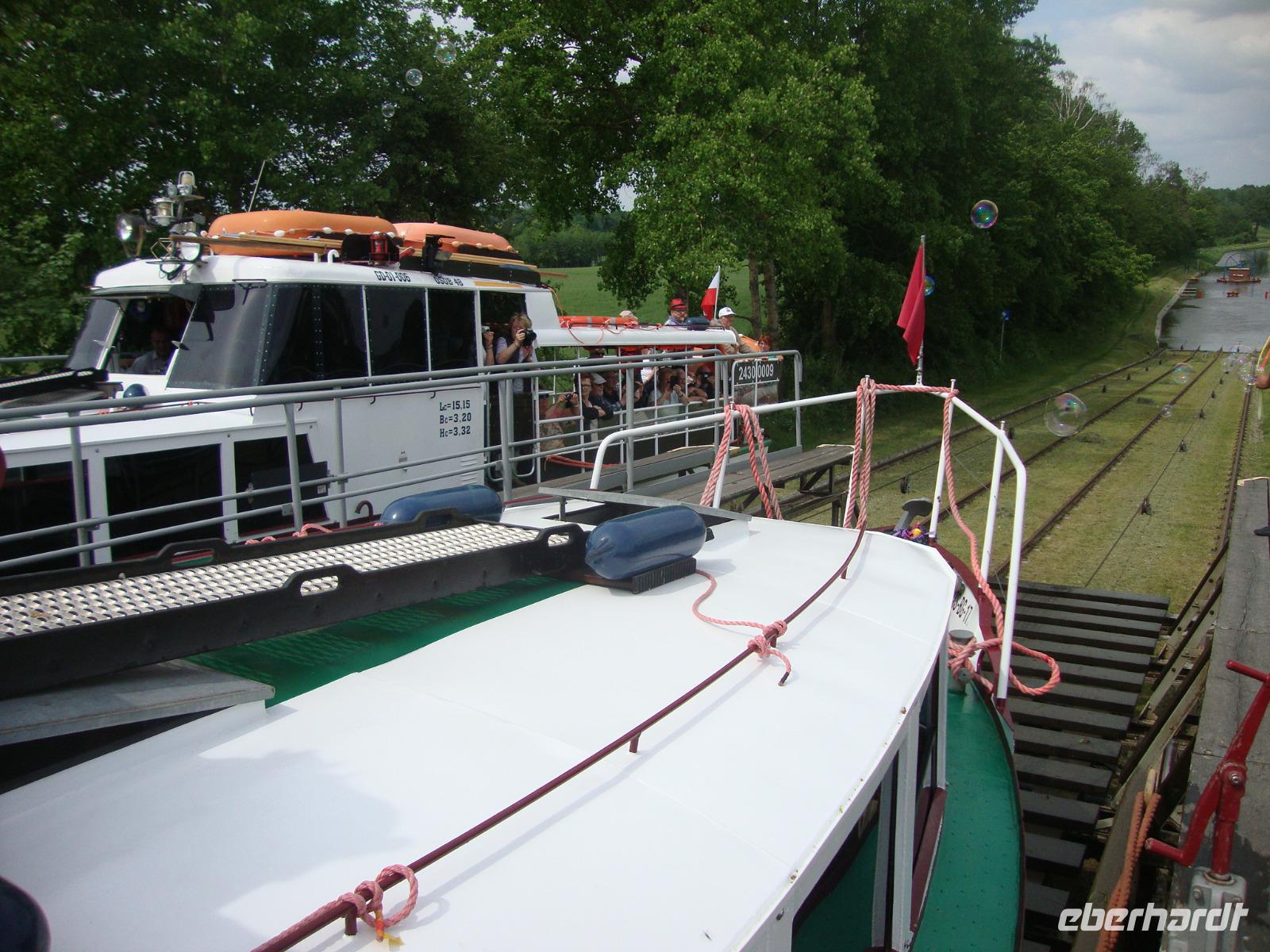 Nach dem Frühstück hies es Koffer einladen, denn unser Ziel war heute das Hotel "ToTu" in Sensburg (Magrowo). In Elbing (Elblag) steht die gotische Nikolauskirche mit ihrem 96 m hohen Glockenturm. Die Altstadt wurde ab 1990 unter Verwendung alter Bauzeichnungen historisch wieder aufgebaut. Dabei kamen auch optisch sehr gut wirkende Fachwerkimitationen zum Einsatz. Unser Fahrt führte uns anschließend zum Oberländischen Kanal Seit 1860 verbindet er Osterode, die Oberländischen Seen und Elbing mit dem Frischen Haff.Mit dem Schiff befuhren wir den Kanal und auch über Land, wie man auf den Bildern sehen kann. Es war für alle ein besonderes Erlebnis, die knapp zwei Stunden vergingen wie im Flug. Danach setzten wir unsere Reise in die Masuren fort. Am Nachmittag erreichten wir Allenstein (Olsztyn), die Hauptstadt Ermland- Masurens, bewahrt Teile der alten Stadtmauer und das gotische Hohe Tor. Die Kirche St.-Jacobus mit ihrem schönen Netzgewölbe ist ein Werk der Backsteingotik. Durch Allenstein führt auch der Jacobsweg, den jährlich viele Pilger gehen. Nikolaus Kopernikus lebte viele Jahre hier. Während unseres kurzweiligen Rundgangs in der Stadt, wo geschäftiges Treiben herrschte, machte uns Piotr auf viele kleine Details aufmerksam. Am Abend trafen wir in unserem Hotel To Tu",in Sensburg (Magrowo) ein und wurden herzlich empfangen. Schnell waren die Zimmer bezogen und wir konnten uns am abendlichen Büffet stärken. Die nächsten zwei Tage verbrachten wir in den Masuren.