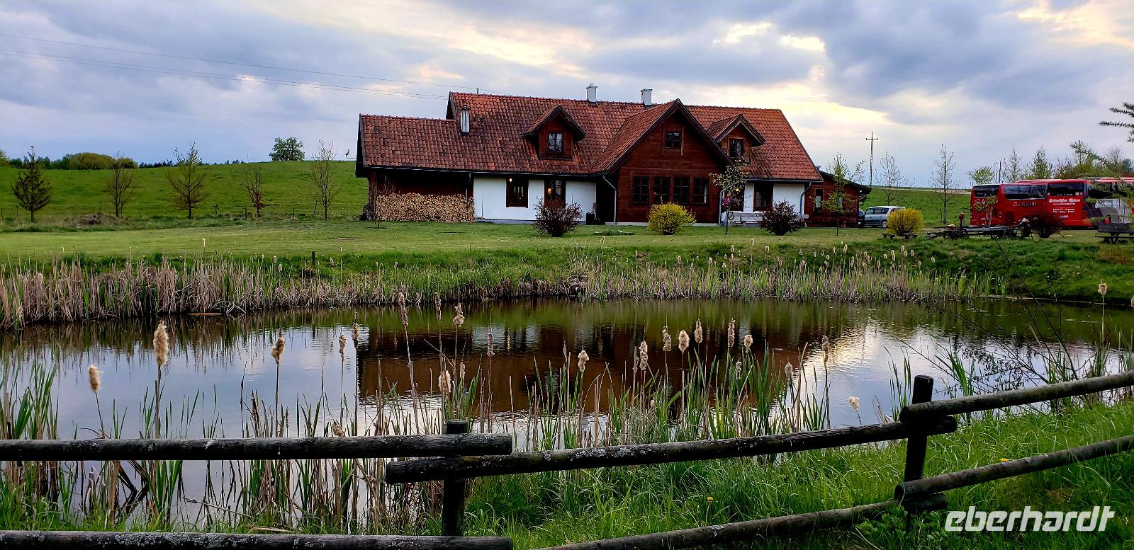 Da die Gruppe ja schon komplett ist, müssen wir nicht nochmal ins Hotel zurück und fahren direkt zur Bauernhochzeit, die wieder Teil des regulären Programmes ist. Quer durch die Johannisburger Heide kommen uns mitten im Wald zwei Kutschen mit Pferden entgegen. Nach grossem Hallo steigen wir auf die Kutschen um zu einer schönen Fahrt durch den Wald. Der Busfahrer nimmt die Abkürzung. Wir treffen am Bauernhof von Eulalia ein, wo sie mit ihrer Familie seit vielen Jahren einen Gnadenhof für verschiedene Tierarten betreibt. Jetzt wird ein Paar gesucht aus unserer Gruppe, die ein zweites Mal verheiratet werden! Mit Blumenkranz geschmückt, trägt der Bräutigam seine Braut über die Schwelle und es beginnt ein fröhliches Fest mit Tanz und Spielen und natürlich leckeren polnischen Spezialitäten. Später als geplant begeben wir uns auf die Heimfahrt zum Hotel Totu, der Abschied von diesem idyllischen Ort und der netten Familie fällt schwer. Auf dem Rückweg spaziert eine Elchkuh vor unserer Nase über die Strasse! Kann der Tag schöner enden?