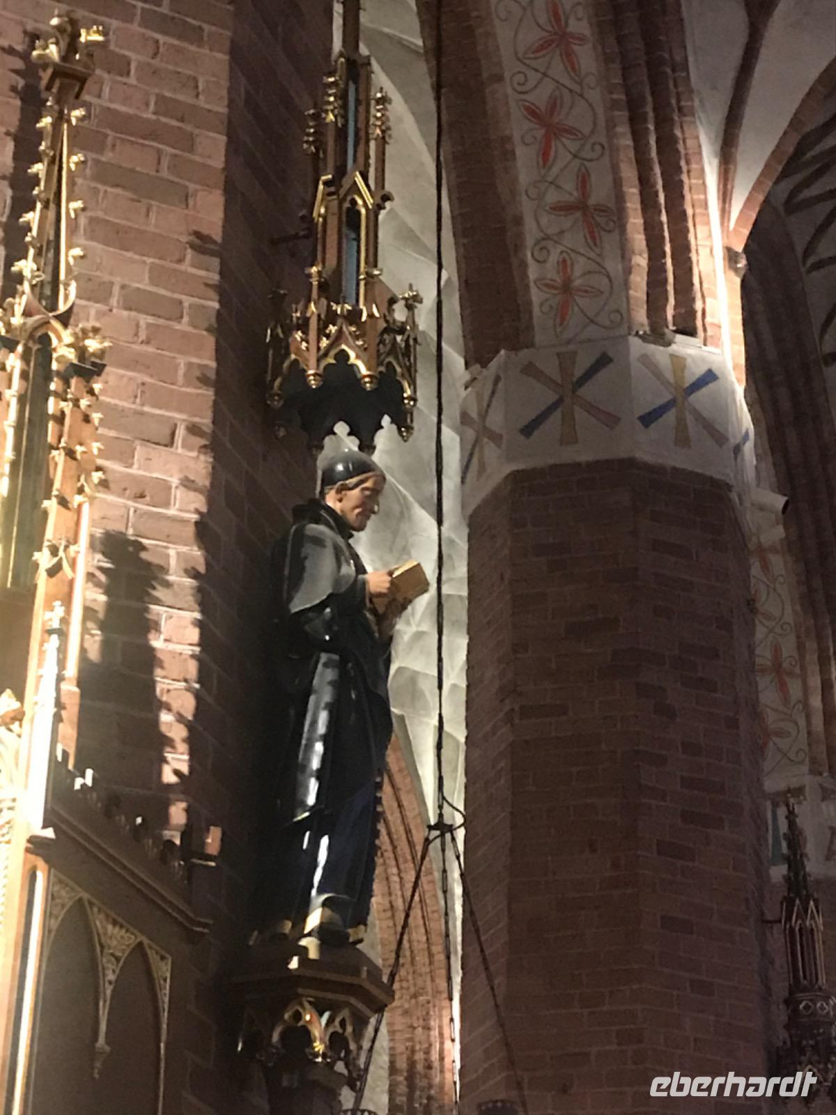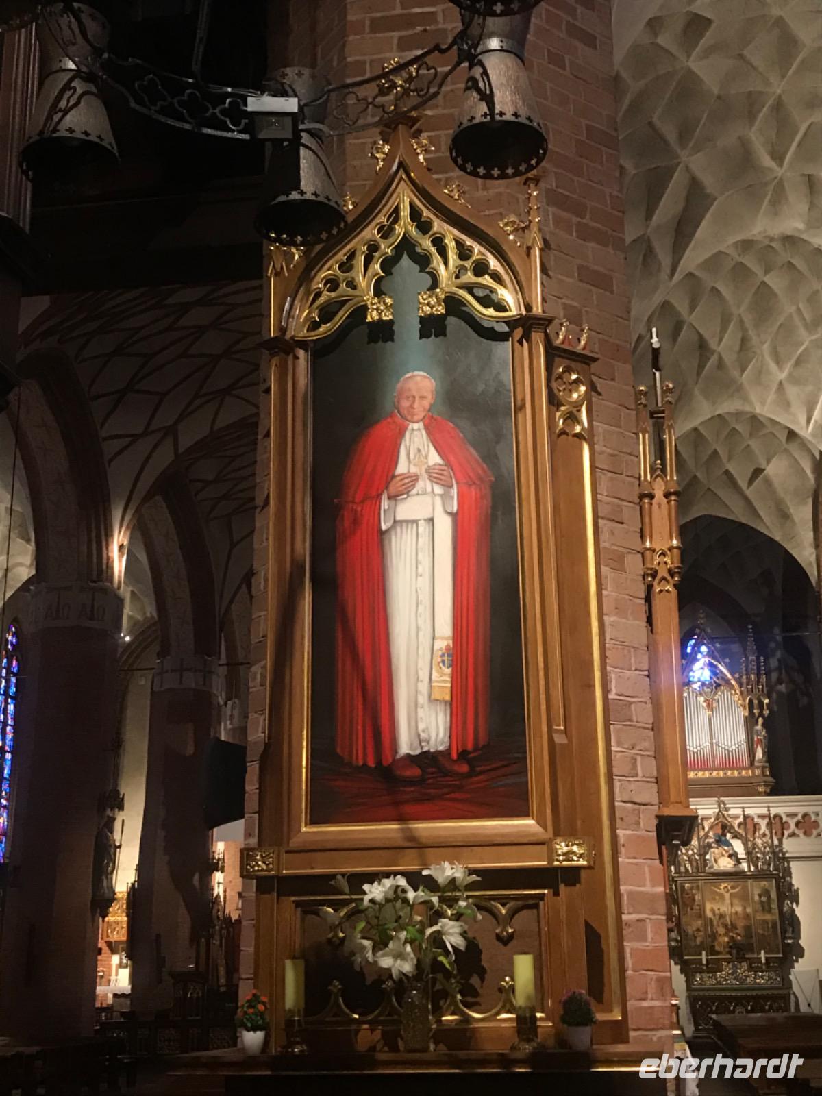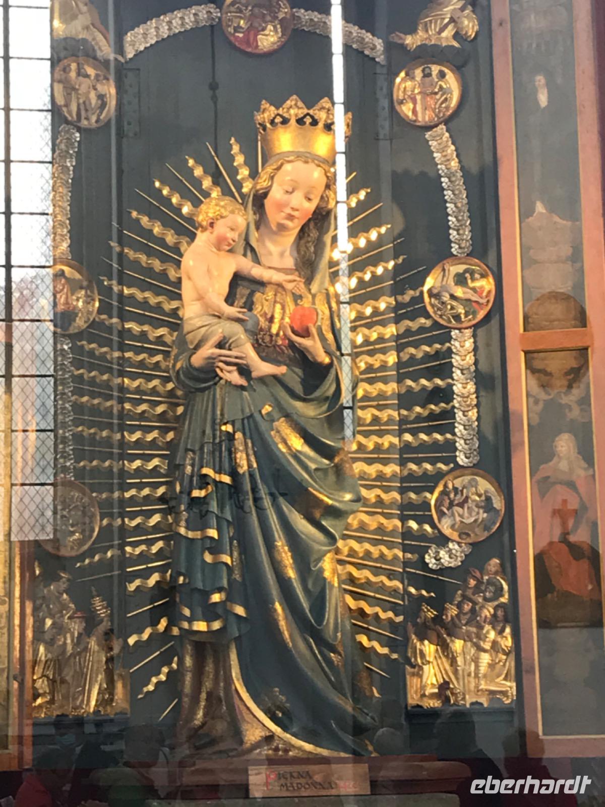 Früh brachen wir auf, um für drei Stunden zu Fuß die Stadt zu erkunden. Unser örtlicher Reiseleiter, ein ehemaliger Lehrer für Deutsch und Geschichte, brachte und nicht nur die Stadt und seine Gebäude nah, sondern erklärte uns auch viele politische Zusammenhänge der Vergangenheit. Gleich zu Beginn konnten wir die weltberühmte Ansicht auf das Krantor von Danzig bewundern. Von der Größe her ist die Stadt mit Dresden zu vergleichen, 500.000 Einwohner hat die Stadt und gilt noch heute als das Zentrum des weltweiten Bernsteinhandels. Uns haben die farbigen Häuser des Langen Marktes und der Langen Gasse, der Neptunbrunnen und das ehemalige Rathaus beeindruckt. Vielleicht der Höhepunkt war der Besuch der gotischen Marienkirche, die Basilika der Himmelfahrt der Allerheiligstein Jungfrau Maria. Diese stellt eine der größten Hallenkirchen weltweit dar und eine der größten Backsteinkirchen.