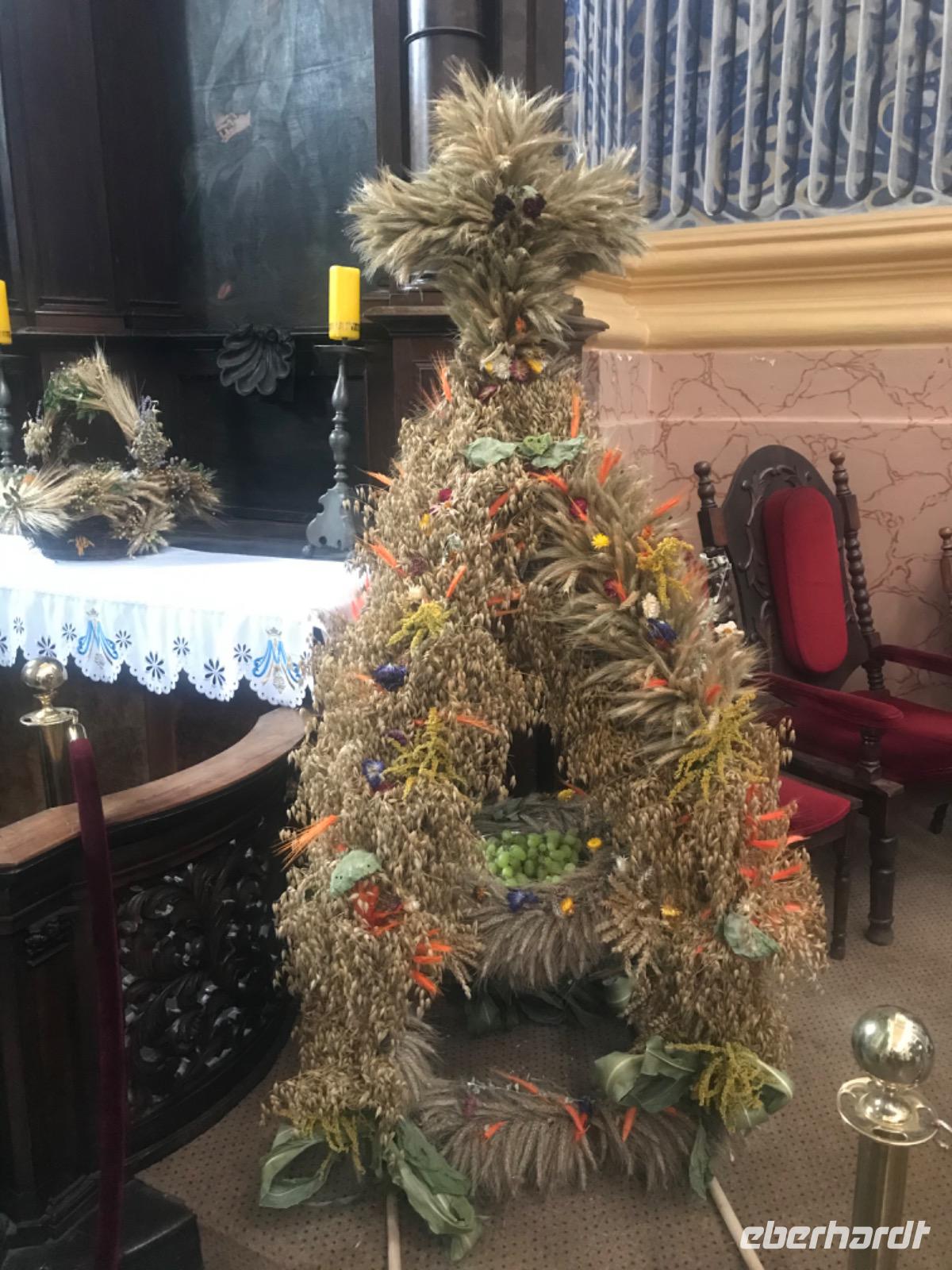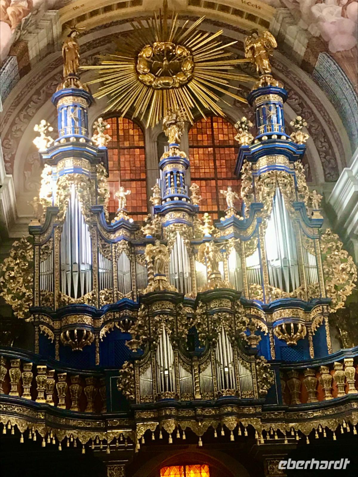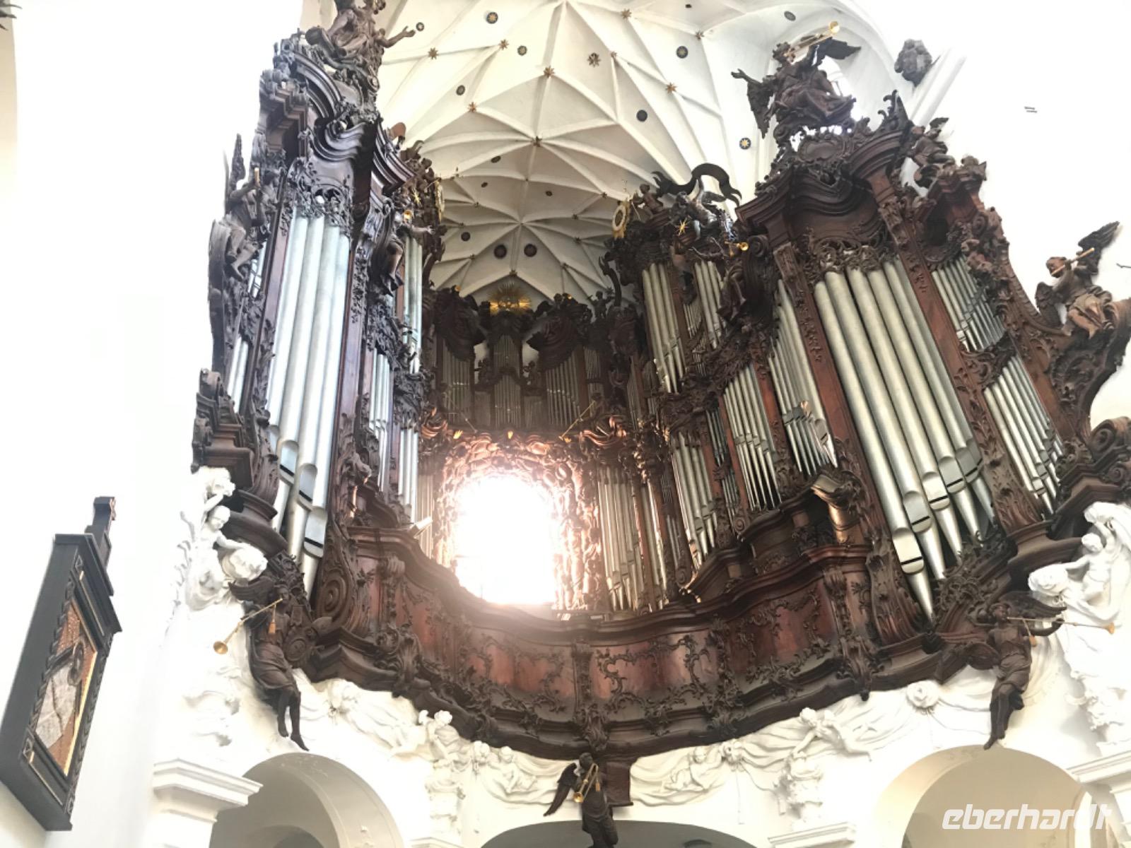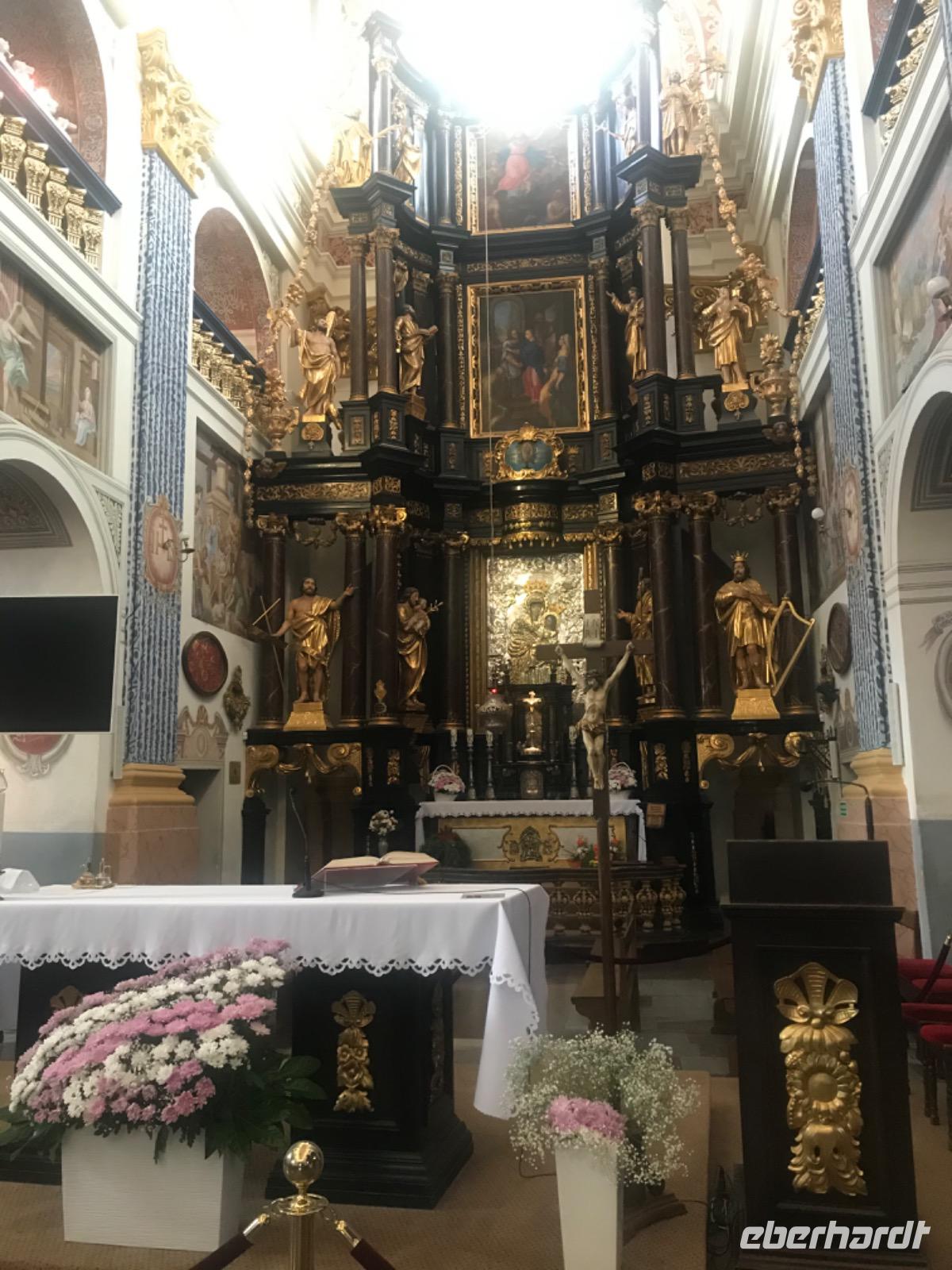 Es sollte der Tag mit dem am dichtesten gedrängten Terminablauf werden. Wir starteten früh Richtung Heilige Linde (Swieta Lipka) um als erstes die von Jesuiten erbaute bekannte Wallfahrtskirche zu besichtigen und eine beeindruckende Orgelpräzisierung zu erleben. Neben der Orgel ( viertausend Pfeifen, 42 Reguister) war der Hochaltar und Deckenmalerei besonders imposant.