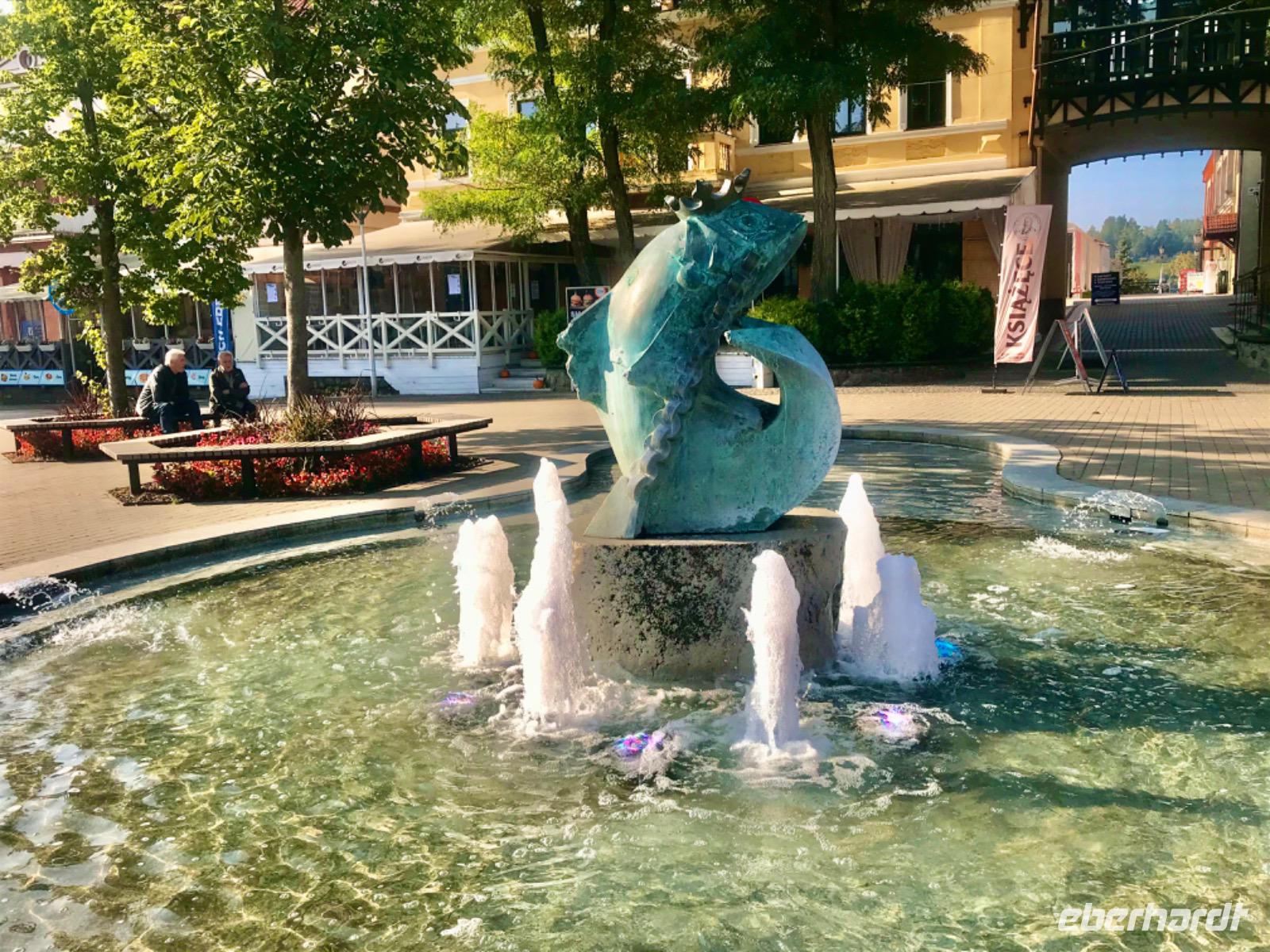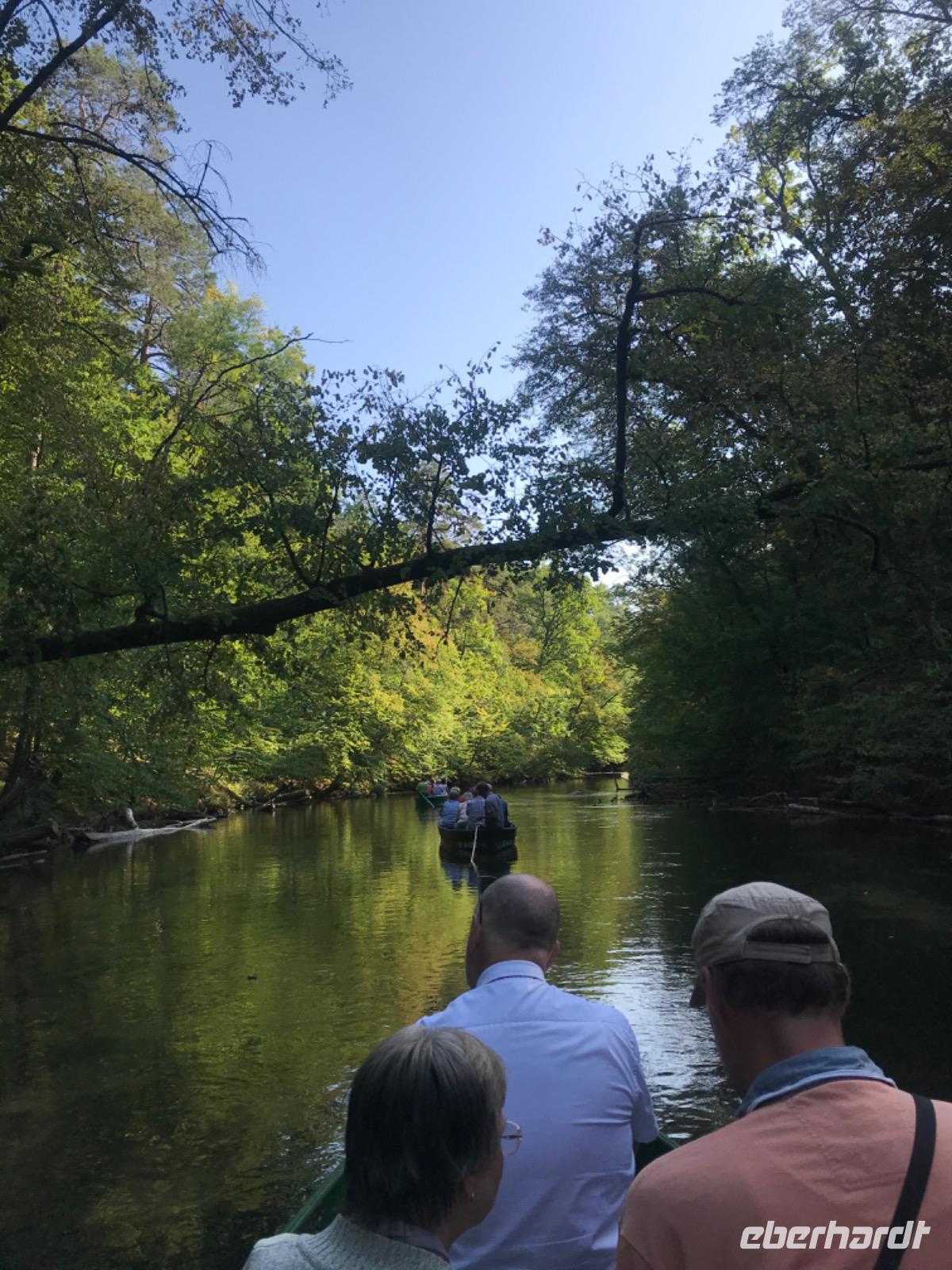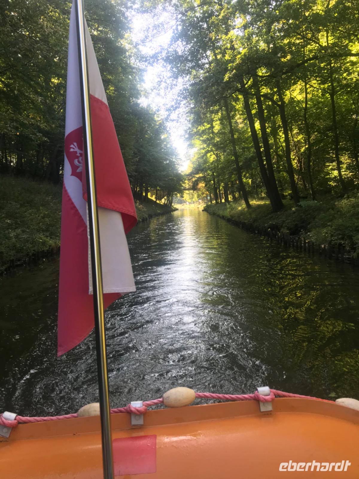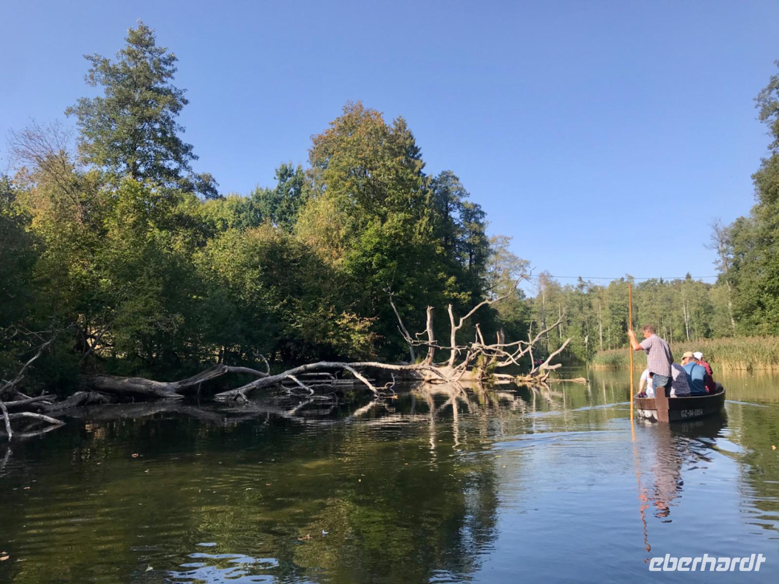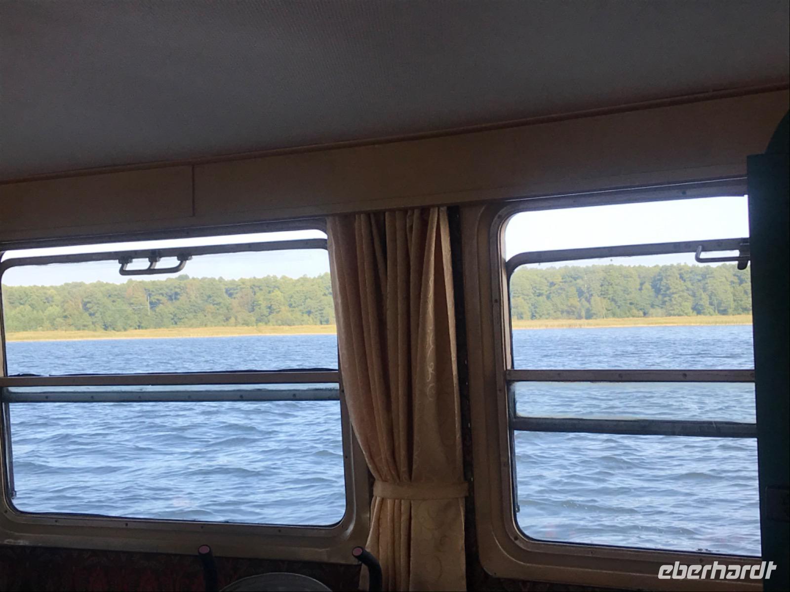 Gewählt werden konnte zwischen Freizeit oder Fahrt durch den südlichen Teil der Masuren. Letzteres wählten 100% der Gäste und so war wieder Robert, unser geübter Busfahrer, gefragt. Es ging durch die Johannisburger Heide, viele Seen reihen sich aneinander. Der größte See der Masuren, der Spirdingsee mit 114 qkm (gleichgroß wie die Müritz), ist unser Ziel. Nach einem kurzen Stadtrundgang ging es aufs Schiff und wir schipperten 1 1/2 h über den See. Weiter ging es zum Fluß Kruttinna um eine Fahrt mit einem Staakenboot zu unternehmen. Vorher stand Fischessen im Restaurant Mazurska auf der Tagesordnung. Hier hatte man den Eindruck, der Tourismus ist wieder auf Normalmaß angekommen. Das Restaurant war fast bis auf den letzten Platz belegt und die Boote schienen auch alle grad gebucht gewesen zu sein. Aber Wartezeiten gab es nicht. Unser Bootsführer erzählte uns viel über den Fluß und seiner Bewohner. Bemerkenswert war die Revierbehauptung eines Schwanenpapas gegen die heranwachsenden halbstarken Jungschwäne.