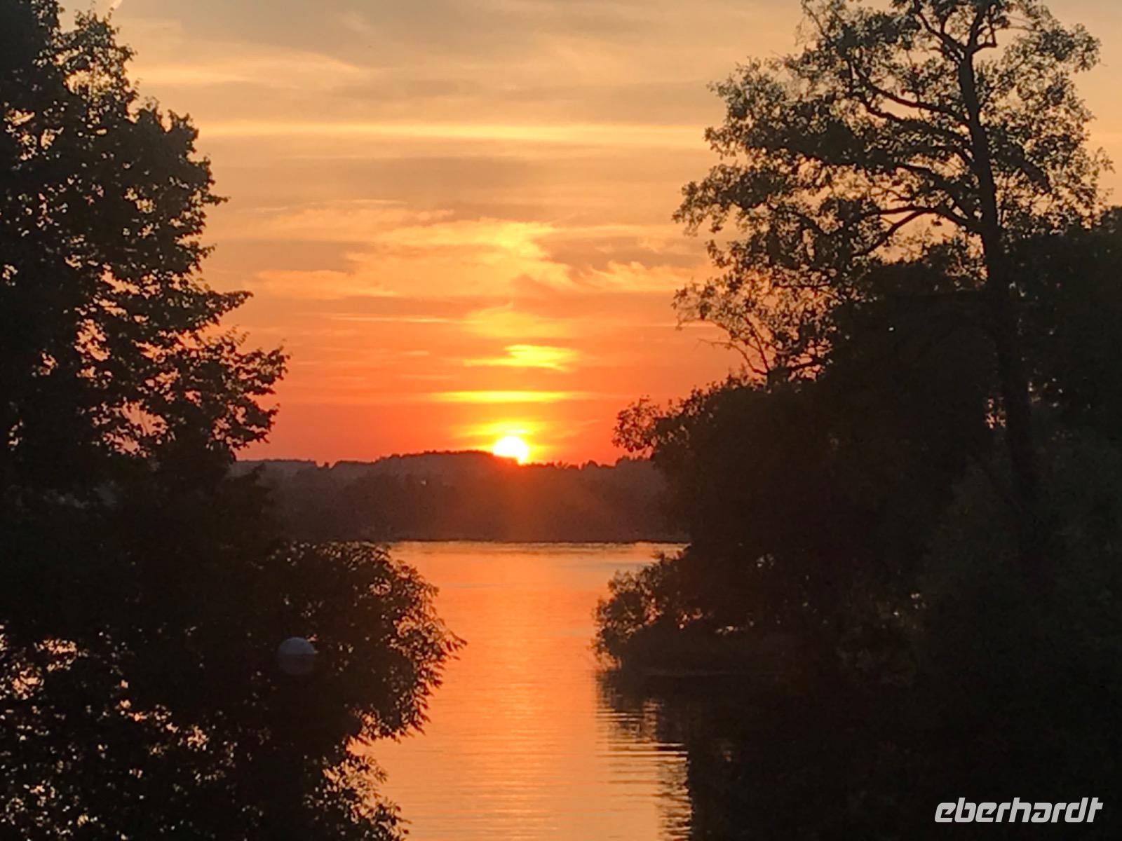 Am Hotel angekommen, erfreute sich jeder am Seeblick vom Balkon seines Zimmers und später am wunderschönen Sonnenuntergang über dem See. Zuvor waren die Mutigsten von uns noch bei 18 Grad(?) im See schwimmen. Auch machten wir noch Bekanntschaft mit Bärenfang. Dies ist ein Wodka mit Honignote und geht auf einen gefährlichen Bären zurück, der sich nicht fangen lassen wollte. So kam man auf die Idee, Honig mit Wodka zu mischen. Der Bär ging in diese "Falle", schleckte den Honig, schlief ein und wurde gefangen.