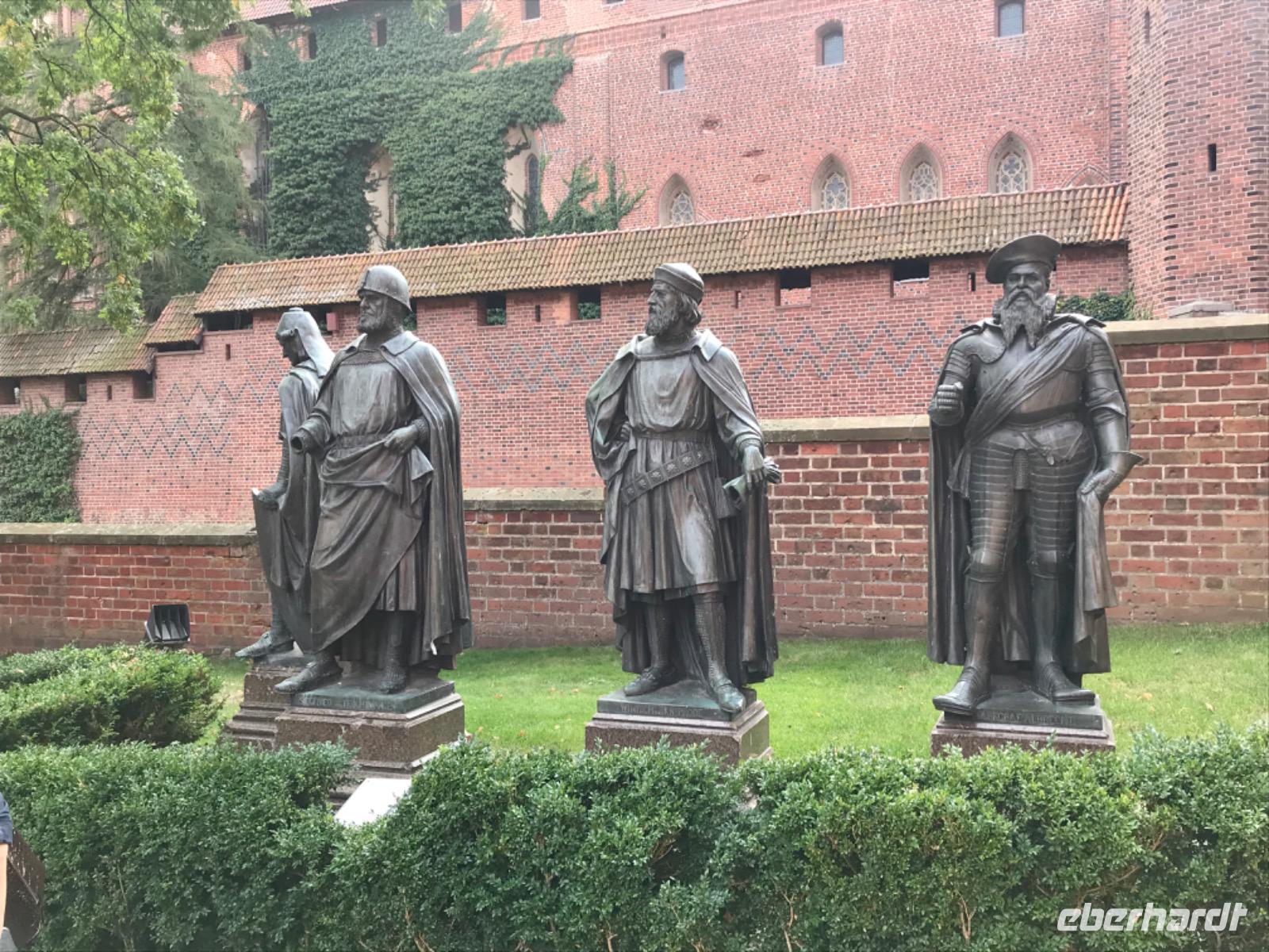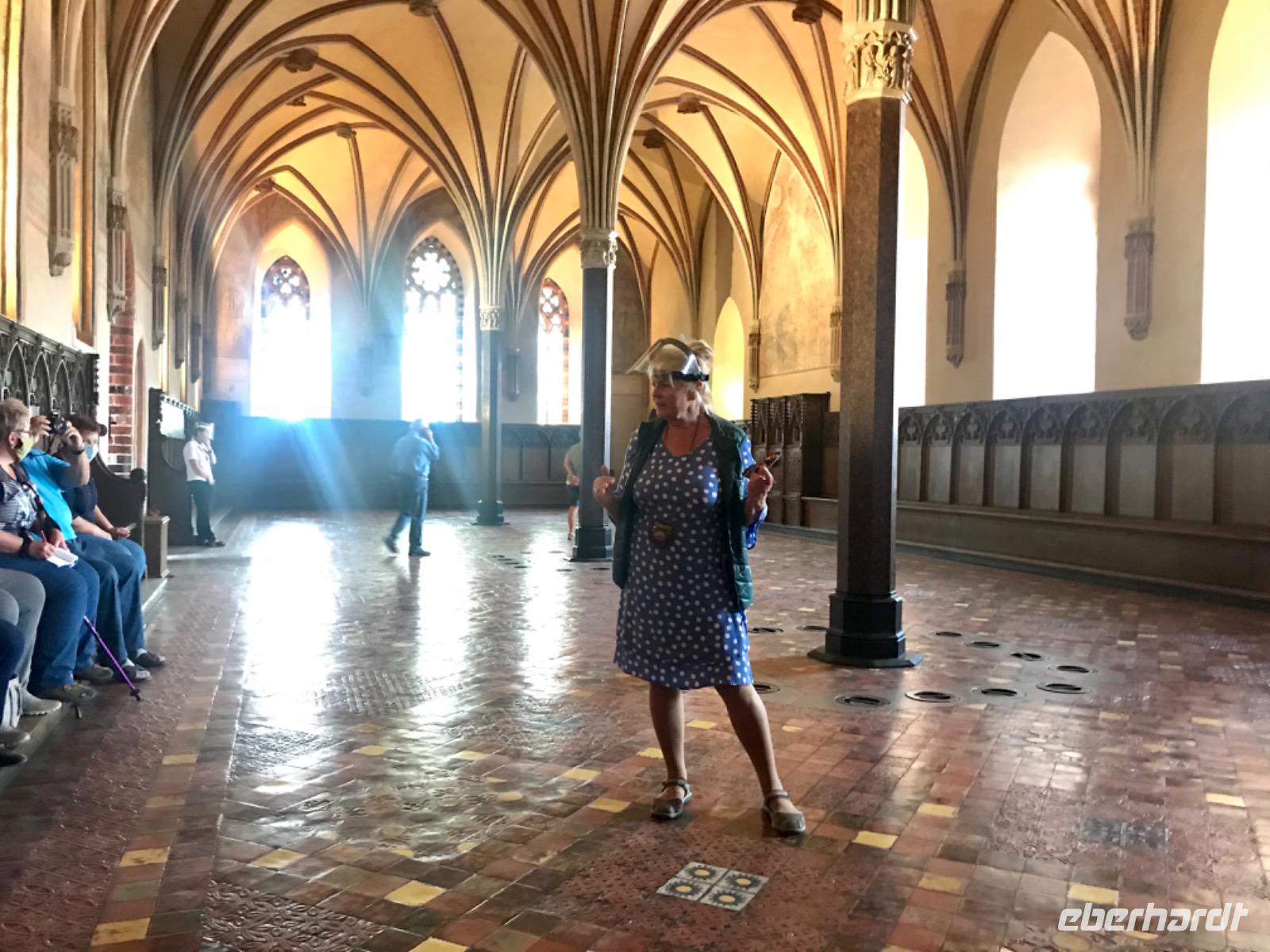 Zuvor wurde es nicht versäumt, ein gemeinsames Foto (siehe Fotogalerie) mit Thomas Birk, dem mit 217 cm längstem Sachsen zu machen. Unser heutiges Ziel war die Marienburg, der ehemaligen Herberge des Deutschen Ritterordens. Heute gehört die Burg zum UNESCO Weltkulturerbe. In zwei Stunden wurden wir von einer sehr guten Fremdenführerin durch die Vorburg, den Innenhof und verschiedenste Innenräumen und natürlich die Marienkirche geführt. Besonders beeindruckt hat die Küche, das Heizsystem und das Refektorium im Hochschloss. Ursprünglich war die Burg im Baustiel der Backsteingotik erbaut und später in Backsteinrenaissance erweitert. Die Burg sollte ein ausgeklügeltes Mauer - Graben System schützen, welches aus einem teilweise vierfachen Mauerring besteht.