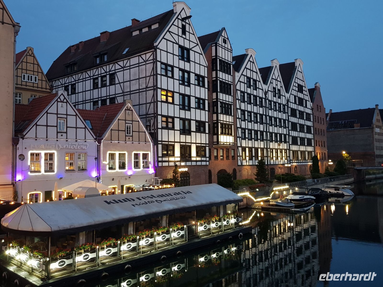 Unser Hotel "Novotel Gdansk City" liegt in der Speicherstadt inmitten der Altstadt zwischen neuer (Nowa) und alter (Stara) Motlawa. Nur ein paar Schritte und wir sind mittendrin im alten Zentrum. Bis zum Abendessen blieb noch genug Zeit für erste Entdeckungen und da es lange hell ist, kann man auch später das Flair der Stadt einfangen.