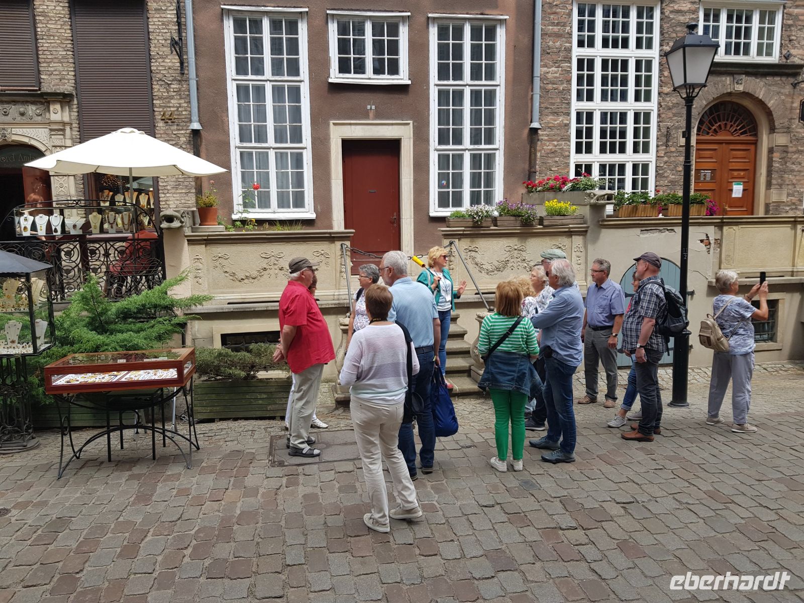 Nach einer Mittagspause begann die reichlich 2-stündige Führung durch die Marienburg, aufgrund von 30 Grad im Schatten ein wenig anstrengend. Die verlorenen Kalorien konnten dann auf der Fahrt nach Danzig wieder durch Ausruhen im Bus ausgeglichen werden. Wir waren alle zum 1. Mal richtig "breit", also geschafft, wahrscheinlich auch wegen der hohen Temperaturen.