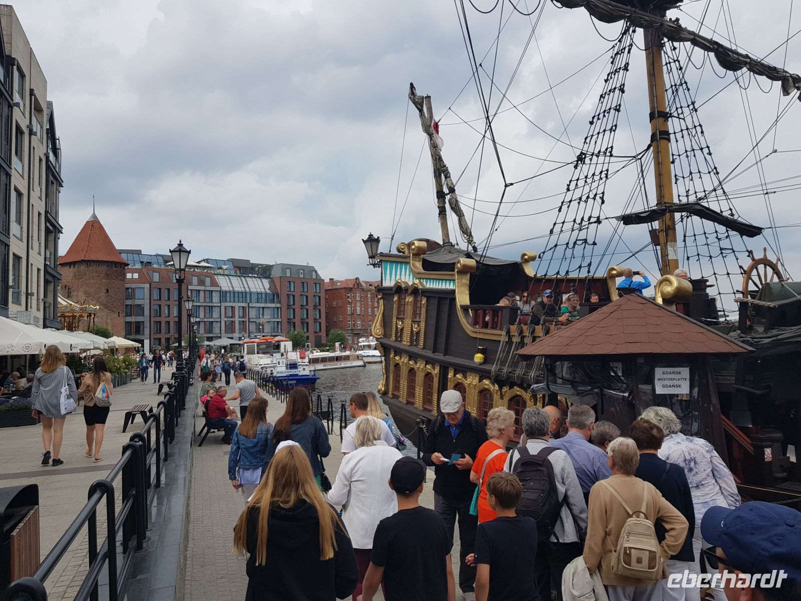 Es scheint ein schöner Tag zu werden und wer gestern Abend zu müde für erste Stadterkundungen war, hat jetzt die Gelegenheit dazu. Es ist Sonntag und das katholische Polen sucht die Kirchen auf. Deshalb findet unsere Stadtführung mit Bozena erst ab 12 Uhr statt. Die Geschichte der Hansestadt Danzig ist ebenso eine komplizierte Geschichte wie die des Landes, das durch ständige Teilungen geprägt ist.