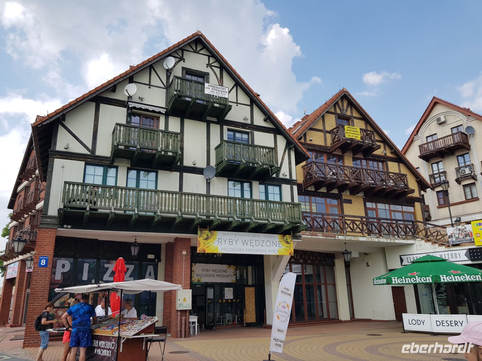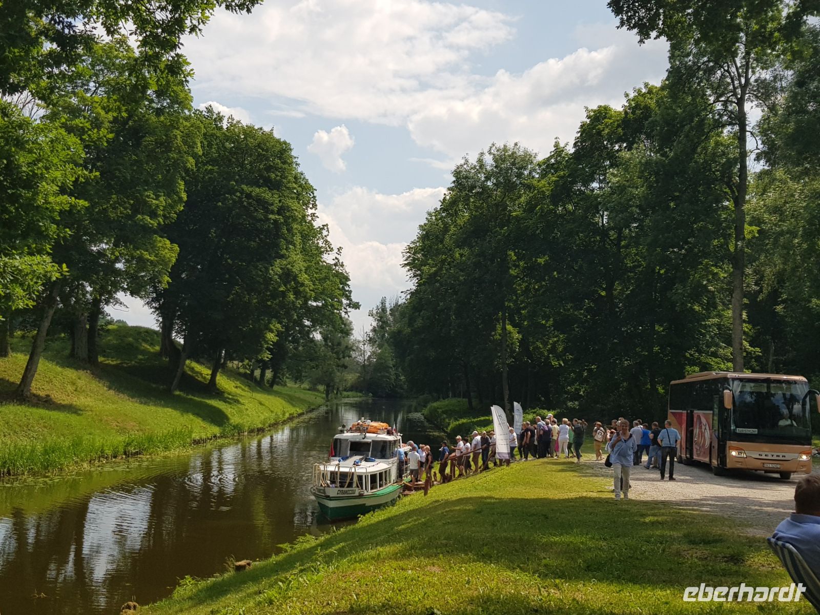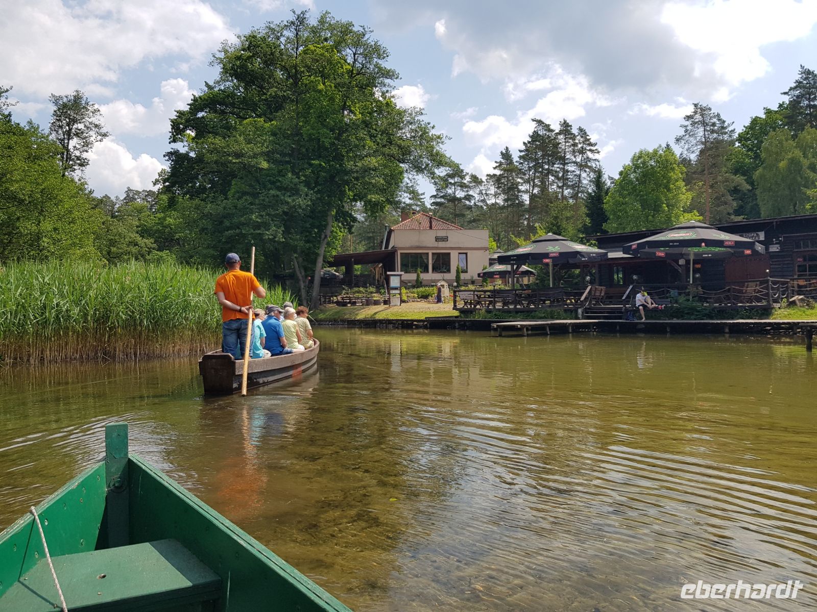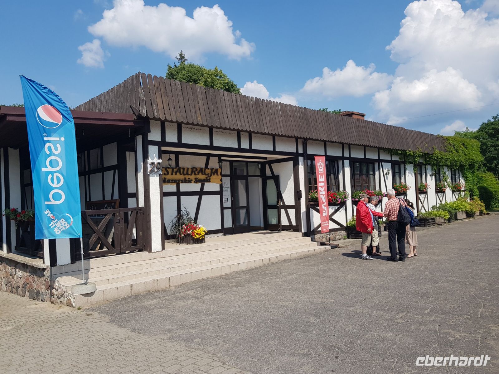 Wieder erwartet uns ein schöner Tag, den die meisten Gäste erst einmal mit einem kleinen Rundgang um das Hotel beginnen. Es passt alles: das Hotel "Panoramica Oskar" (genannt nach dem 1.Enkel) ist ein familiengeführtes Hotel und liegt direkt am Osz-See. Ein schöner Weg führt am See entlang bis zur Stadt Sensburg ( Mragowo). 10 Uhr starten wir mit unserer örtlichen Reiseleiterin Renata in die Johannisberger Heide. Als erstes Highlight steht eine Staakenbootfahrt auf der Krutinnen im Naturschutzgebiet auf dem Plan. Ein bisschen wie im Spreewald, Ruhe ( wir sind zu dieser Zeit - 11 Uhr fast allein unterwegs), viel Natur, Wasser und Wald. Als wir nach 1 Stunde aussteigen, warten schon Busse voller Menschen auf ihre Bootsfahrt. Wir atmen durch, die Zeit für unsere Bootsfahrt war optimal abgestimmt. Vor dem Mittagessen oder -snack machen wir noch einen kleinen Rundgang durch das kleine Dorf Krutinnen, besuchen das Storchenkrankenhaus, kaufen auf einem kleinen Markt die ersten Mitbringsel: Bernsteinschmuck, Keramik, Honig... Als nächstes fahren wir in das kleine Städtchen Nikolaiken, wieder ein Ort direkt am See gelegen, der mit einem hübschen Stadtkern und einen schönen Hafen besticht. Hier verweilen wir, es gibt Eis und andere Leckereien.