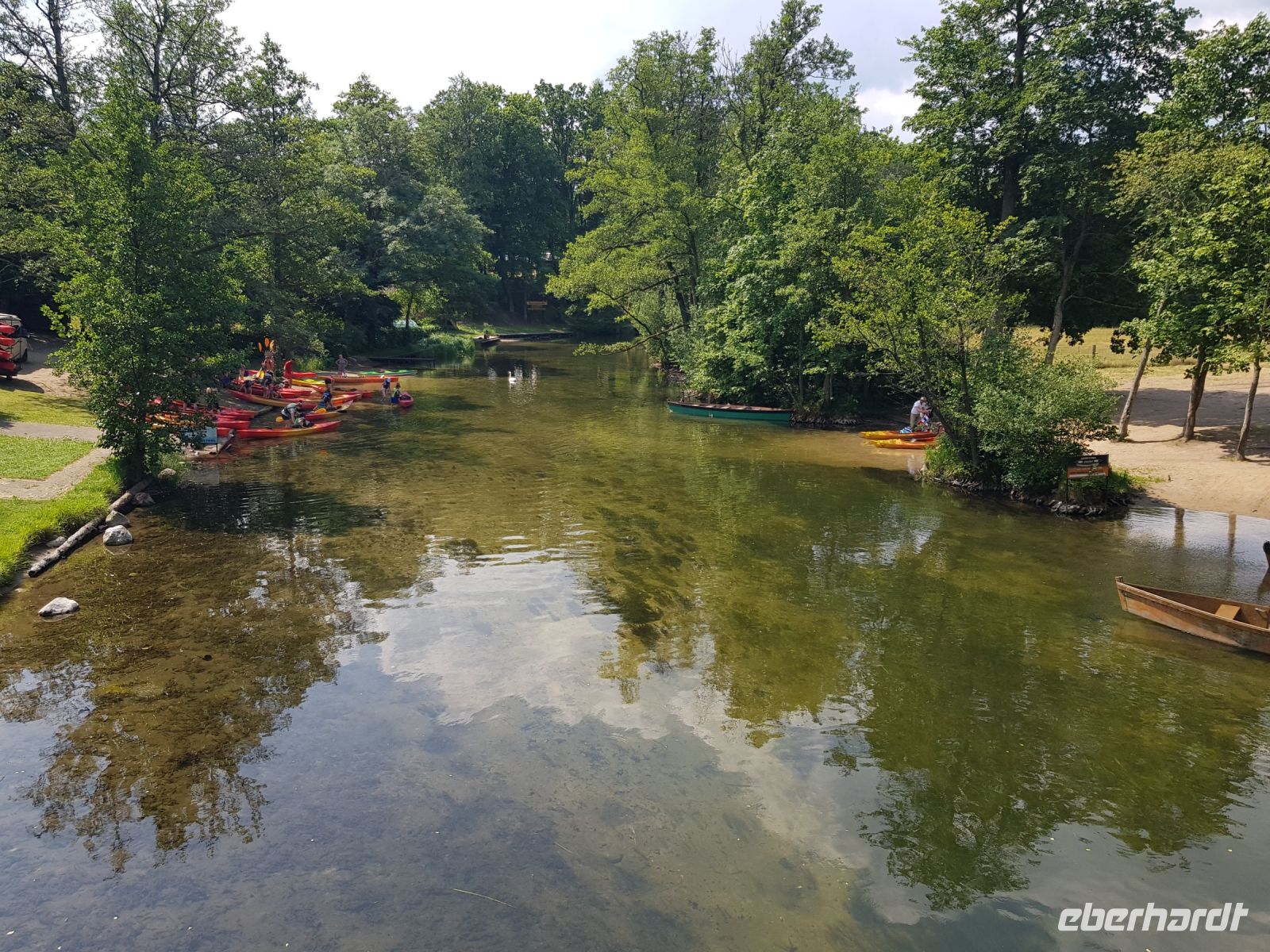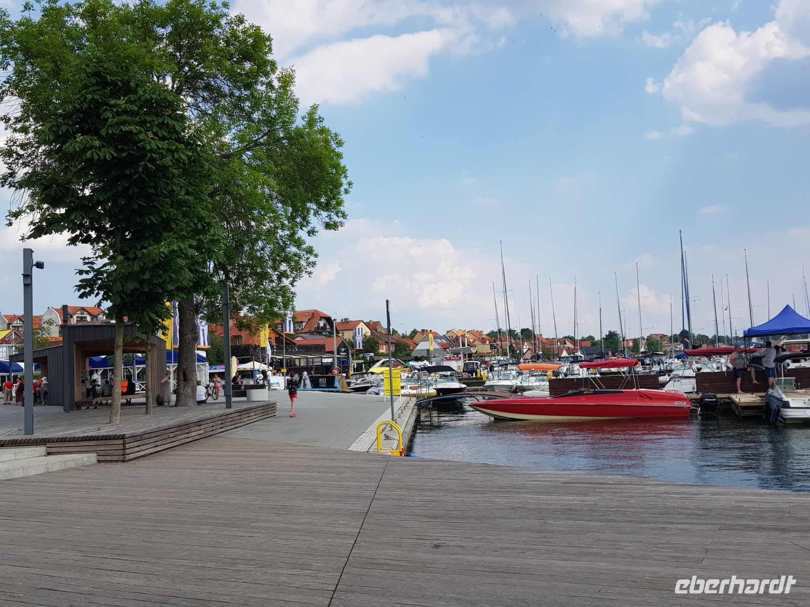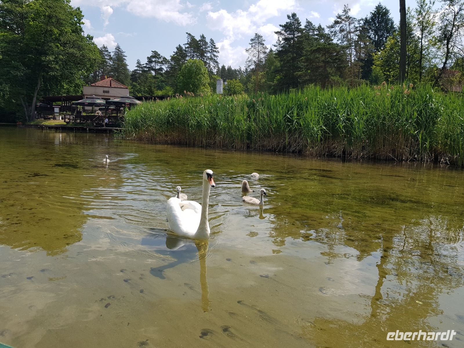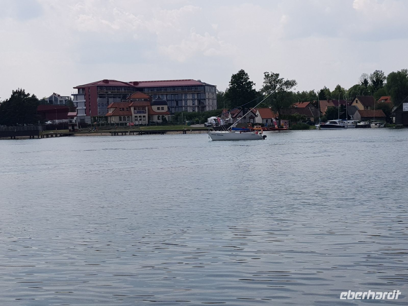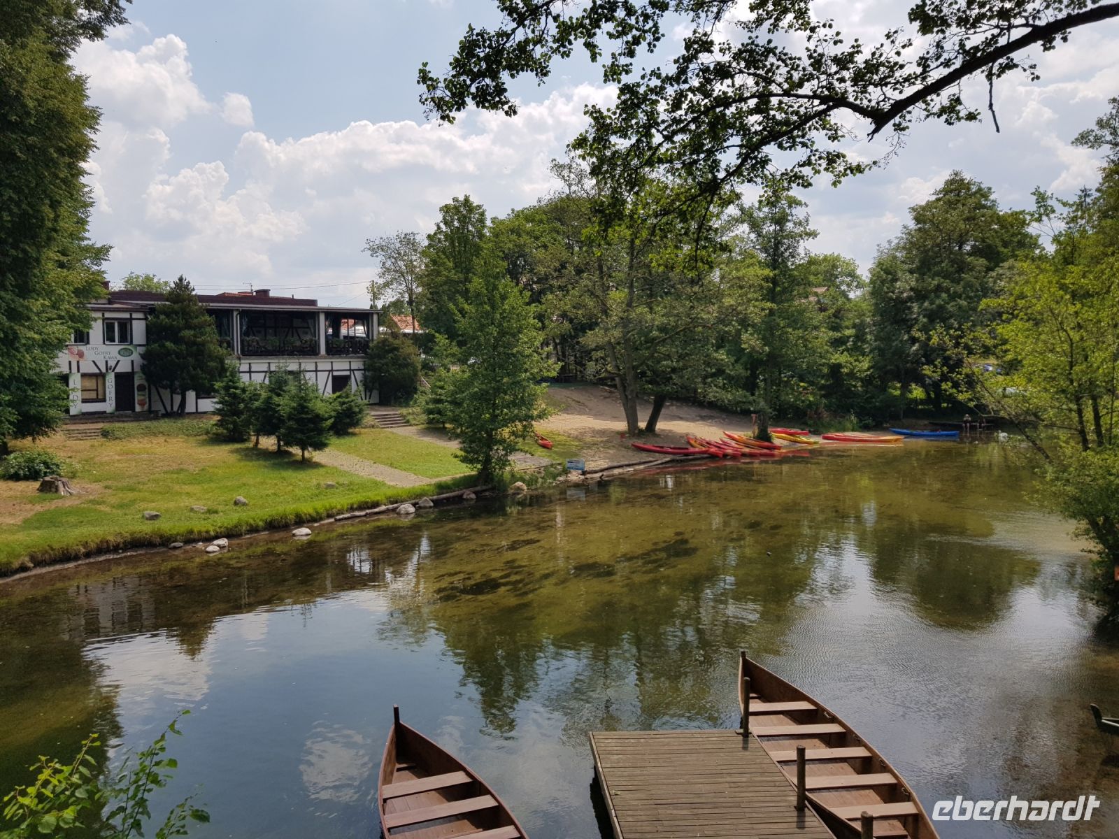 Wieder erwartet uns ein schöner Tag, den die meisten Gäste erst einmal mit einem kleinen Rundgang um das Hotel beginnen. Es passt alles: das Hotel "Panoramica Oskar" (genannt nach dem 1.Enkel) ist ein familiengeführtes Hotel und liegt direkt am Osz-See. Ein schöner Weg führt am See entlang bis zur Stadt Sensburg ( Mragowo). 10 Uhr starten wir mit unserer örtlichen Reiseleiterin Renata in die Johannisberger Heide. Als erstes Highlight steht eine Staakenbootfahrt auf der Krutinnen im Naturschutzgebiet auf dem Plan. Ein bisschen wie im Spreewald, Ruhe ( wir sind zu dieser Zeit - 11 Uhr fast allein unterwegs), viel Natur, Wasser und Wald. Als wir nach 1 Stunde aussteigen, warten schon Busse voller Menschen auf ihre Bootsfahrt. Wir atmen durch, die Zeit für unsere Bootsfahrt war optimal abgestimmt. Vor dem Mittagessen oder -snack machen wir noch einen kleinen Rundgang durch das kleine Dorf Krutinnen, besuchen das Storchenkrankenhaus, kaufen auf einem kleinen Markt die ersten Mitbringsel: Bernsteinschmuck, Keramik, Honig... Als nächstes fahren wir in das kleine Städtchen Nikolaiken, wieder ein Ort direkt am See gelegen, der mit einem hübschen Stadtkern und einen schönen Hafen besticht. Hier verweilen wir, es gibt Eis und andere Leckereien.
