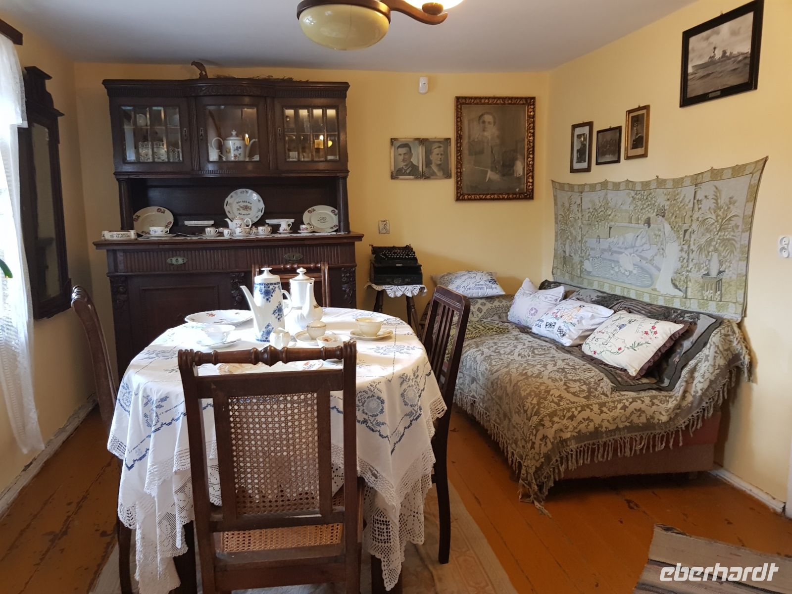 Einen anderen Teil der Geschichte erleben wir im Ostpreussenmuseum bei der Familie von Christel bei Kaffe,Tee und frischgebackenen Kuchen. Es ist die Geschichte ihres Ur- und Grossvaters, die ihren Hof nicht aufgeben wollten, als alle anderen Deutschen kurz vor Kriegsende flüchteten. Sie sind geblieben und haben sich eine Existenz u.a. mit der Vermietung von Ferienwohnungen aufgebaut.