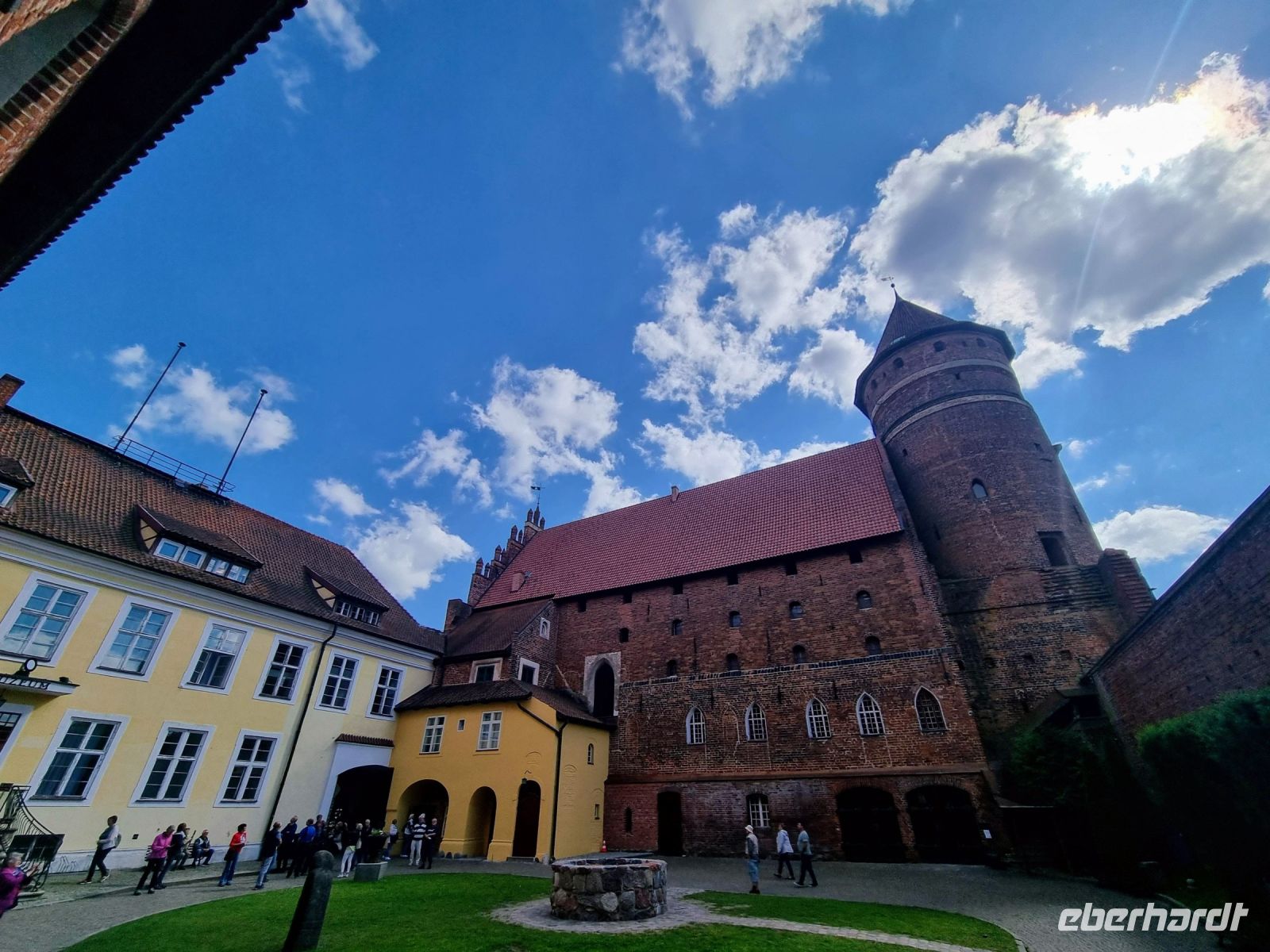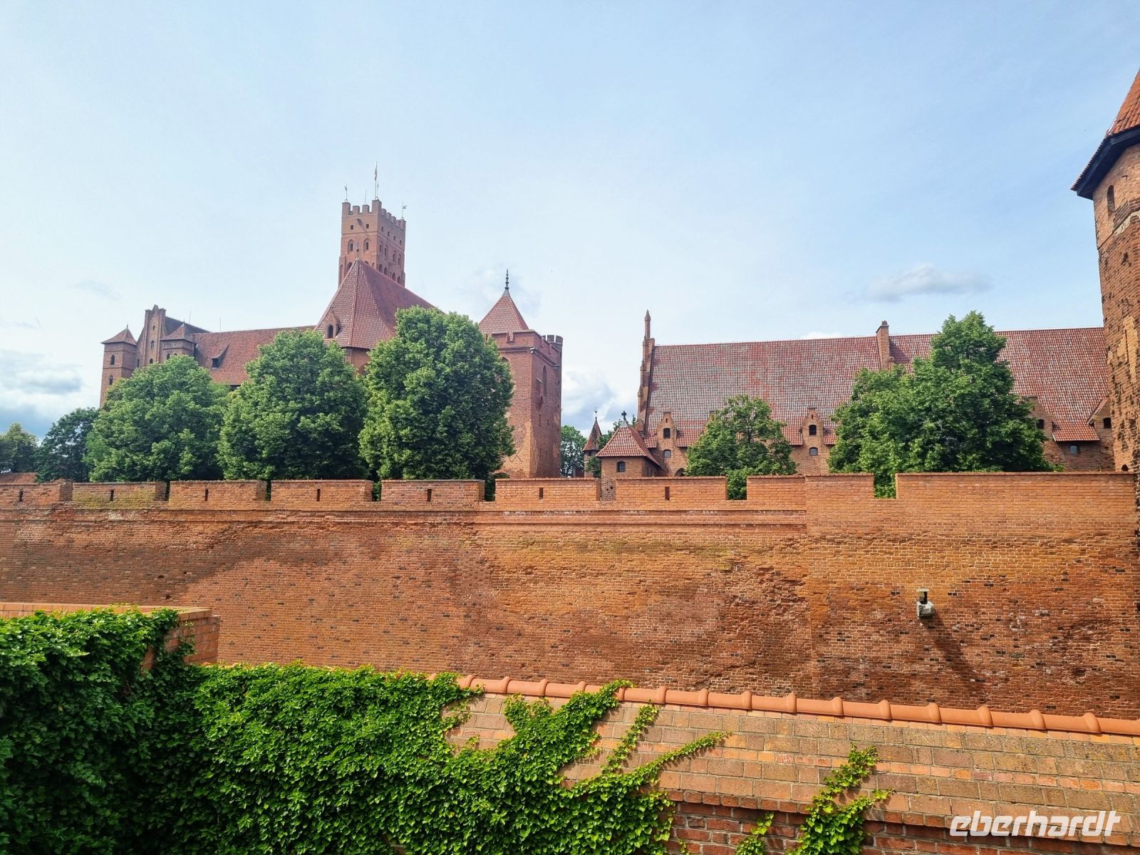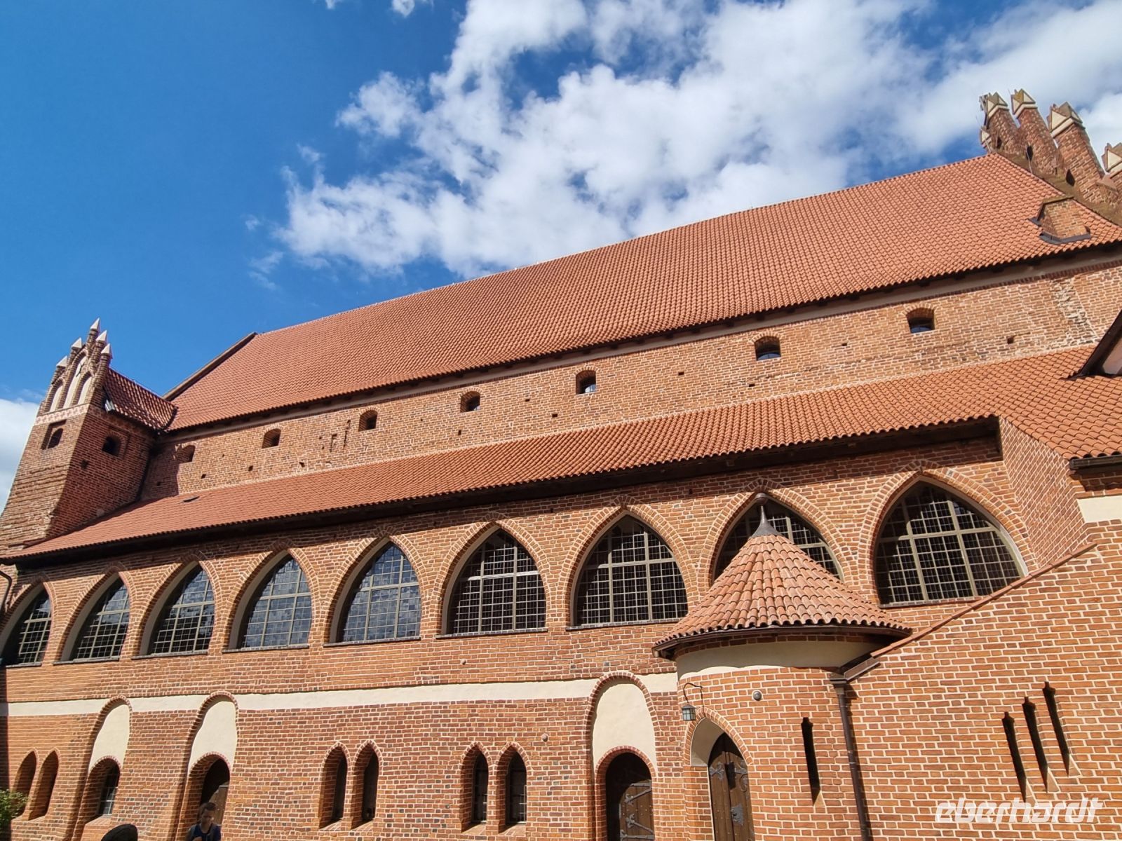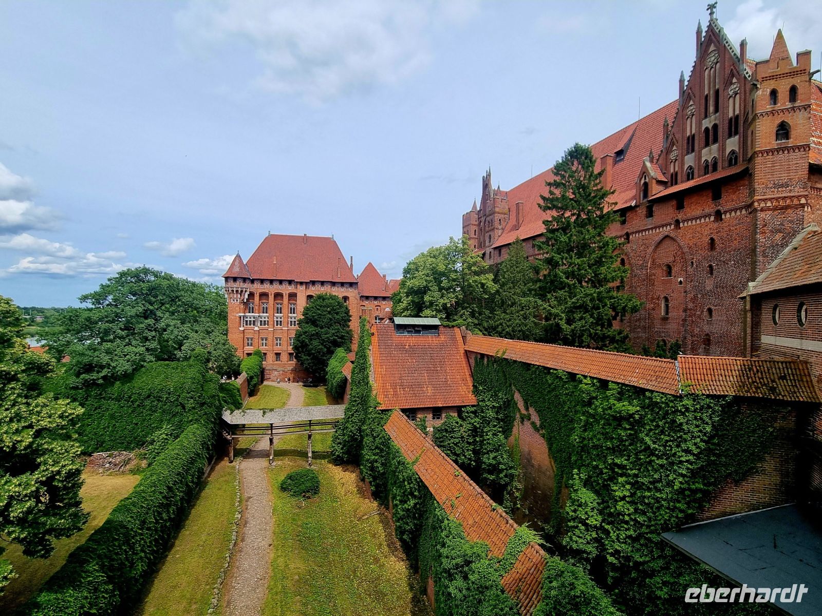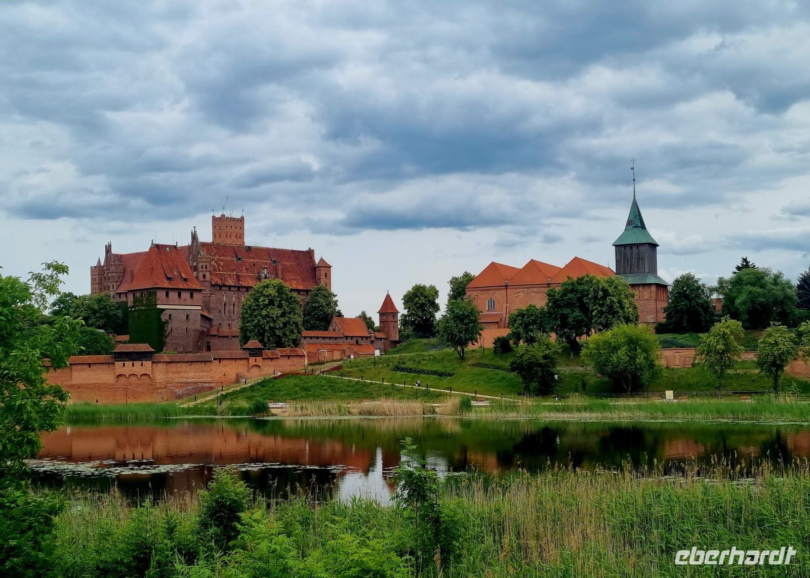 Bei schönstem Sonnenschein checken wir nach dem Frühstück aus dem Hotel in Sensburg aus und machen uns auf den Weg um die 250 km nach Malbork in Angriff zu nehmen. Hier wollen wir die mächtige Ordensburg der Kreuzritter an der Nogat besichtigen. Die monumentale Festung mit Vorburg, Mittelschloss und Hochburg beherrscht das Stadtbild. Die imposante Anlage aus rotem Backstein gilt heute als die größte mittelalterliche Festung in Europa, gesichert durch mächtige Wallanlagen. Wegen zu erwartender Staus geht es 30 min früher los. Die Fahrt nutze ich, um das Wissen der Mitreisenden abzufragen, das Quiz hatte durchaus einige anspruchsvolle Fragen , aber 5 Mitspieler hatten es ins Stechen geschafft. Belohnt wurde am Ende Frau B. mit einem leckeren polnischen Pralinenkasten. So haben wir am Ende ein sehr gutes Timing , um 12.30 Uhr sind wir auf dem Parkplatz der Marienburg. Thomas sorgt fürs leibliche wohl und ich mache mich auf den Weg, um die modernen Audioguides zu besorgen , mit der jeder Gast seine ganz individuelle Tour durch die Burg genießen kann. Ich komme gerade rechtzeitig zum Bus um auch noch eine Köstlichkeit der polnischen Pralinen zu genießen. Im Laufe der Jahrhunderte wurde die Marienburg mehrmals zerstört und geplündert, aber immer wieder aufgebaut und vergrößert. Über 130 Jahre war die Burg Sitz der Hochmeister des Deutschen Ordens. Dieses Meisterwerk der spätgotischen Baukunst zählt seit 1997 zum UNESCO-Weltkulturerbe. Der Wiederaufbau der Burg nach dem Zweiten Weltkrieg hat zu einem tollen Ergebnis geführt und die Führung mit dem Audioguide , ist ein tolles Erlebnis und die wenigen skeptischen Stimmen am Anfang waren bei der Abfahrt ins Gegenteil gekehrt. Wir nutzen noch die Chance eines Fotostopps auf der anderen Uferseite des Nogats um die Marienburg in voller Größe zu fotografieren. Die Weiterfahrt nach Danzig gestaltet sich problemlos. Wir sind pünktlich in Danzig und die ersten Gäste reisen ab . Wir erfreuen uns am letzten gemeinsamen Abendessen , die Stimmung ist super und ich kann noch einige Tips geben, wo man das eine oder andere, zb. Goldwasser besorgen kann. Wir verabschieden dann noch weitere Gäste, die eine individuelle Abreise aus Danzig haben und nicht die Busheimreise antreten.