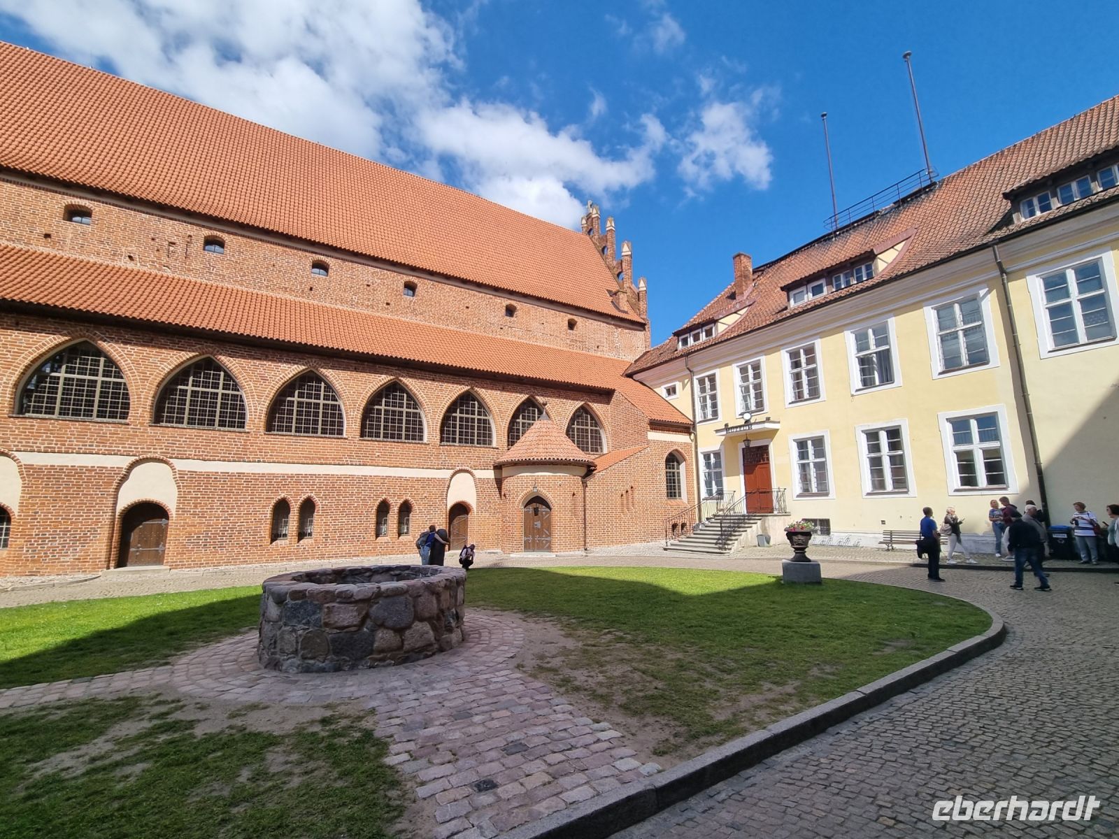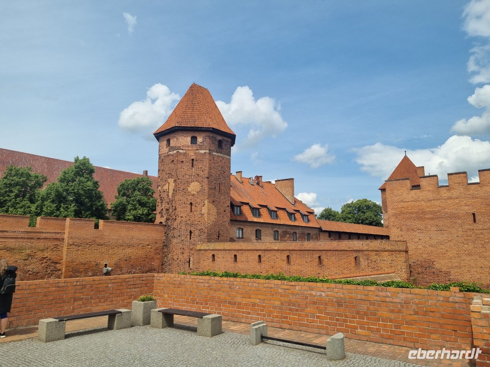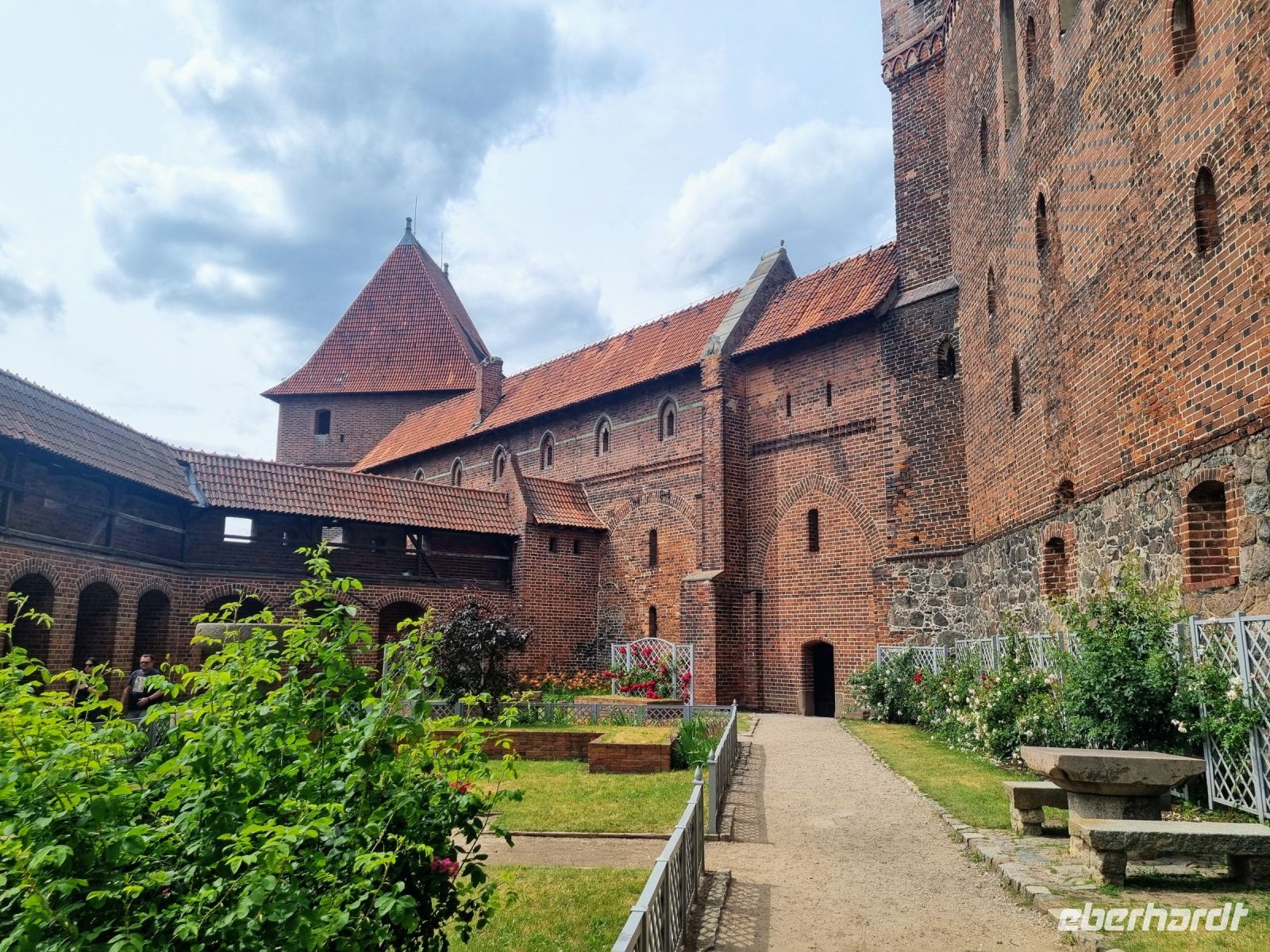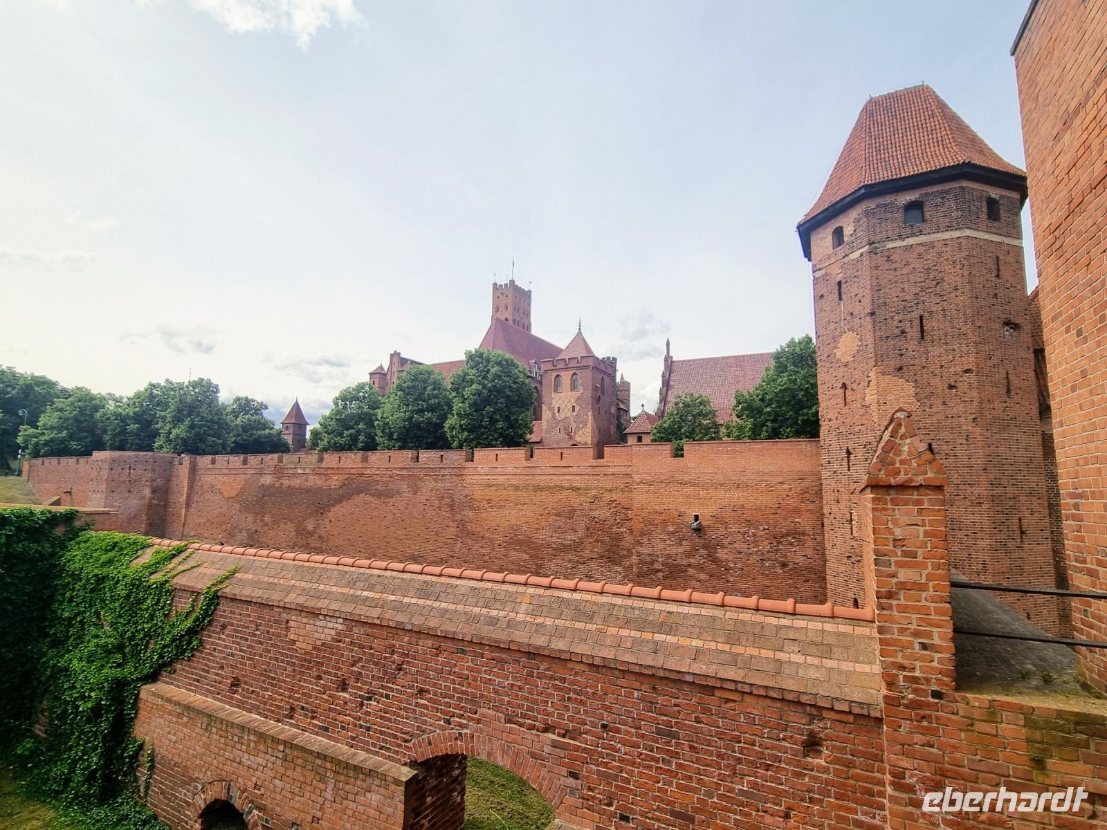 Bei schönstem Sonnenschein checken wir nach dem Frühstück aus dem Hotel in Sensburg aus und machen uns auf den Weg um die 250 km nach Malbork in Angriff zu nehmen. Hier wollen wir die mächtige Ordensburg der Kreuzritter an der Nogat besichtigen. Die monumentale Festung mit Vorburg, Mittelschloss und Hochburg beherrscht das Stadtbild. Die imposante Anlage aus rotem Backstein gilt heute als die größte mittelalterliche Festung in Europa, gesichert durch mächtige Wallanlagen. Wegen zu erwartender Staus geht es 30 min früher los. Die Fahrt nutze ich, um das Wissen der Mitreisenden abzufragen, das Quiz hatte durchaus einige anspruchsvolle Fragen , aber 5 Mitspieler hatten es ins Stechen geschafft. Belohnt wurde am Ende Frau B. mit einem leckeren polnischen Pralinenkasten. So haben wir am Ende ein sehr gutes Timing , um 12.30 Uhr sind wir auf dem Parkplatz der Marienburg. Thomas sorgt fürs leibliche wohl und ich mache mich auf den Weg, um die modernen Audioguides zu besorgen , mit der jeder Gast seine ganz individuelle Tour durch die Burg genießen kann. Ich komme gerade rechtzeitig zum Bus um auch noch eine Köstlichkeit der polnischen Pralinen zu genießen. Im Laufe der Jahrhunderte wurde die Marienburg mehrmals zerstört und geplündert, aber immer wieder aufgebaut und vergrößert. Über 130 Jahre war die Burg Sitz der Hochmeister des Deutschen Ordens. Dieses Meisterwerk der spätgotischen Baukunst zählt seit 1997 zum UNESCO-Weltkulturerbe. Der Wiederaufbau der Burg nach dem Zweiten Weltkrieg hat zu einem tollen Ergebnis geführt und die Führung mit dem Audioguide , ist ein tolles Erlebnis und die wenigen skeptischen Stimmen am Anfang waren bei der Abfahrt ins Gegenteil gekehrt. Wir nutzen noch die Chance eines Fotostopps auf der anderen Uferseite des Nogats um die Marienburg in voller Größe zu fotografieren. Die Weiterfahrt nach Danzig gestaltet sich problemlos. Wir sind pünktlich in Danzig und die ersten Gäste reisen ab . Wir erfreuen uns am letzten gemeinsamen Abendessen , die Stimmung ist super und ich kann noch einige Tips geben, wo man das eine oder andere, zb. Goldwasser besorgen kann. Wir verabschieden dann noch weitere Gäste, die eine individuelle Abreise aus Danzig haben und nicht die Busheimreise antreten.