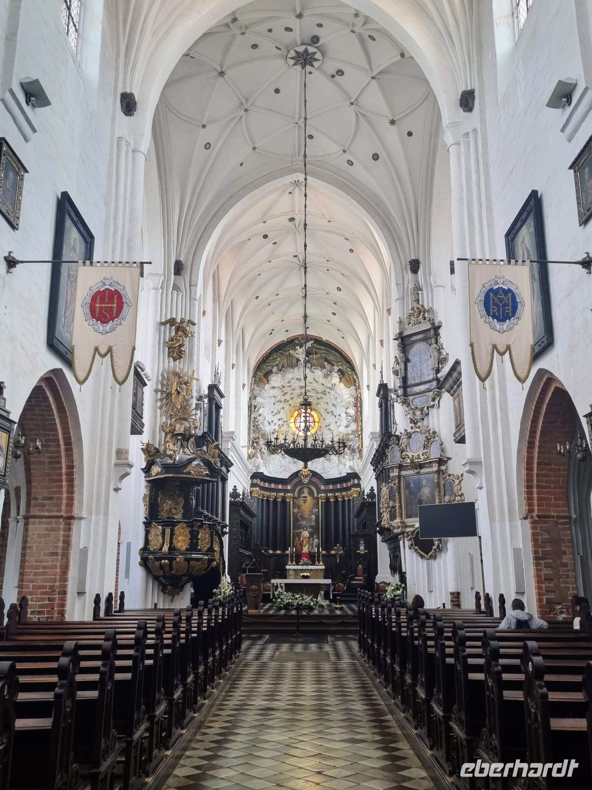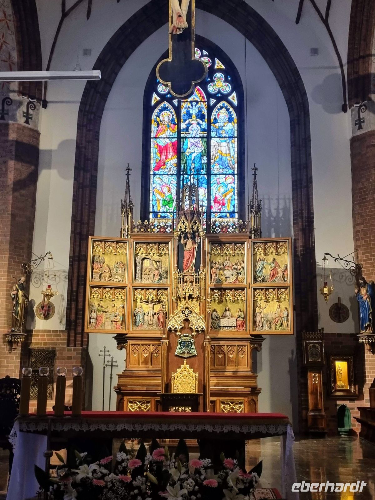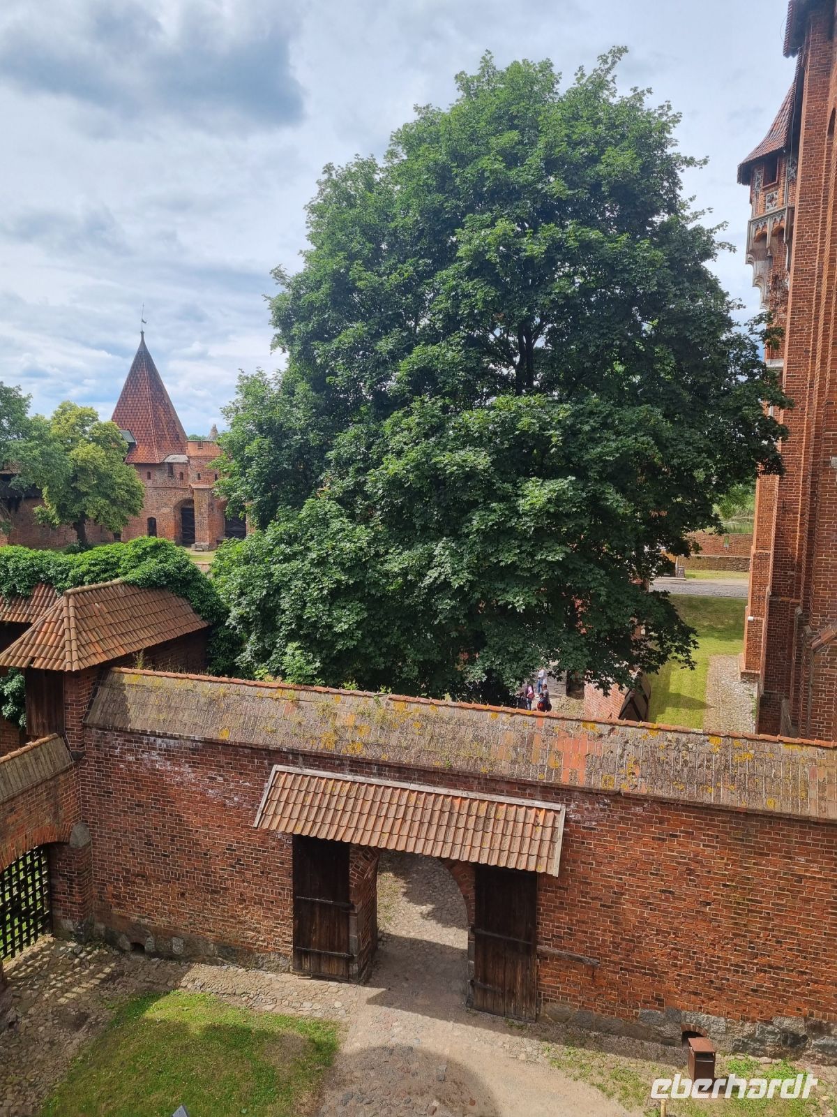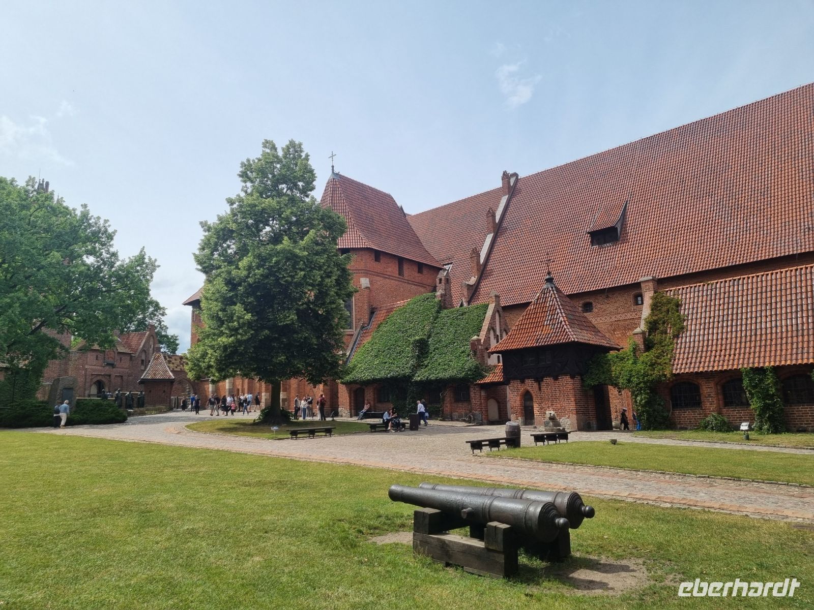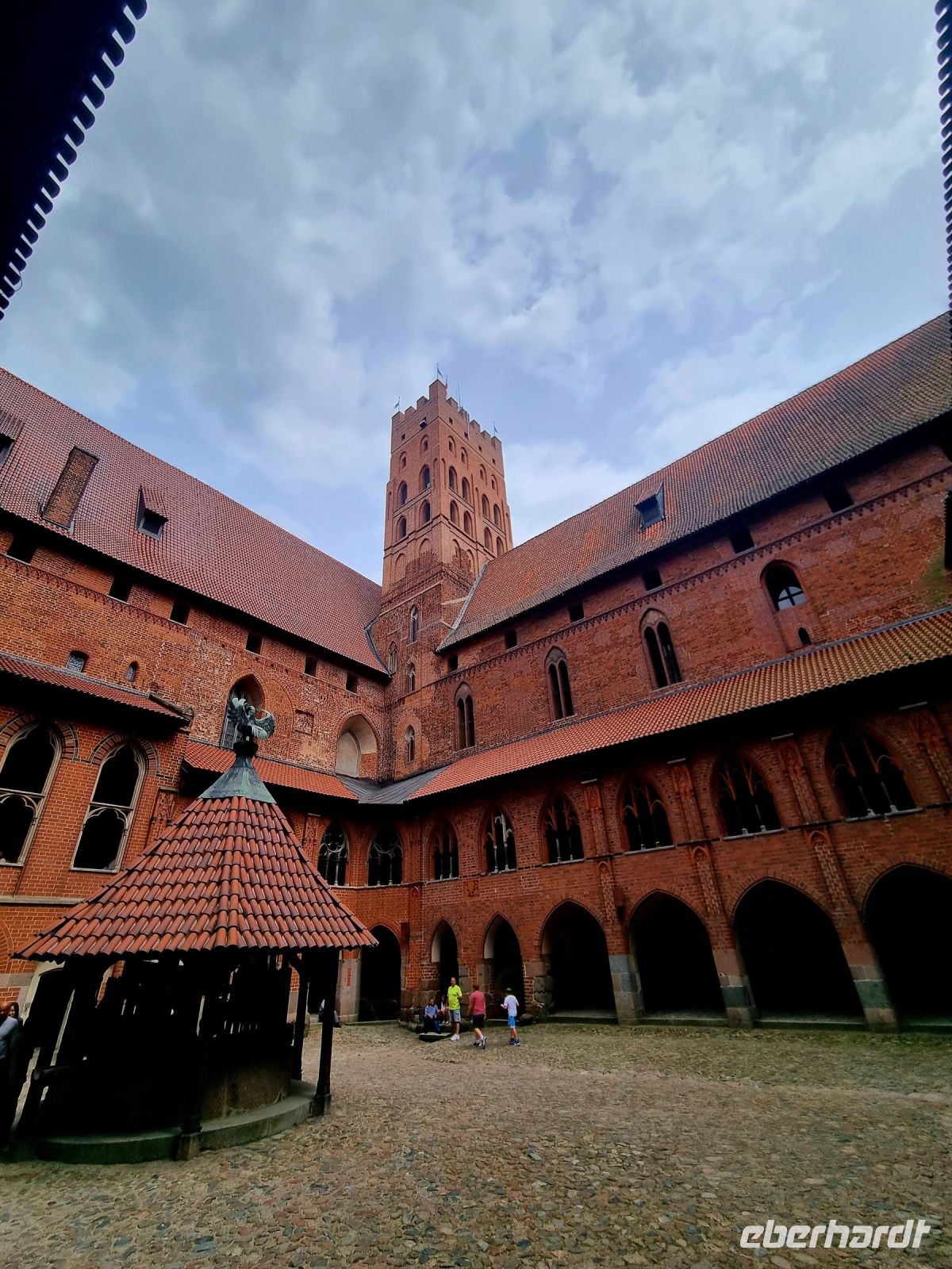 Bei schönstem Sonnenschein checken wir nach dem Frühstück aus dem Hotel in Sensburg aus und machen uns auf den Weg um die 250 km nach Malbork in Angriff zu nehmen. Hier wollen wir die mächtige Ordensburg der Kreuzritter an der Nogat besichtigen. Die monumentale Festung mit Vorburg, Mittelschloss und Hochburg beherrscht das Stadtbild. Die imposante Anlage aus rotem Backstein gilt heute als die größte mittelalterliche Festung in Europa, gesichert durch mächtige Wallanlagen. Wegen zu erwartender Staus geht es 30 min früher los. Die Fahrt nutze ich, um das Wissen der Mitreisenden abzufragen, das Quiz hatte durchaus einige anspruchsvolle Fragen , aber 5 Mitspieler hatten es ins Stechen geschafft. Belohnt wurde am Ende Frau B. mit einem leckeren polnischen Pralinenkasten. So haben wir am Ende ein sehr gutes Timing , um 12.30 Uhr sind wir auf dem Parkplatz der Marienburg. Thomas sorgt fürs leibliche wohl und ich mache mich auf den Weg, um die modernen Audioguides zu besorgen , mit der jeder Gast seine ganz individuelle Tour durch die Burg genießen kann. Ich komme gerade rechtzeitig zum Bus um auch noch eine Köstlichkeit der polnischen Pralinen zu genießen. Im Laufe der Jahrhunderte wurde die Marienburg mehrmals zerstört und geplündert, aber immer wieder aufgebaut und vergrößert. Über 130 Jahre war die Burg Sitz der Hochmeister des Deutschen Ordens. Dieses Meisterwerk der spätgotischen Baukunst zählt seit 1997 zum UNESCO-Weltkulturerbe. Der Wiederaufbau der Burg nach dem Zweiten Weltkrieg hat zu einem tollen Ergebnis geführt und die Führung mit dem Audioguide , ist ein tolles Erlebnis und die wenigen skeptischen Stimmen am Anfang waren bei der Abfahrt ins Gegenteil gekehrt. Wir nutzen noch die Chance eines Fotostopps auf der anderen Uferseite des Nogats um die Marienburg in voller Größe zu fotografieren. Die Weiterfahrt nach Danzig gestaltet sich problemlos. Wir sind pünktlich in Danzig und die ersten Gäste reisen ab . Wir erfreuen uns am letzten gemeinsamen Abendessen , die Stimmung ist super und ich kann noch einige Tips geben, wo man das eine oder andere, zb. Goldwasser besorgen kann. Wir verabschieden dann noch weitere Gäste, die eine individuelle Abreise aus Danzig haben und nicht die Busheimreise antreten.