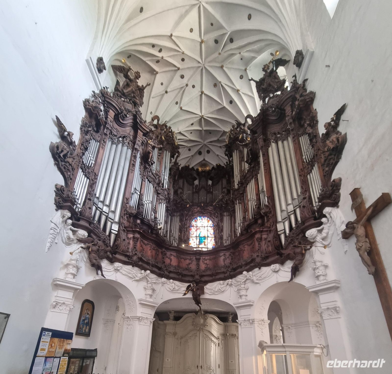 Gutes Wetter verleitet dazu, das gute Frühstück auch im Garten einzunehmen. Vorsicht war nur vor den räuberischen Tauben geboten. Malgorzata übernimmt am Vormittag das Kommando und der Bus bringt uns zuerst nach Danzig Oliva. Unterwegs bekommen wir noch Informationen zur Geschichte, den Stadtteilen und wichtigen Gebäuden. Das Orgelkonzert überrascht mit vielen populären Titeln , nicht nur aus dem klassischen Repertoire. Danach geht es wieder in die historische Innenstadt und wir starten unseren Stadtrundgang Wir besichtigen die imposante Marienkirche, die größte Backsteinkirche der Welt. schlendern durch den langen Markt, schauen uns das Goldene Tor an , bummeln durch die Frauengasse und erkunden das Krantor am langen Ufer. Nach dem offiziellen Programmteil kann sich jeder noch in sein Interessengebiet vertiefen , so nutzen einige die Zeit und fahren mit Boot oder Tram zur Westerplatte.