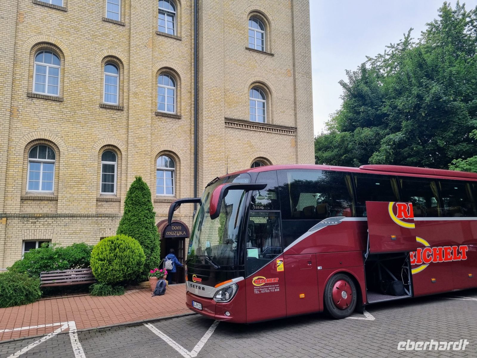 Wolkenloser Himmel begleitet und an diesem doch sehr frühen Morgen. Start in Chemnitz und um 06.00 Uhr ist der Bus dann mit seinen 21 Gästen vollständig. Uns erwartet eine angenehme staufreie Fahrt , lediglich kurz vor Danzig wird uns eine Baustelle zum Verhängnis und wir nehmen einen kleine Umweg. Nach einer kurzen Suchen finden wir auch den Eingang auf das Gelände der Musikakademie. Der Hoteleingang liegt etwas versteckt auf dem Gelände , aber um 15.30 Uhr können wir schon mit dem Check in abschließen. Genug Zeit für eine erste Stadterkundung nach der langen Anreise. Für 16.15 Uhr biete ich eine ersten Rundgang in die historische Innenstadt, die nur ein Steinwurf entfernt ist. Die große Gruppe wird im Verlauf des Spaziergangs immer kleiner und viele Gäste nutzen die verbleibende freie Zeit bis zum Abendessen für eigene Aktivitäten. 5 weitere Gäste mit Eigenanreise haben bereits Ihre Zimmer bezogen und beim Abendessen sind wir fast vollständig und es gibt Zeit sich mit einander bekannt zu machen. Der anstrengende Anreisetage sorgt dafür , dass die meisten dann auch nach dem Essen Ihre Zimmer aufsuchen.