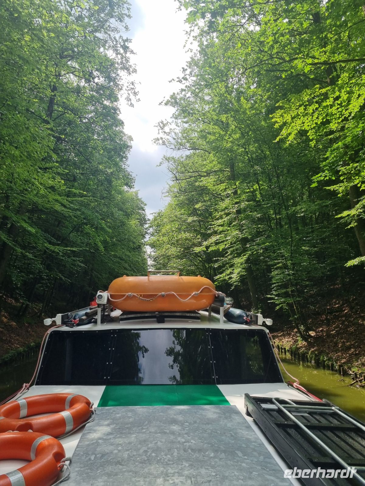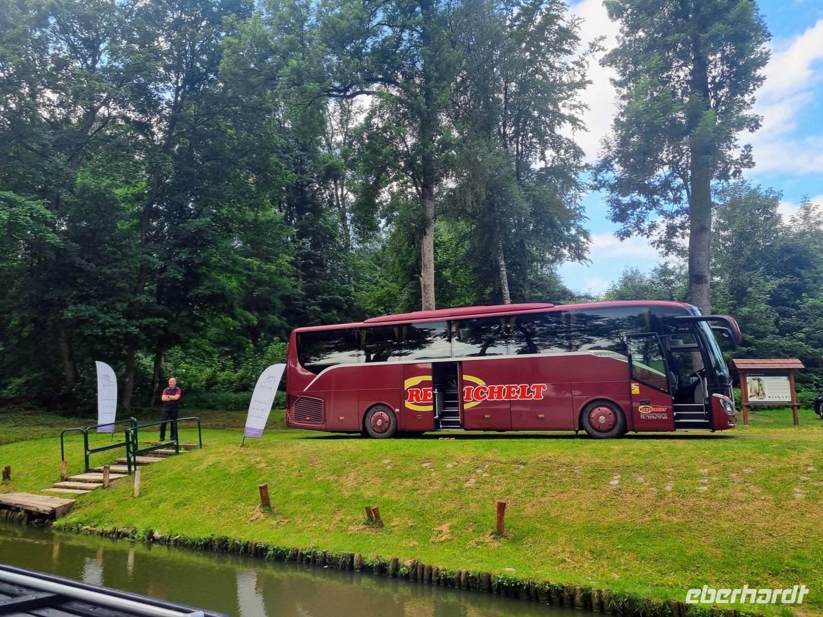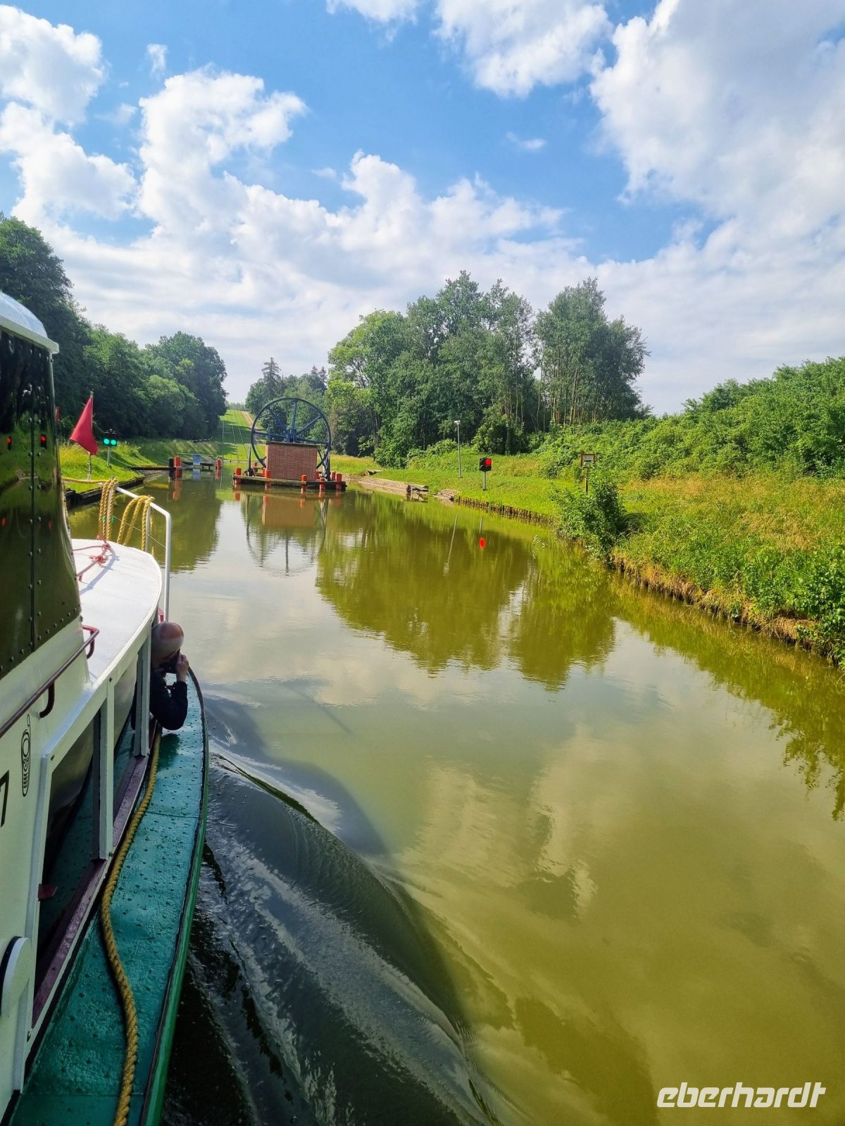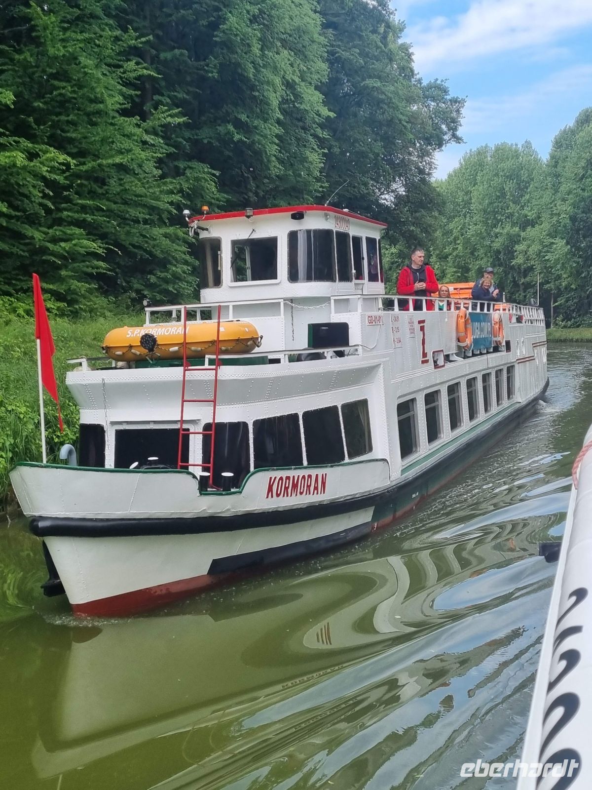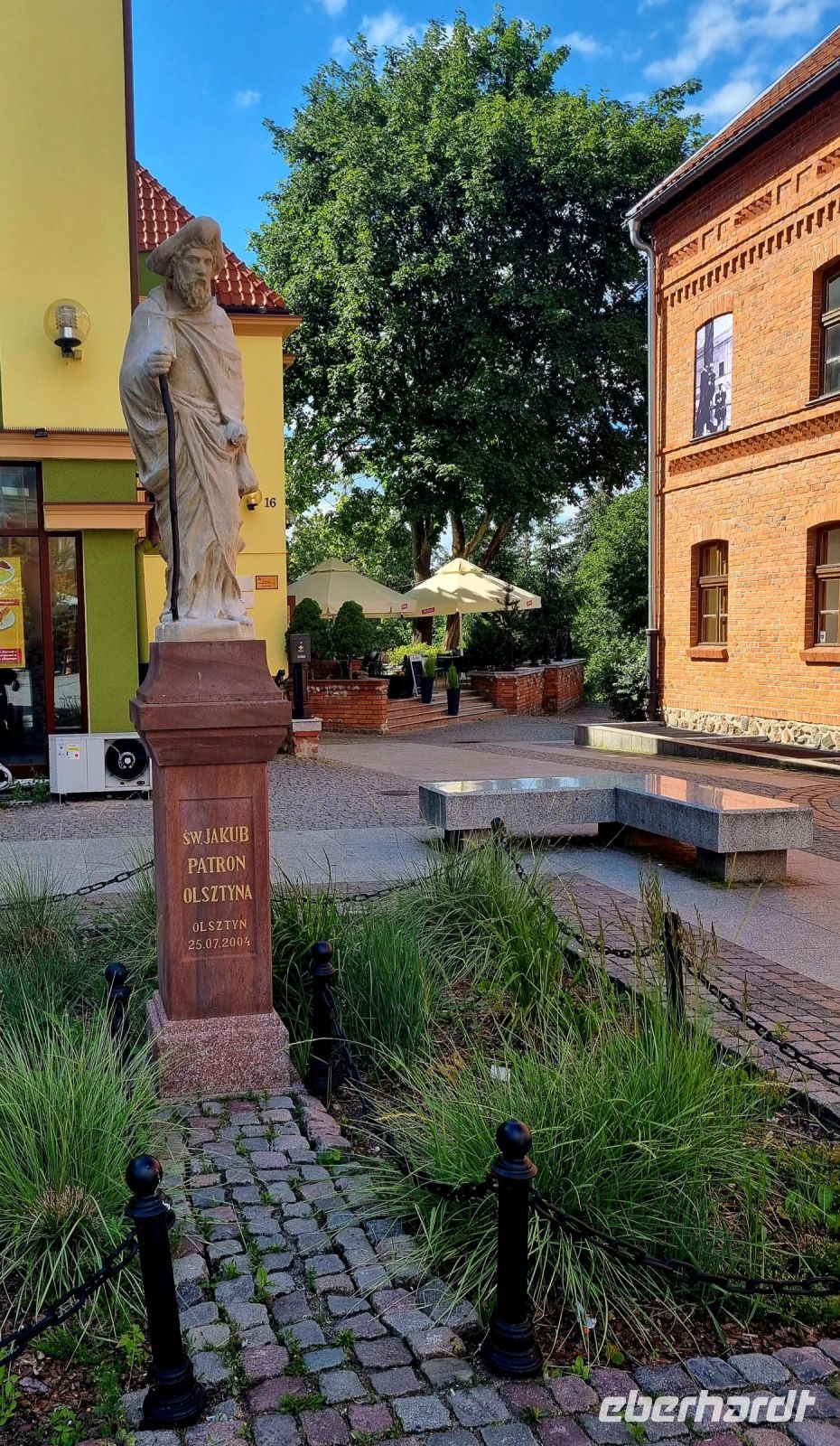 Nach dem Frühstück checken wir aus und fahren ins ca 100 km entfernte Jelonki. Über Nacht hatte es geregnet und auch auf der Fahrt wollen sich die Regenwolken nicht verziehen. Wir erreichen bei leichtem Nieseln den Schiffsanleger , können aber schon erahnen , dass es in Kürze aufklaren wird. Wir haben ein Schiff ganz für uns und nachdem alle Platz genommen haben , beginnt auch schon der erste Anstieg auf einen Rollberg, alle Steigungen überwinden zwischen 20 und 25 m dabei. Beata die "Kapitänsfrau" unterhält uns mit lustigen Kommentaren und erzählt alles Wissenswerte zu diesem Technischen Unikum. Außerdem werden Snacks und Getränke angeboten. Insgesamt hebt sich unser Schiff auf seinem Rollwagen gleich über 5 Berge und wunderschönen wildromantische Kanalabschnitte werden durchfahren . Wildschweine und Störche mitten im Wald werden gesichtet. Am Anleger erwartet uns der Bus und ich lasse es mir nicht nehmen alle Schiffspassagiere zu einer Kanaltaufe einzuladen , Goldwasser wird ausgeschenkt und wir prosten uns zu auf dieses tolle Erlebnis zu. Nachschlag gibt es dann auch noch. So gut gelaunt geht es dann weiter Richtung Olstyn, da wir sehr zeitig sind haben wir eine Mittagspause in einem typisch polnischen Lokal eingeplant . Essen kann man sich an der Bedienungstheke selbst aussuchen, ich erkläre die Gerichte, helfe bei der Bestellung und nicht wenige sind überrascht über das qualitativ sehr gute Essen. Allen hat es fantastisch geschmeckt und so gestärkt starten wir unsere Stadtbesichtigung in Olstyn mit Besuch der Kirche St.Jakob, dem Marktplatz , der Burg , der Stadttore und dem Denkmal für den wichtigsten Sohn der Stadt , Kopernikus. Nach dem Stadtrundgang geht es dann nach Sensburg in unser Hotel Huszcza direkt am Czos See. Nach Check In und kurzer Pause geht es dann zum Abendessen, der Hoteldirektor begrüßt uns mit einem Schnäpschen und wir lernen , die Suppe kommt immer direkt aus der Vase auf den Tisch , So zumindest seine eigenen Worte.