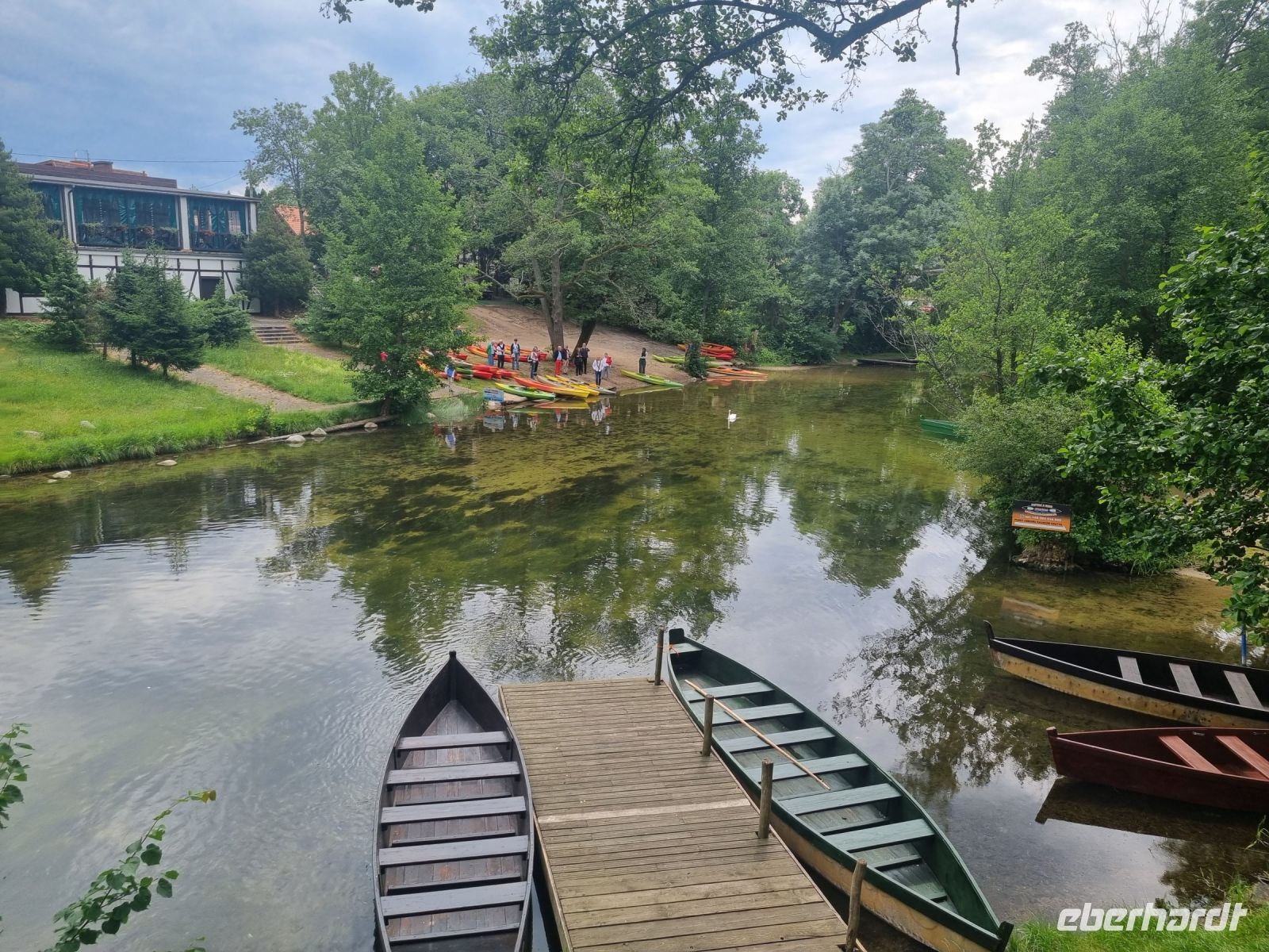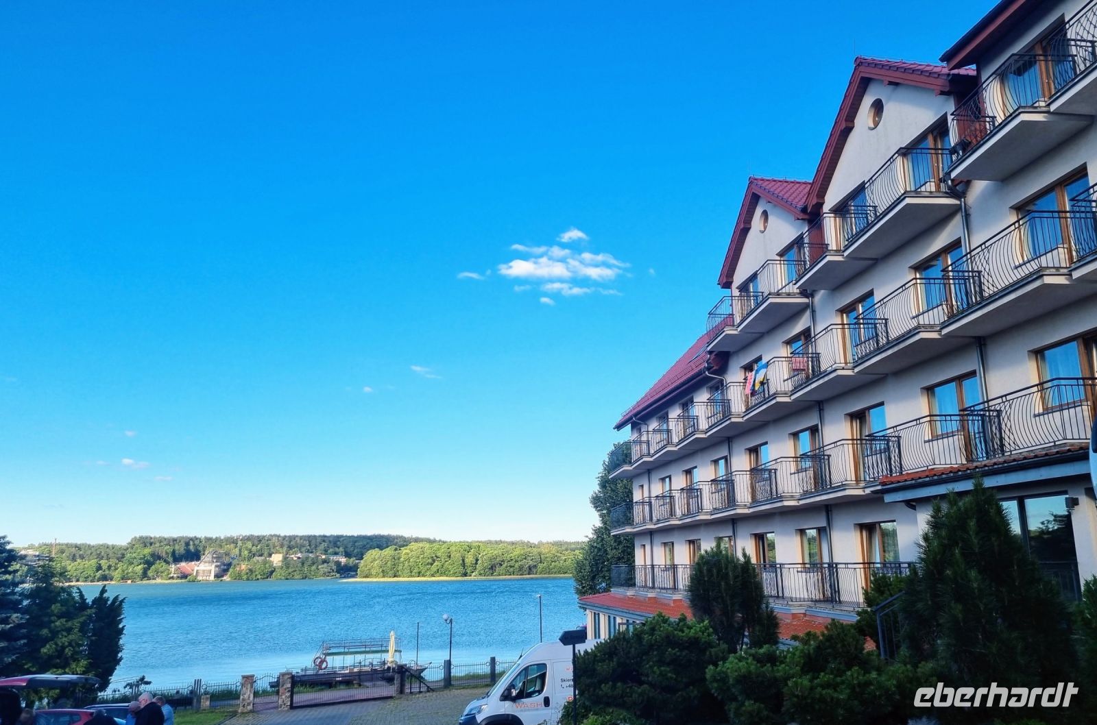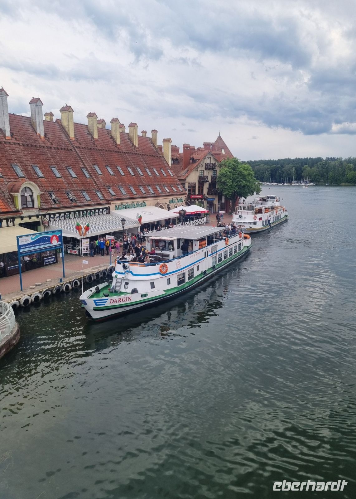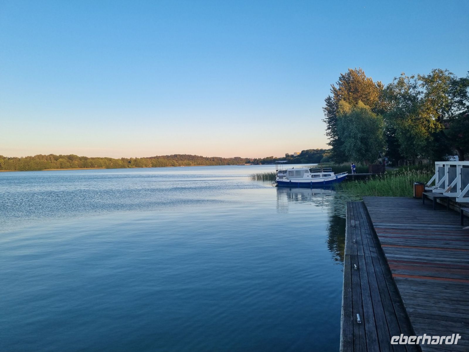 Heute starten wir spät, ein ausgedehntes Frühstück , teilweise auf der Terrasse in der Sonne eingenommen bildet die Grundlage für den heutigen Tag. Nach einem kurzen Stop am Forsthaus des Schriftstellers Ernst Wiechert geht es zur Anlegestelle für eine Kahnfahrt , kräftige Männern staaken unsere 3 Boot durch die Krutinya. Kleine Fischen wunderschöne blaue Libelle und Enten mit Ihrem Nachwuchs werden gesichtet und das bei fast andächtiger Ruhe. Danach gibt es noch die Möglichkeit Mitbringsel zu erwerben auf dem lokalen Markt. Zur Mittagszeit erreichen wir die Perle der masurischen Seenplatte Mikolajki , die meisten nutzen die Möglichkeit mit Hanna unserer örtlichen Reiseleiterperle in einem polnischen Lokal zu speisen. Es bleibt auch noch Zeit für ein kurzen Stadtrundgang, bevor wir um 15.00 Uhr zu einer Seenrundfahrt starten. Das Schiff ist sehr gut gefüllt bietet aber tolle und romantische Ausblicke auf die 3 Seen , die angesteuert werden . Anschliessend geht es zum Hotel, wir verabschieden Hanna und ein weiteres Mal nehmen wir unser gemeinsames Abendessen im Hotel ein.