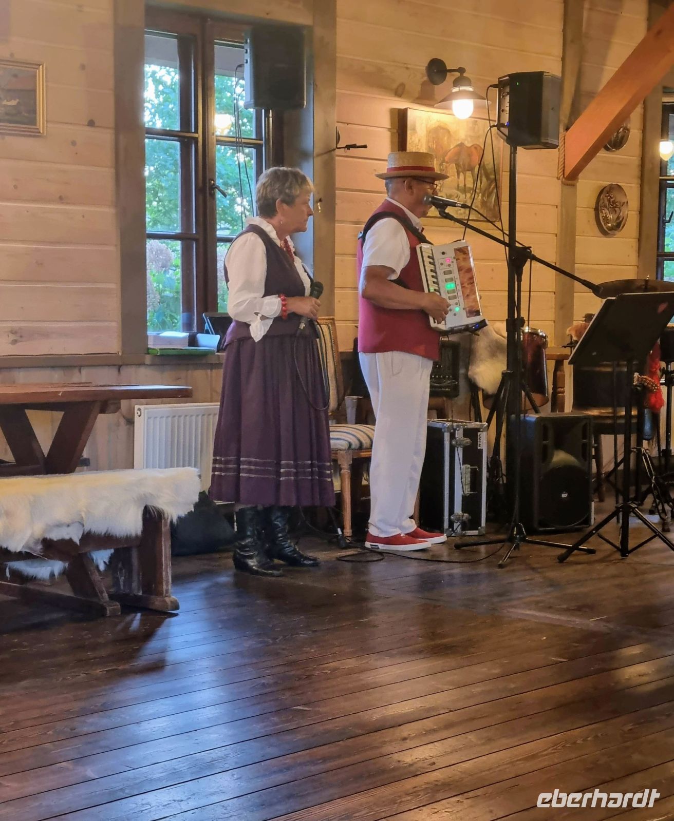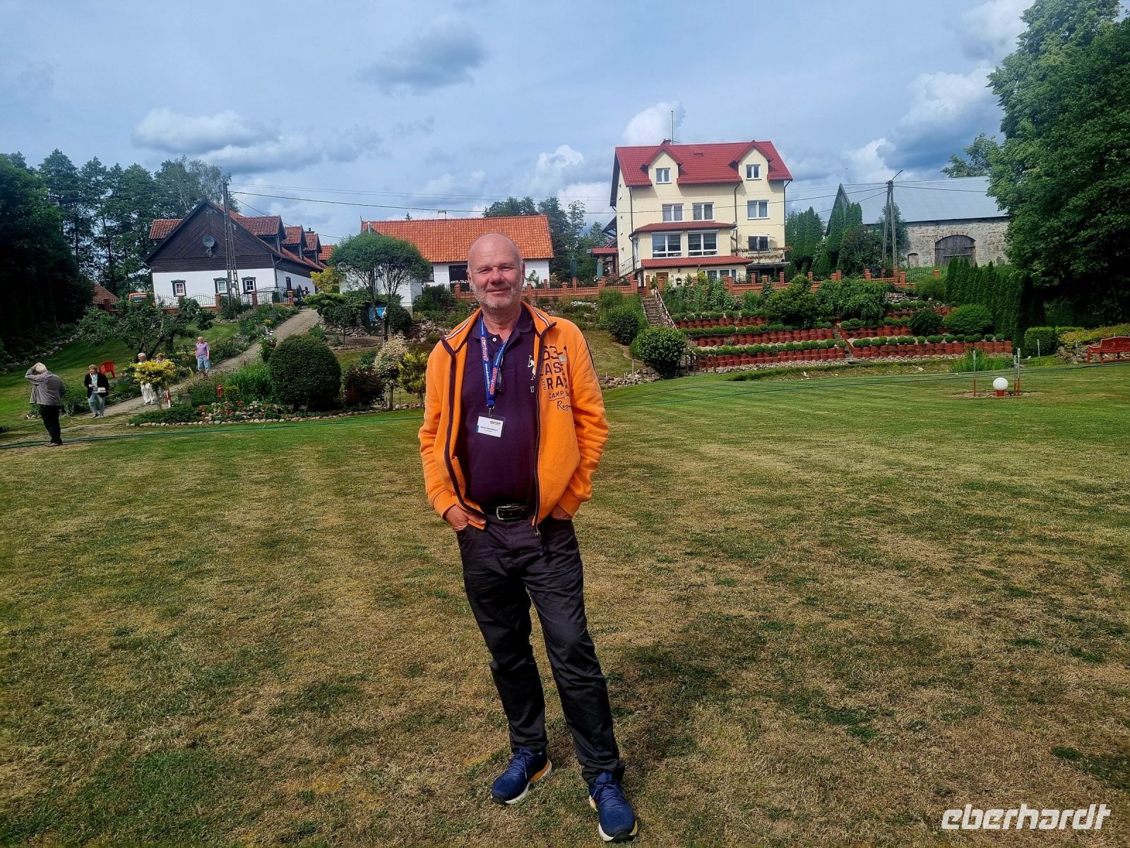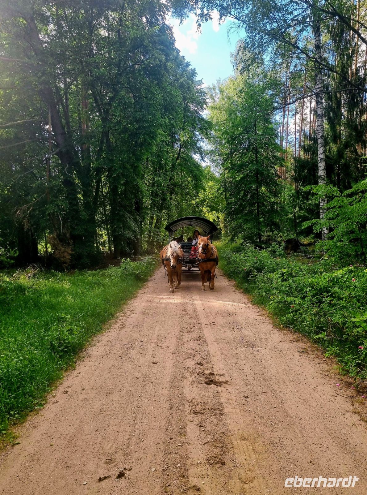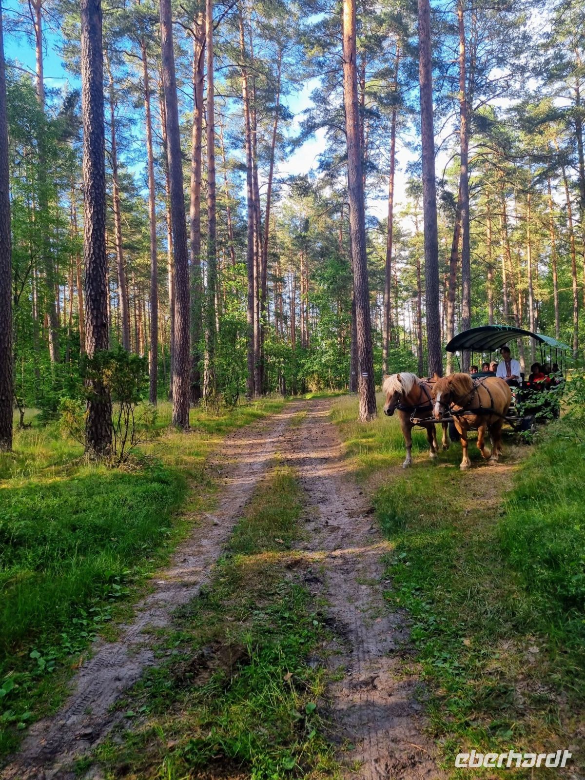 Wir sind alle früh zum Frühstück, heute stehen viele Highlights auf dem Programm. Als besondere Zugabe lädt Eberhardt Reisen zur Wolfsschanze und so machen wir uns auf Richtung Nord Osten. Die Wilczy Szaniec , wie es polnisch heißt, muß man gesehen haben, die Anlage ist sehr besucherfreundlich mit einem Rundwanderweg bedacht es gibt Restaurants , Cafes und Imbisse. Hanna unsere polnische Reiseleiterin weiß zu jedem Bunker und der allgemeinen Geschichte und Ereignisse rund um das Führerhauptquartier etwas zu sagen. Tolle 2 Stunden dürfen wir hier Geschichte erleben. Es bleibt no Zeit für ein typisch polnischen Imbiss, Bigos, Piroggen , Krakauer und vieles mehr steht zur Auswahl. Nach der Stärkung geht es dann zu Kaffee und Kuchen ins einzigartige Ostpreussen Museum, mit kurzem Zwischenstopp für ein Foto an der Rastenburg. Als wir eintreffen sind die Tische schon gedeckt und es durftet nach Kaffee. Im Anschluß werden wir vom Sohn der Museumsgründerin Christel in die Geschichte der Familie und des Museums eingeführt , Waldemar erzählt mit einem Hang zu Selbstironie und so haben wir alle viel Spass seinen Erzählungen zu folgen. Es bleibt eine gute Stunde das Museum selbst und die wunderschöne Garten und Parkanlage zu genießen. Mit toller Stimmung brechen wir auf zur Bauernhochzeit. Im Wald werden wir von 2 Pferdegespannen mit 2 folkloristisch gekleideten Kutschern abgeholt, während einer ausgedehnten Runde wird ein passende Brautpaar gefunden , die nun zum Mittelpunkt der Feierlichkeiten werden. Auf dem Hof von Eulalia der Gastgeberin wird das Hochzeitspaar begrüßt und wir machen einen Reigen, bevor der Einlaß in den Festraum für die Hochzeitsgesellschaft frei wird. Eine Musikgruppe begleitet die Zeremonie , ein sehr gutes traditionelles polnisches Essen füllt die Mägen und die Hochzeitsspiele führen zu einer Hochstimmung es wird viel getanzt und gelacht. Herr S. aus unser Gruppe , selbst begeisterter Musiker übernimmt für einige Lieder das Akkordeon und auch die Gastgeberin gibt noch eine musikalische Zugabe. So verlassen wir den Hof doch um einiges später als geplant. Kurz vor 22.00 Uhr erreichen wir das Hotel und alle ziehen sich fröhlich und voller positiver Eindrücke auf Ihre Zimmer zurück.