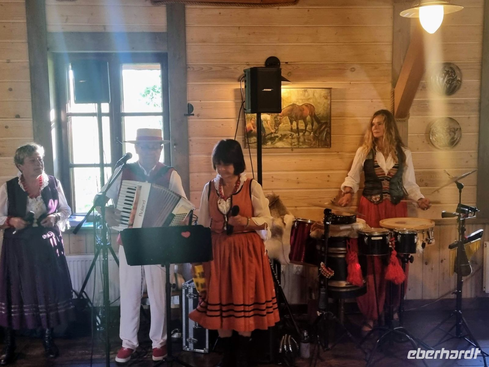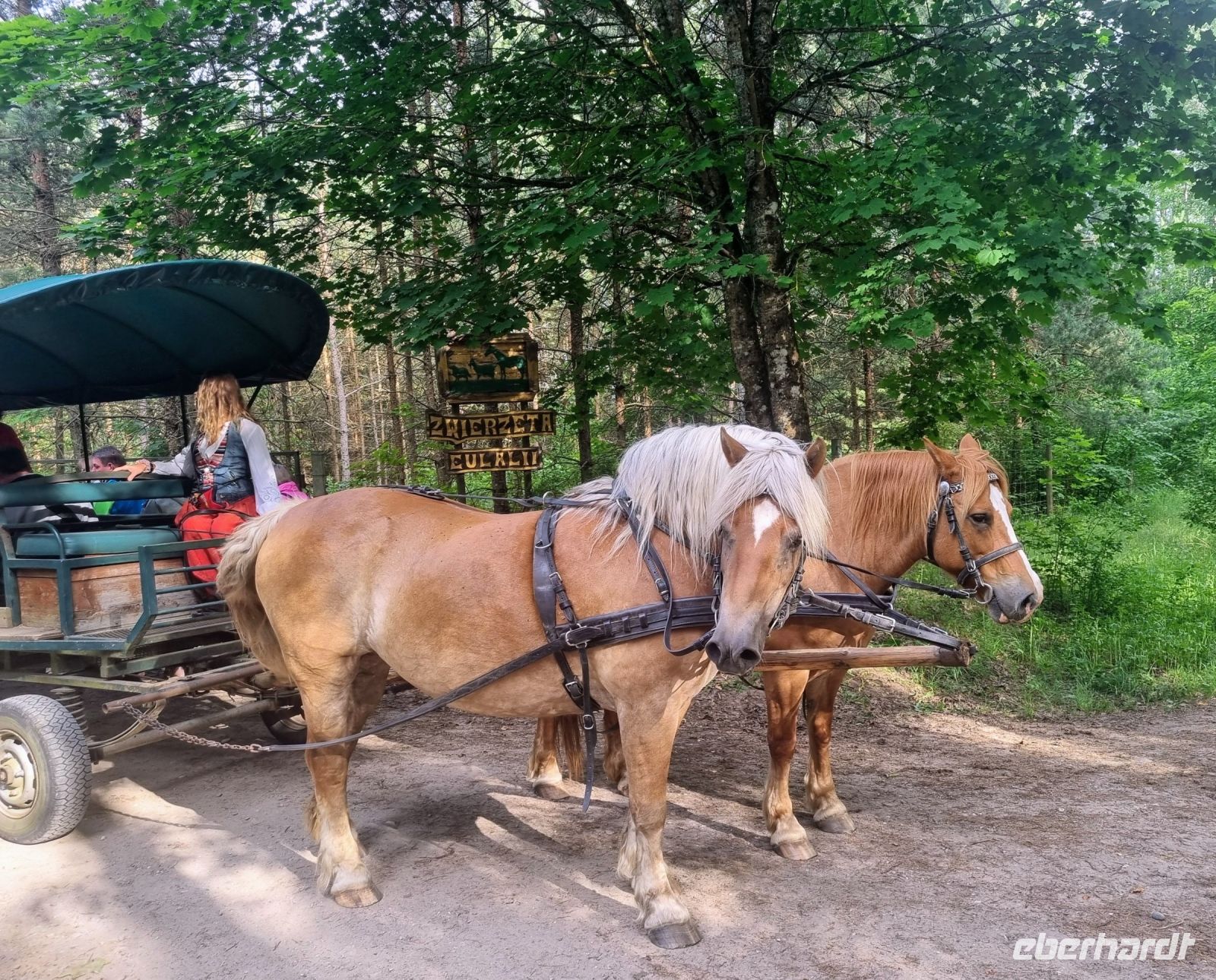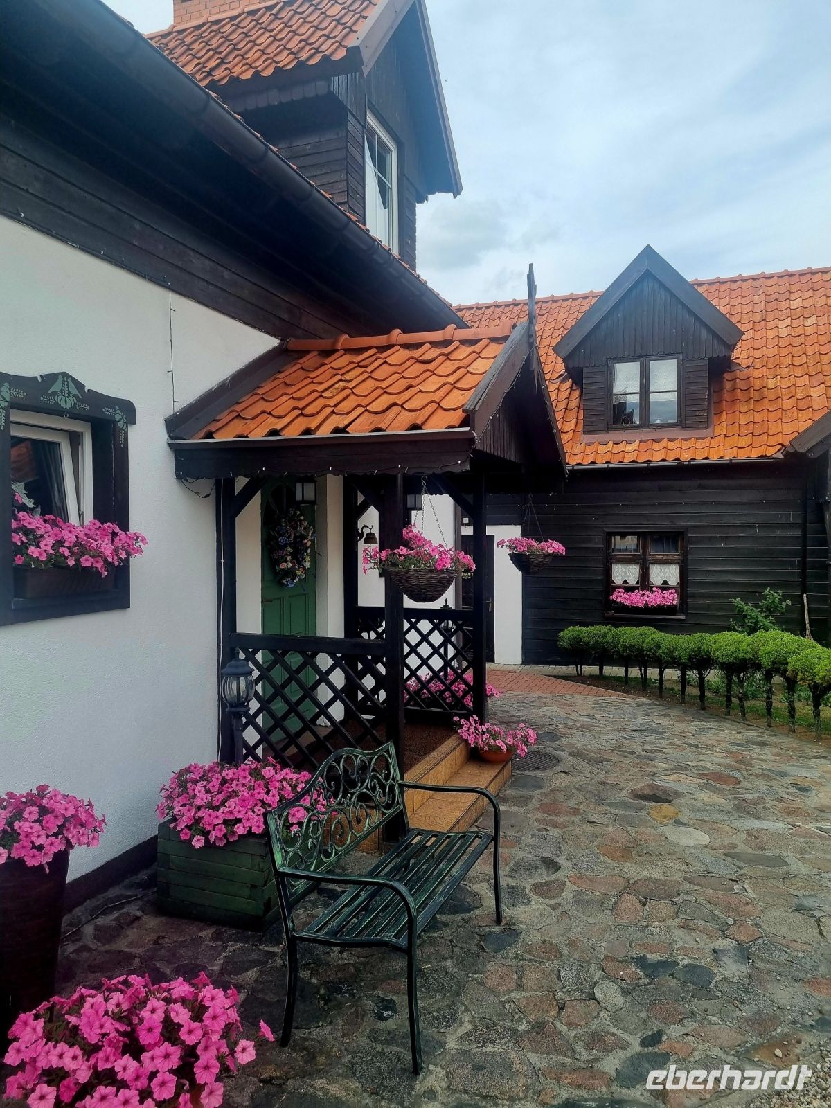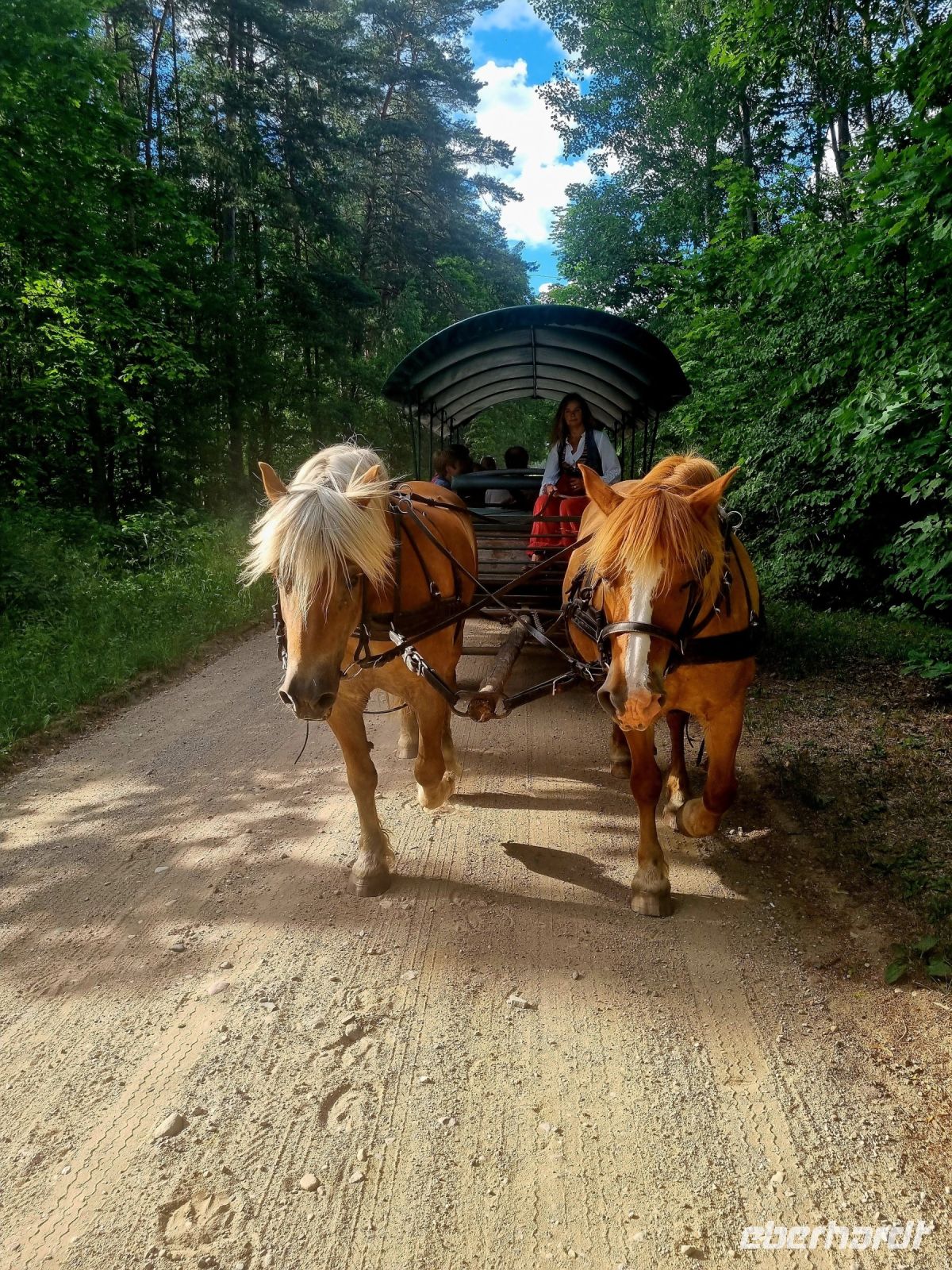 Wir sind alle früh zum Frühstück, heute stehen viele Highlights auf dem Programm. Als besondere Zugabe lädt Eberhardt Reisen zur Wolfsschanze und so machen wir uns auf Richtung Nord Osten. Die Wilczy Szaniec , wie es polnisch heißt, muß man gesehen haben, die Anlage ist sehr besucherfreundlich mit einem Rundwanderweg bedacht es gibt Restaurants , Cafes und Imbisse. Hanna unsere polnische Reiseleiterin weiß zu jedem Bunker und der allgemeinen Geschichte und Ereignisse rund um das Führerhauptquartier etwas zu sagen. Tolle 2 Stunden dürfen wir hier Geschichte erleben. Es bleibt no Zeit für ein typisch polnischen Imbiss, Bigos, Piroggen , Krakauer und vieles mehr steht zur Auswahl. Nach der Stärkung geht es dann zu Kaffee und Kuchen ins einzigartige Ostpreussen Museum, mit kurzem Zwischenstopp für ein Foto an der Rastenburg. Als wir eintreffen sind die Tische schon gedeckt und es durftet nach Kaffee. Im Anschluß werden wir vom Sohn der Museumsgründerin Christel in die Geschichte der Familie und des Museums eingeführt , Waldemar erzählt mit einem Hang zu Selbstironie und so haben wir alle viel Spass seinen Erzählungen zu folgen. Es bleibt eine gute Stunde das Museum selbst und die wunderschöne Garten und Parkanlage zu genießen. Mit toller Stimmung brechen wir auf zur Bauernhochzeit. Im Wald werden wir von 2 Pferdegespannen mit 2 folkloristisch gekleideten Kutschern abgeholt, während einer ausgedehnten Runde wird ein passende Brautpaar gefunden , die nun zum Mittelpunkt der Feierlichkeiten werden. Auf dem Hof von Eulalia der Gastgeberin wird das Hochzeitspaar begrüßt und wir machen einen Reigen, bevor der Einlaß in den Festraum für die Hochzeitsgesellschaft frei wird. Eine Musikgruppe begleitet die Zeremonie , ein sehr gutes traditionelles polnisches Essen füllt die Mägen und die Hochzeitsspiele führen zu einer Hochstimmung es wird viel getanzt und gelacht. Herr S. aus unser Gruppe , selbst begeisterter Musiker übernimmt für einige Lieder das Akkordeon und auch die Gastgeberin gibt noch eine musikalische Zugabe. So verlassen wir den Hof doch um einiges später als geplant. Kurz vor 22.00 Uhr erreichen wir das Hotel und alle ziehen sich fröhlich und voller positiver Eindrücke auf Ihre Zimmer zurück.