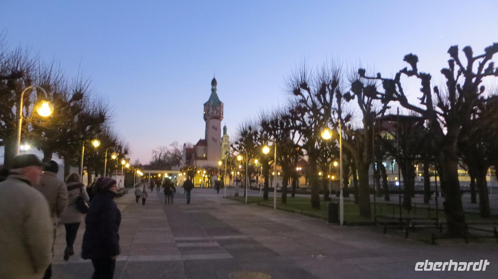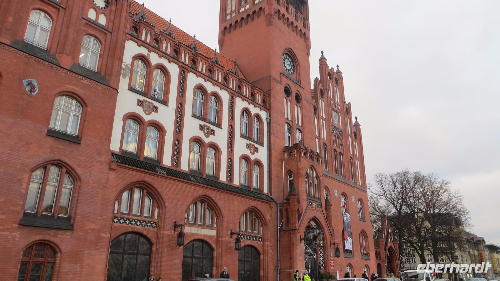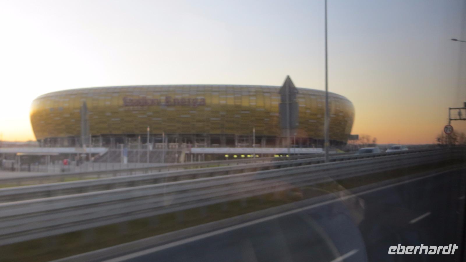 Bereits in der Nacht klingelte bei vielen der Wecker, damit wir gemeinsam pünktlich nach Krokowa starten konnten. Wir kamen sehr gut voran. Vorbei an Stettin, Kolberg und durch Köslin erreichten wir Stolp. Dort gab es eine Pause direkt auf dem Markt. Wir bestaunten das schöne Rathaus und die Eislaufbahn davor, oder machten einen Spaziergang durch die engen Straßen.